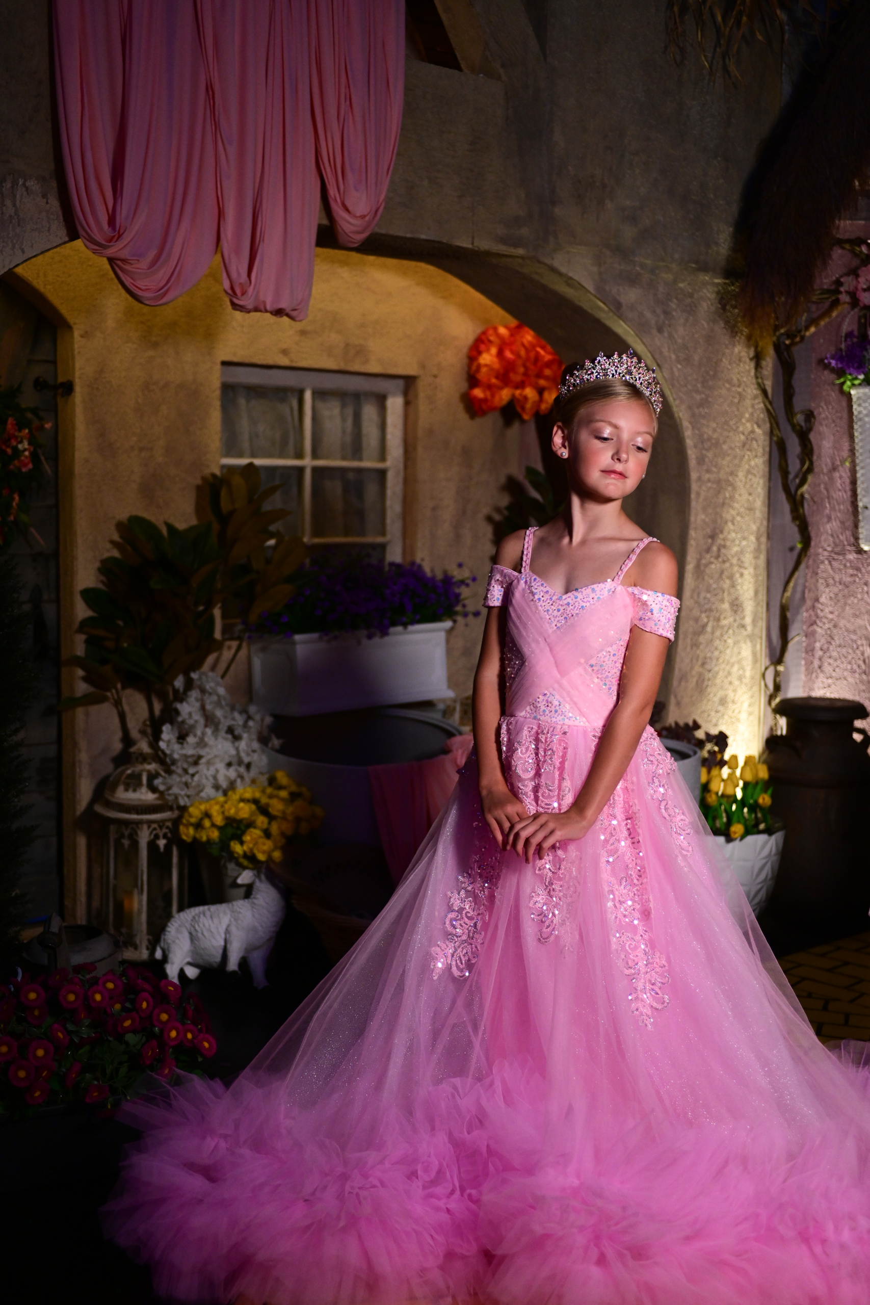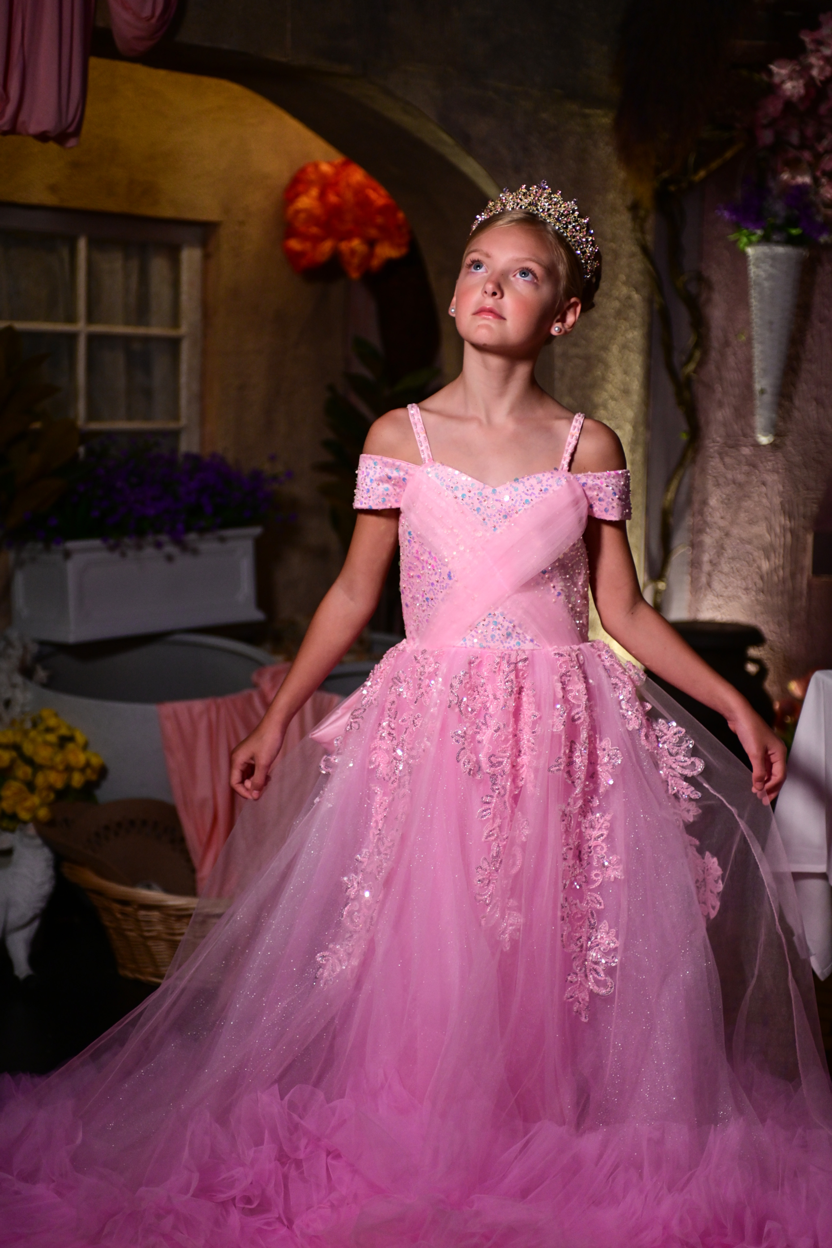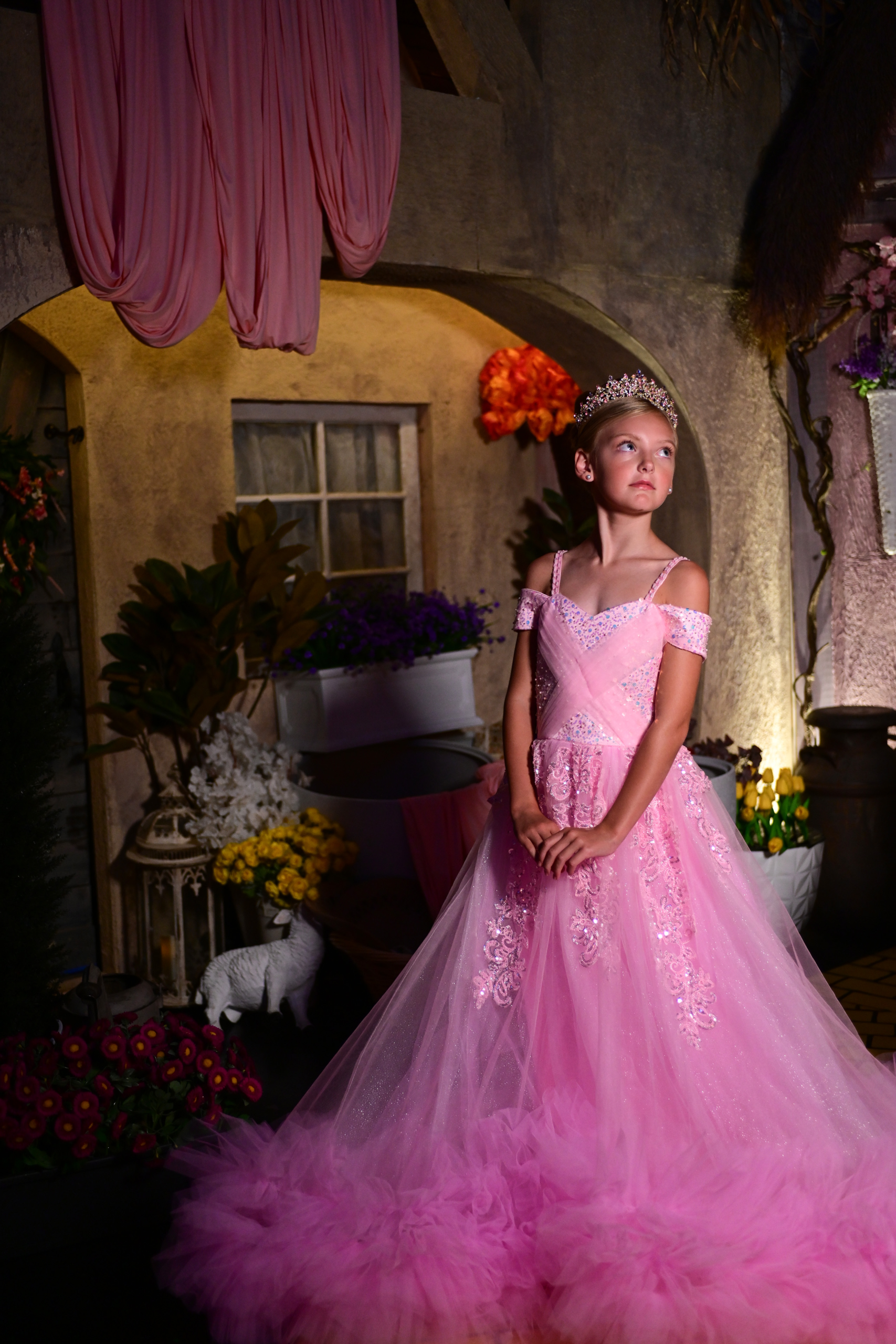 The girls — Maddison Rose Trump, Georgia Kate Rowland, Maddie Hope Eaton and McKenna Norton — traveled from different parts of the country to converge on the representations of Munchkinland and Oz that have taken residency in Cava. The gowns were inspired by the two main characters of the film based on the stage musical, Elphaba and Glinda.