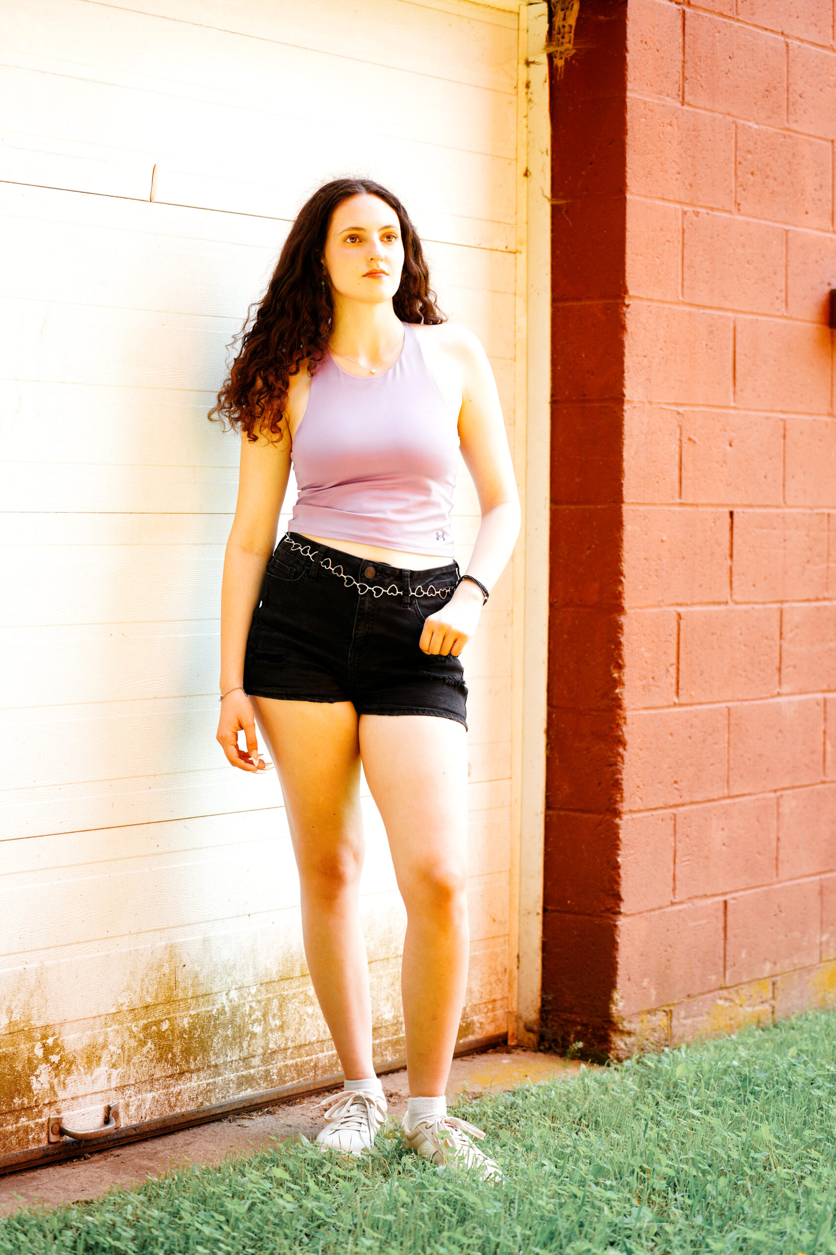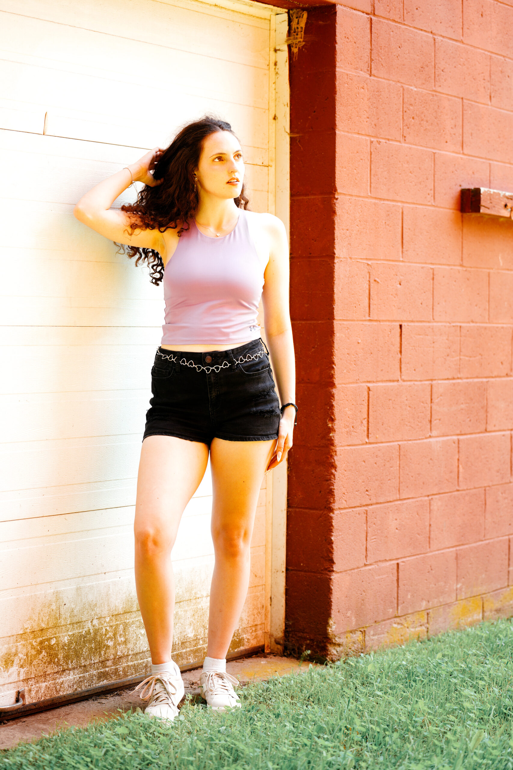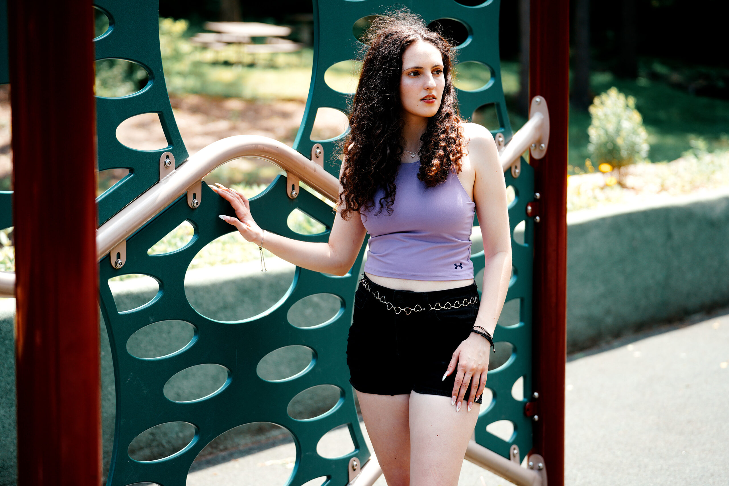 Fashion model Alyssa Barna gives the workout equipment a try but she finds greater comfort just chilling in the summer New England sun.