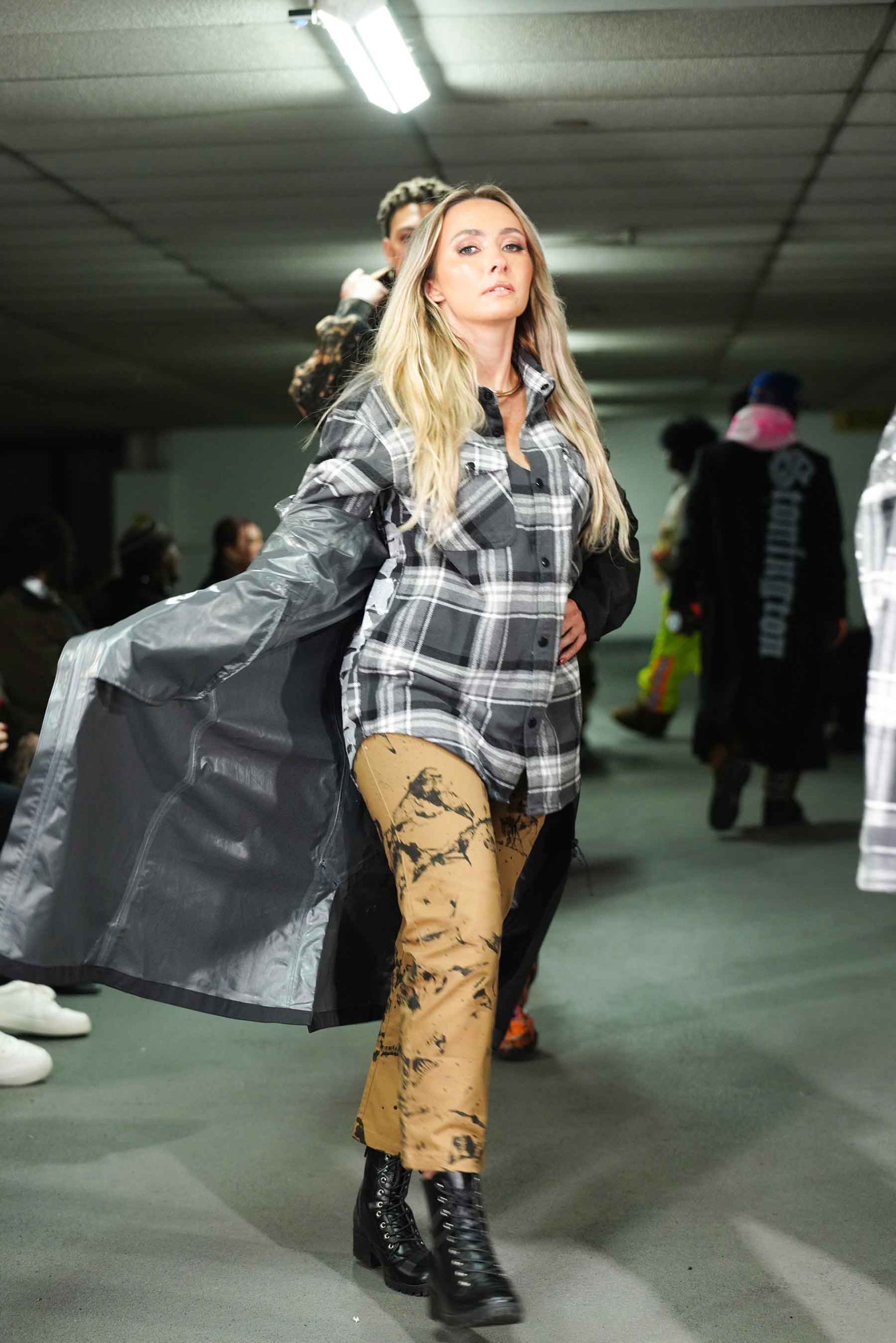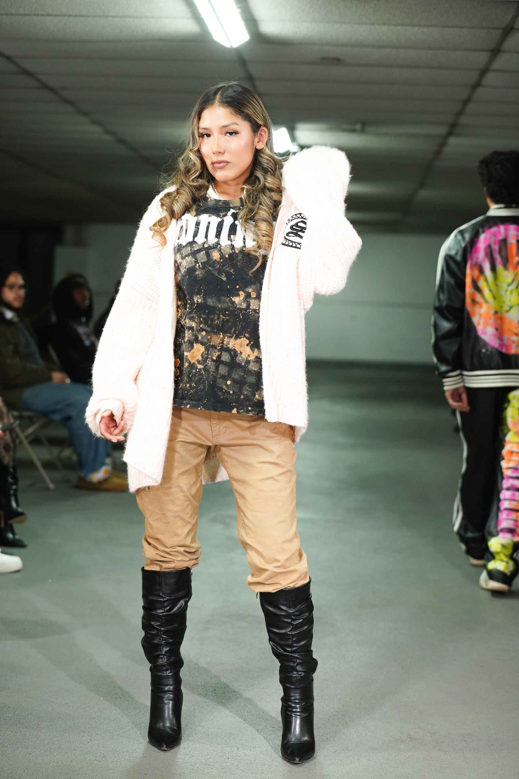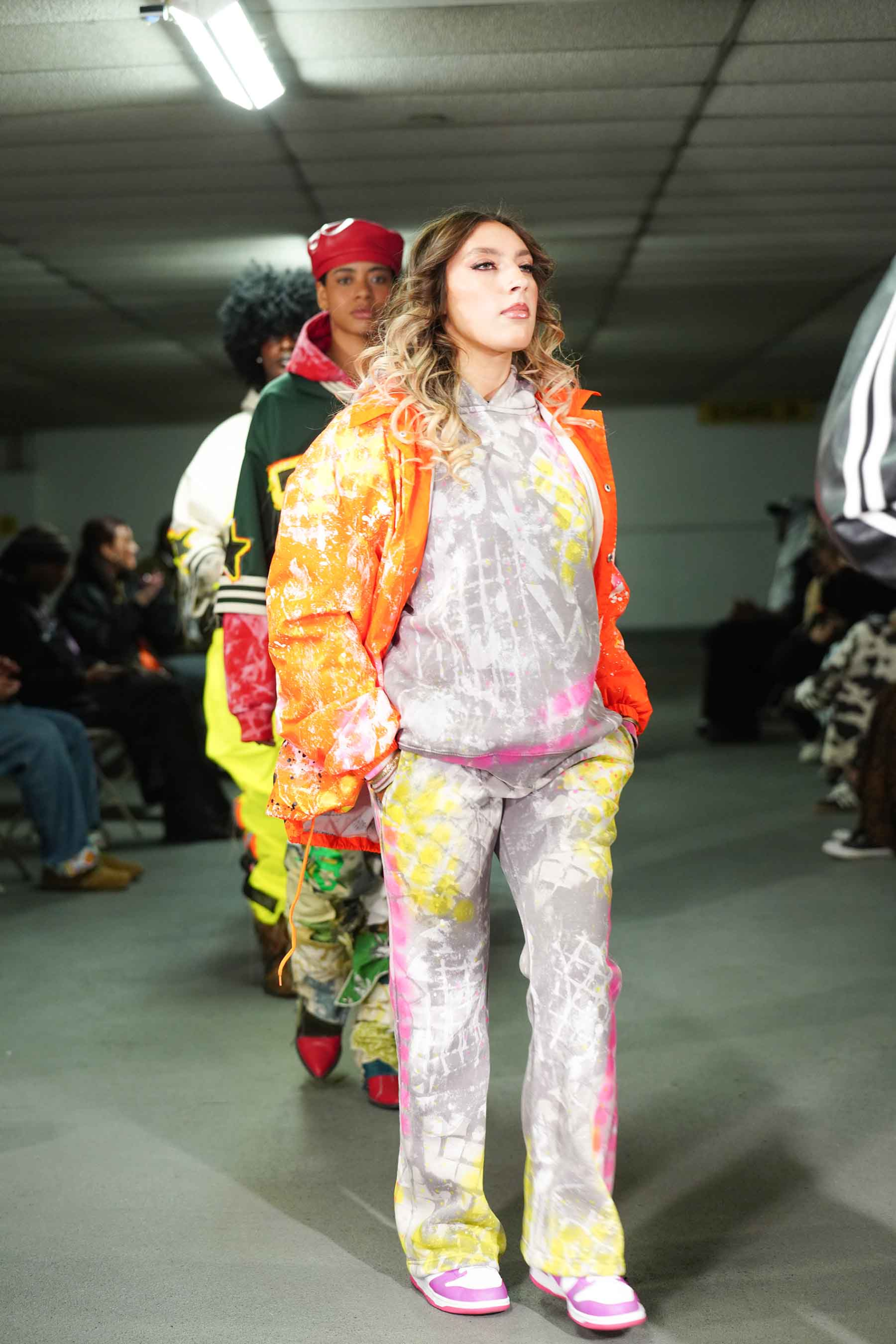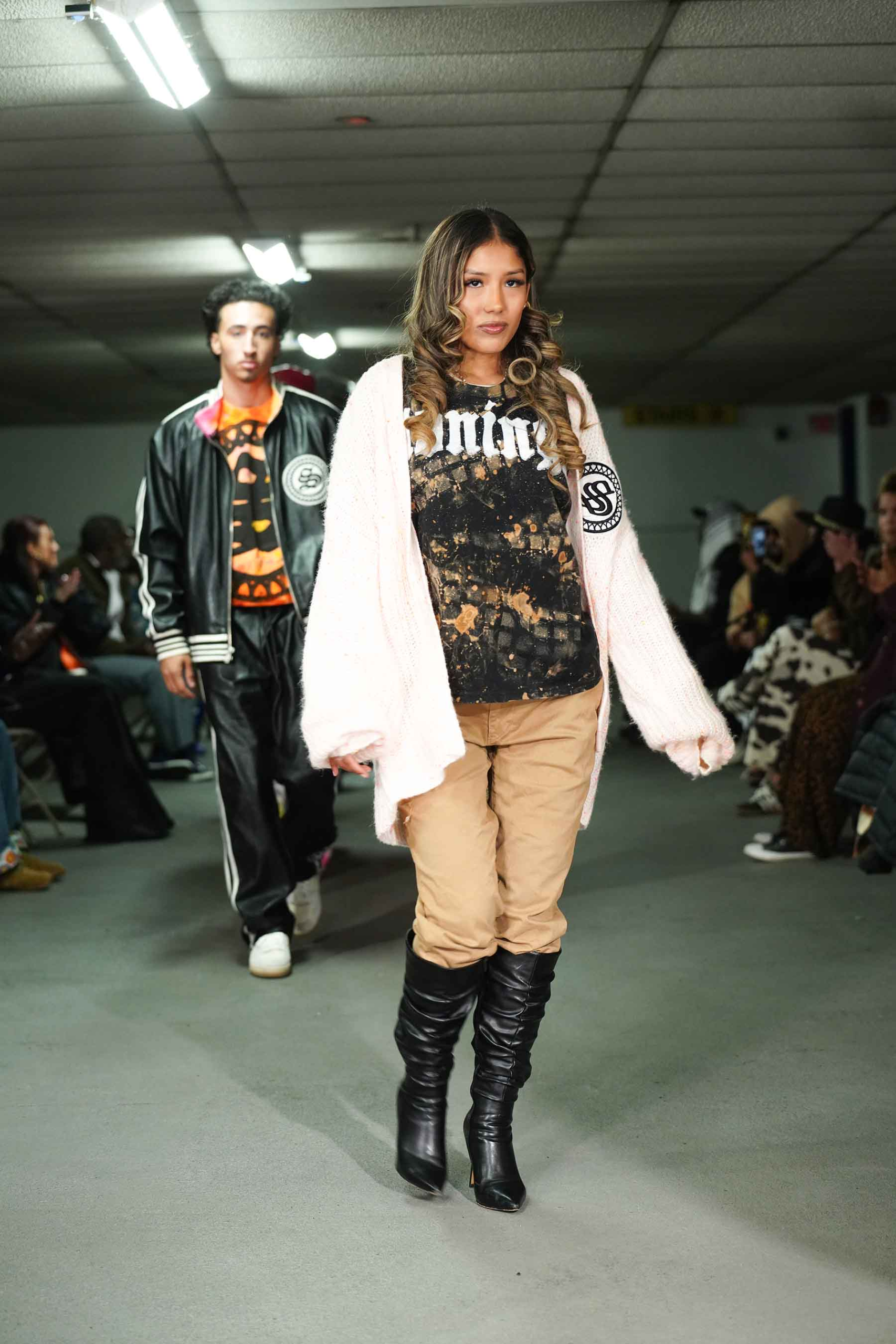 As the breeze blew through the cement cavern of the downtown garage, models kept warm in Stonington’s trademark hoodies and jackets.