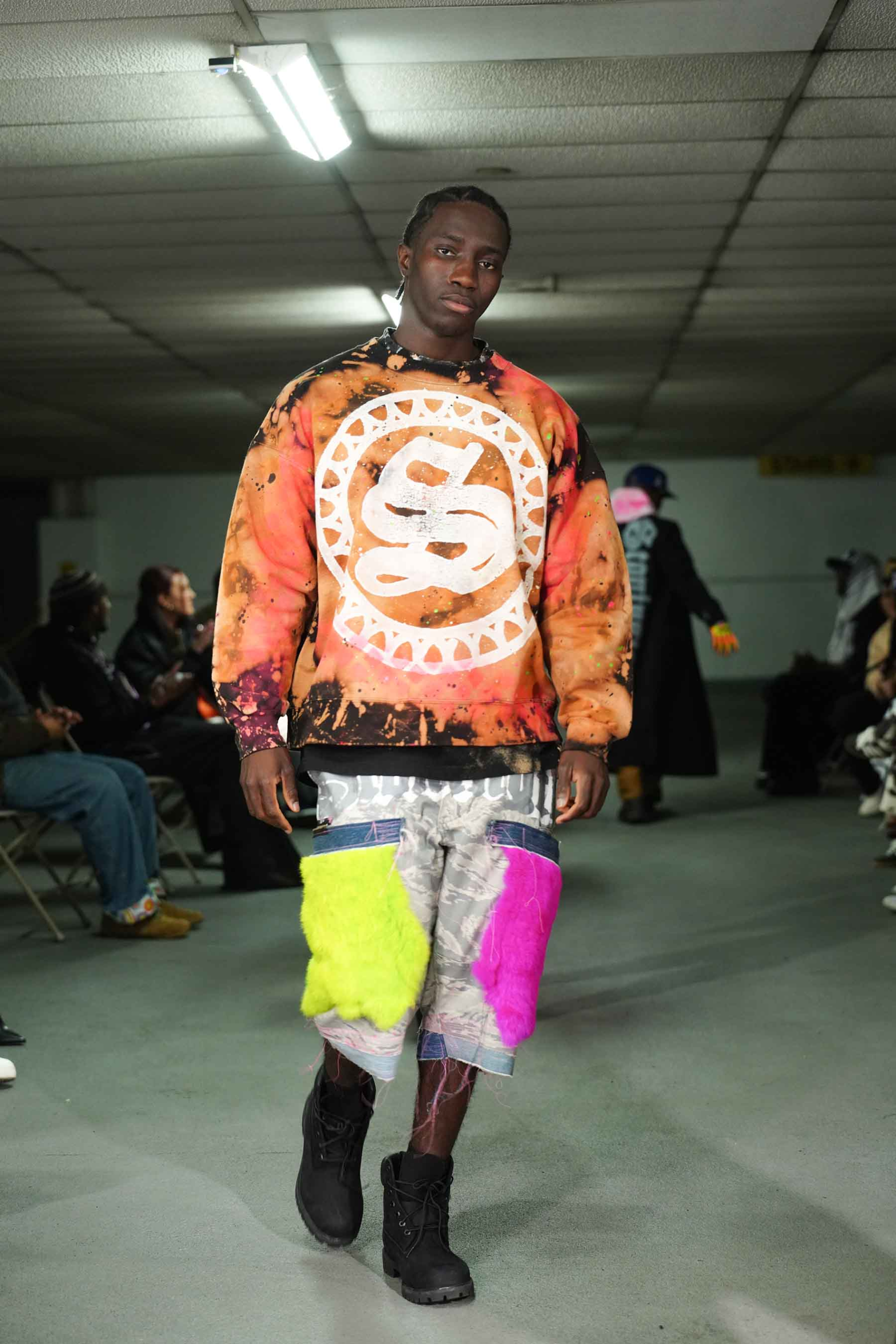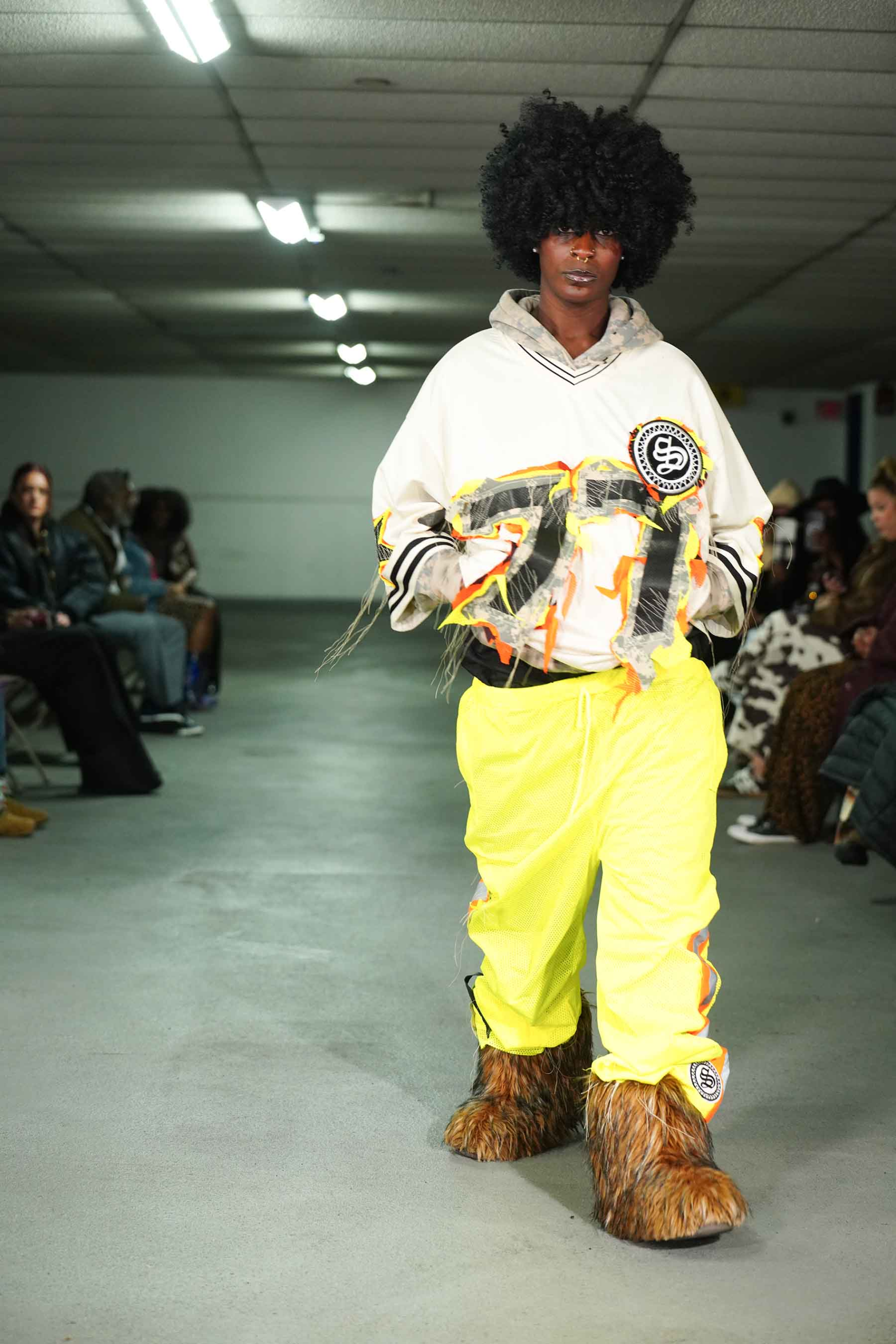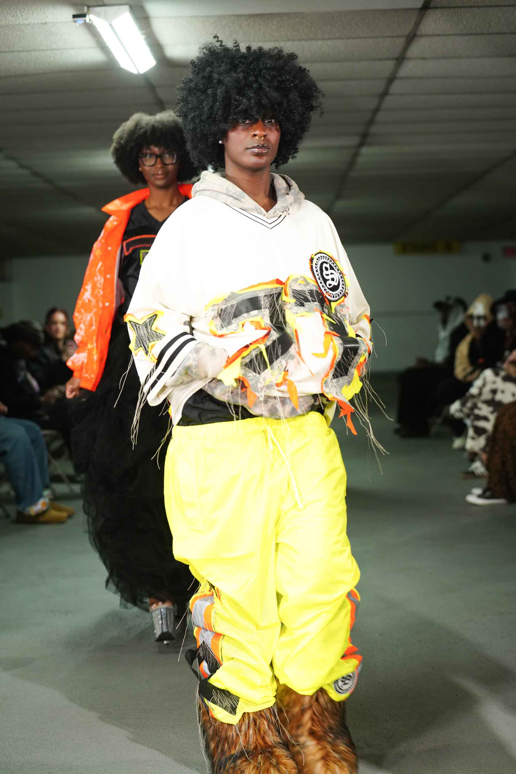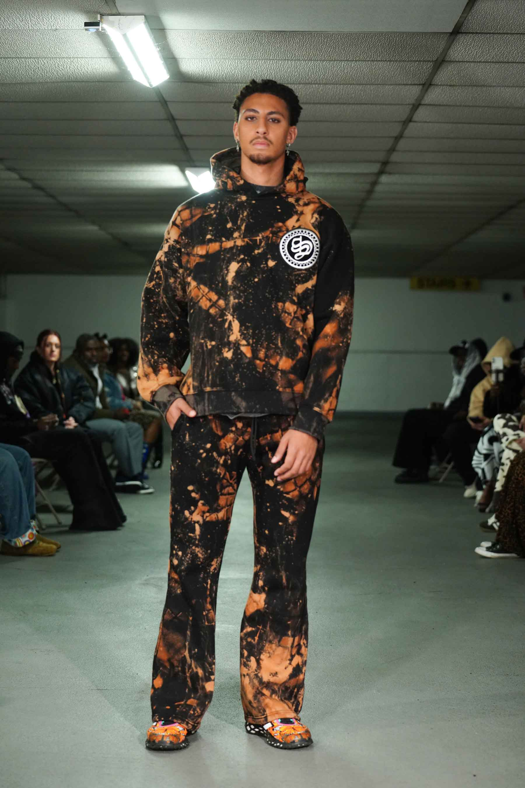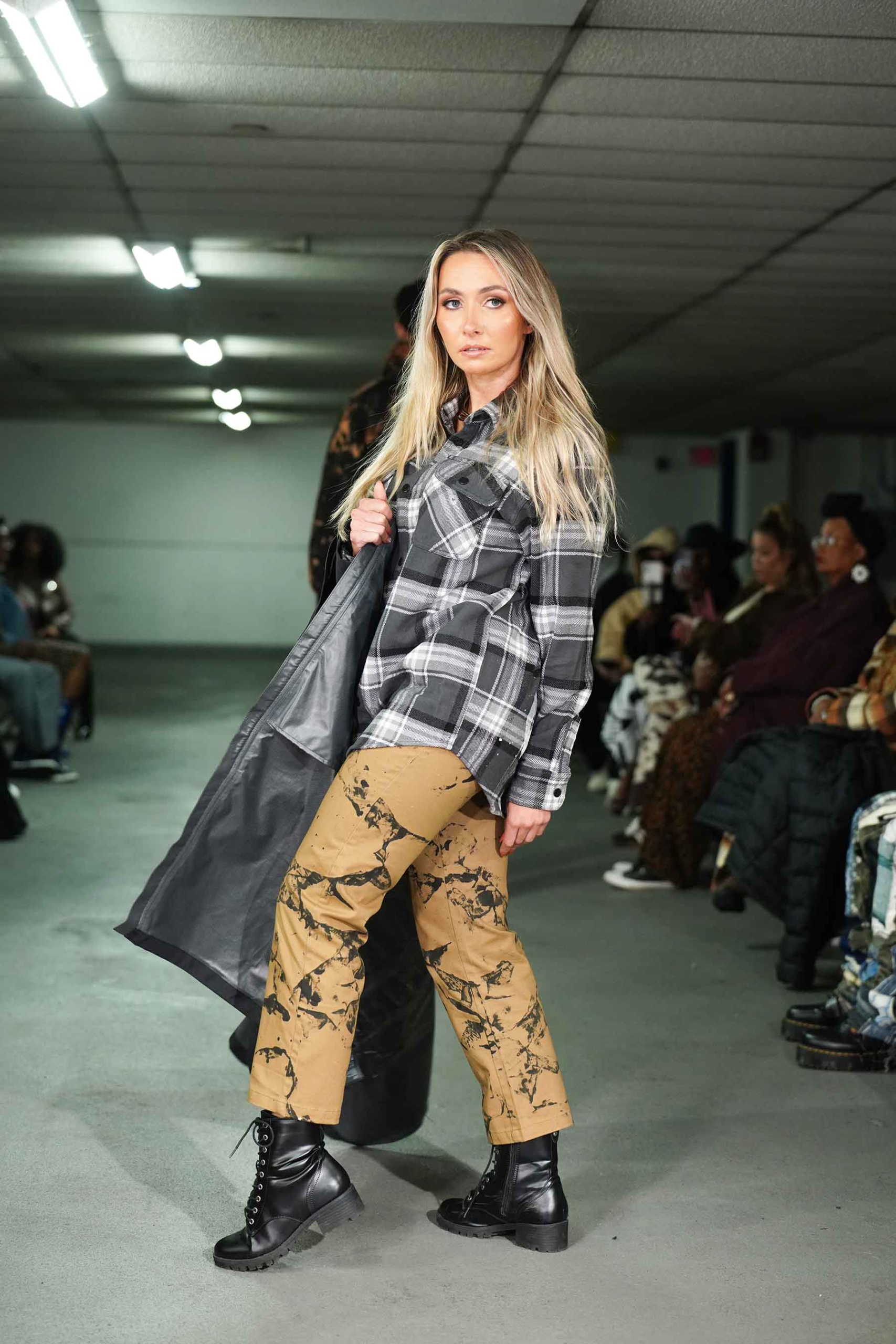 As the breeze blew through the cement cavern of the downtown garage, models kept warm in Stonington’s trademark hoodies and jackets.