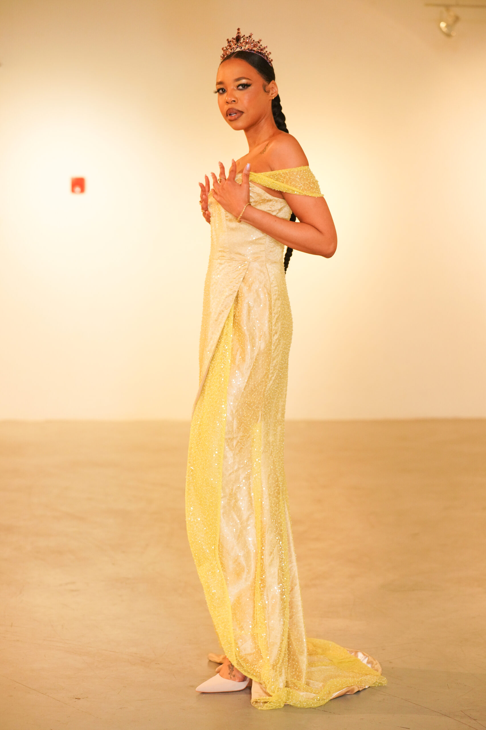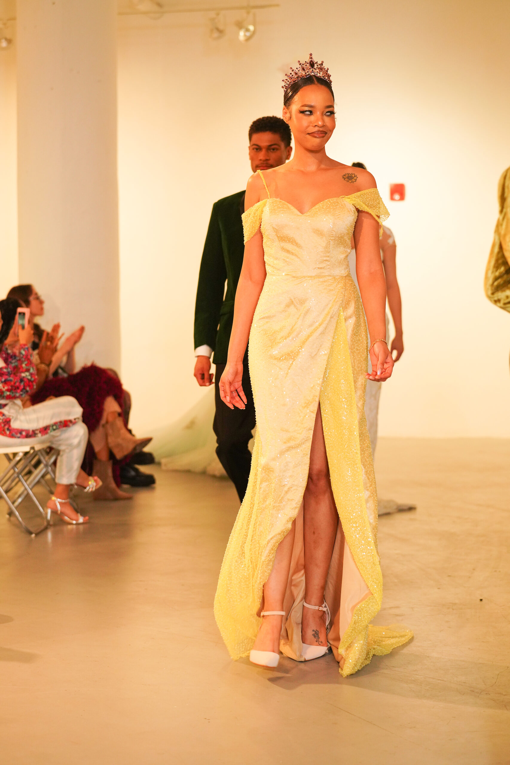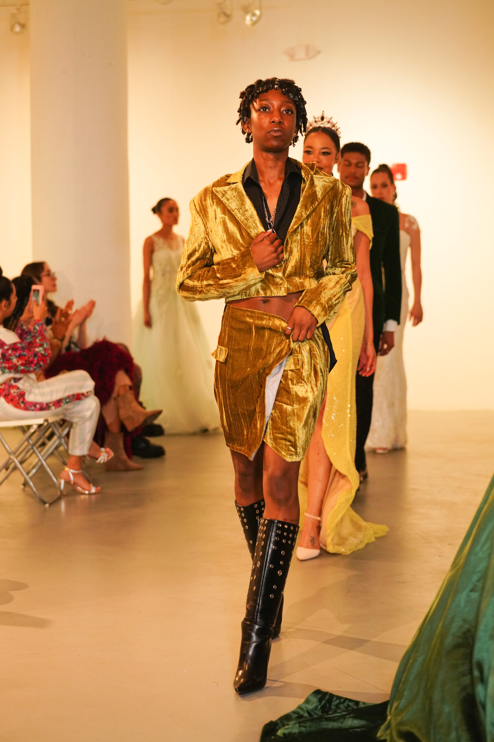 The runway show was held in the art gallery of Art Space in Hartford.