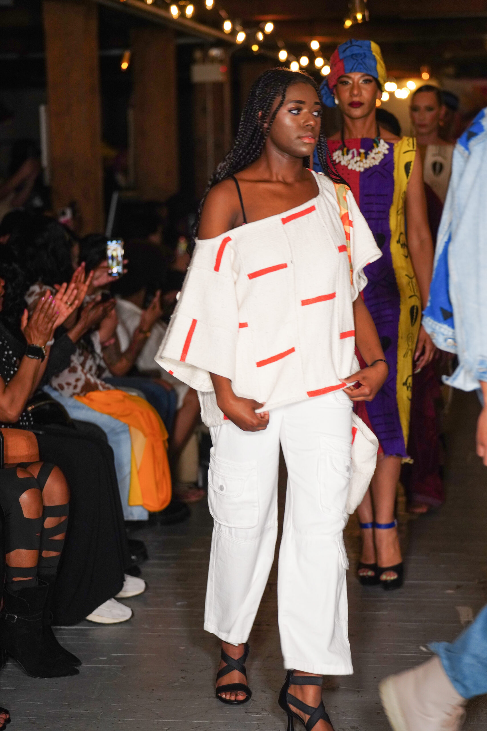 At Hartford Fashion Week on Saturday, April 26, Roots Wear presented a line that touched upon traditional African prints but with silhouettes and cuts offering distinctly fashion-forward approach.