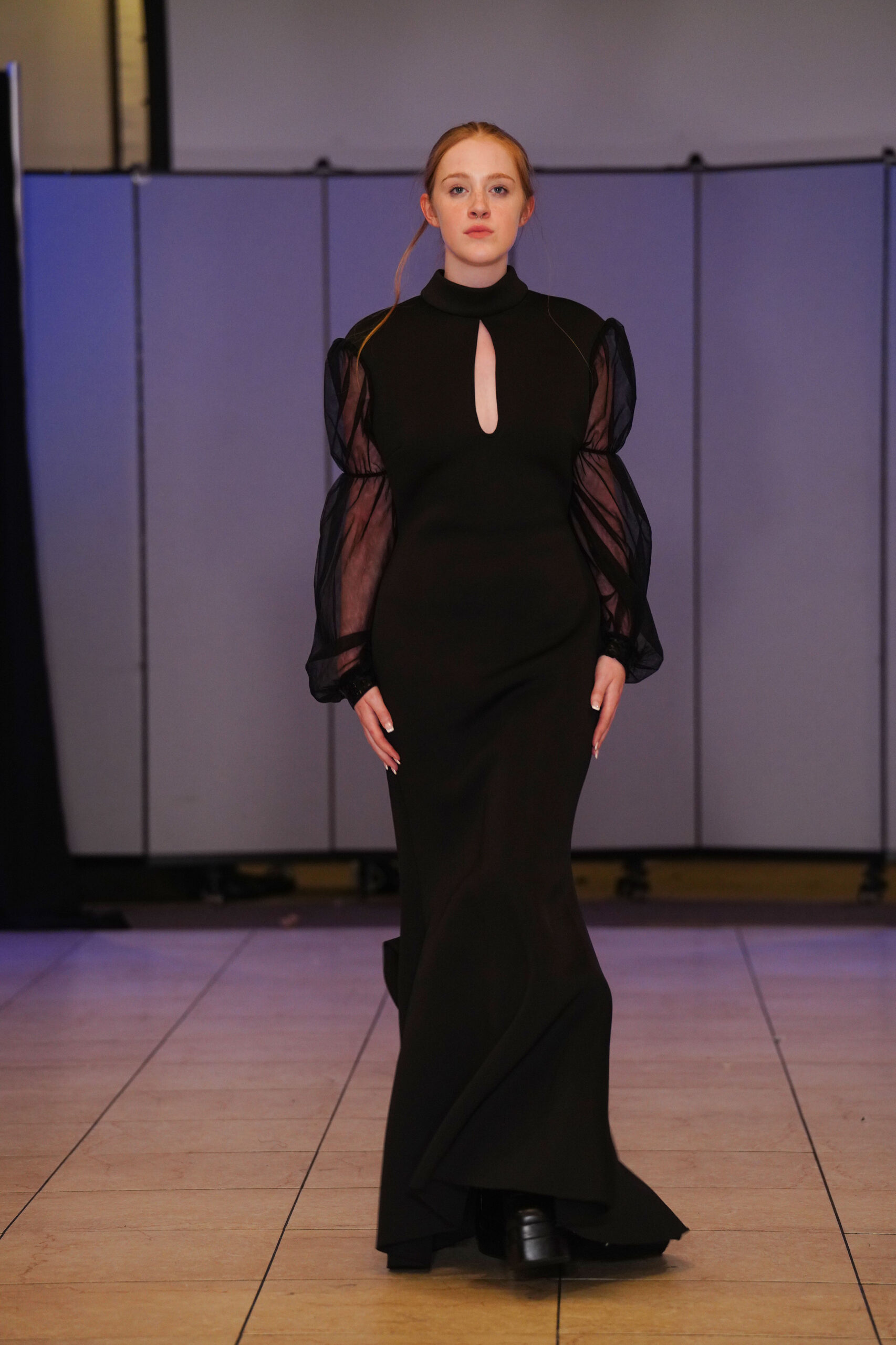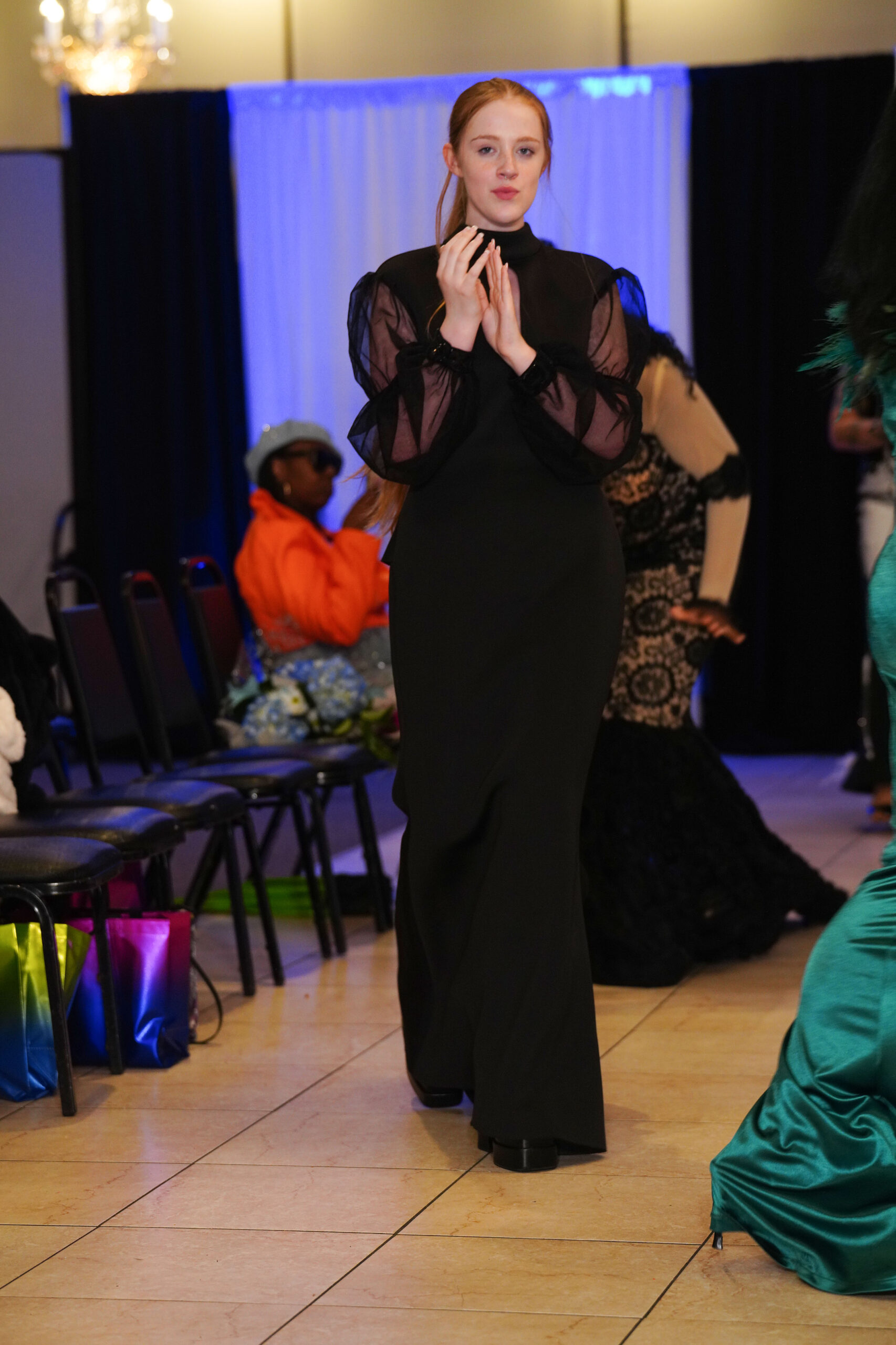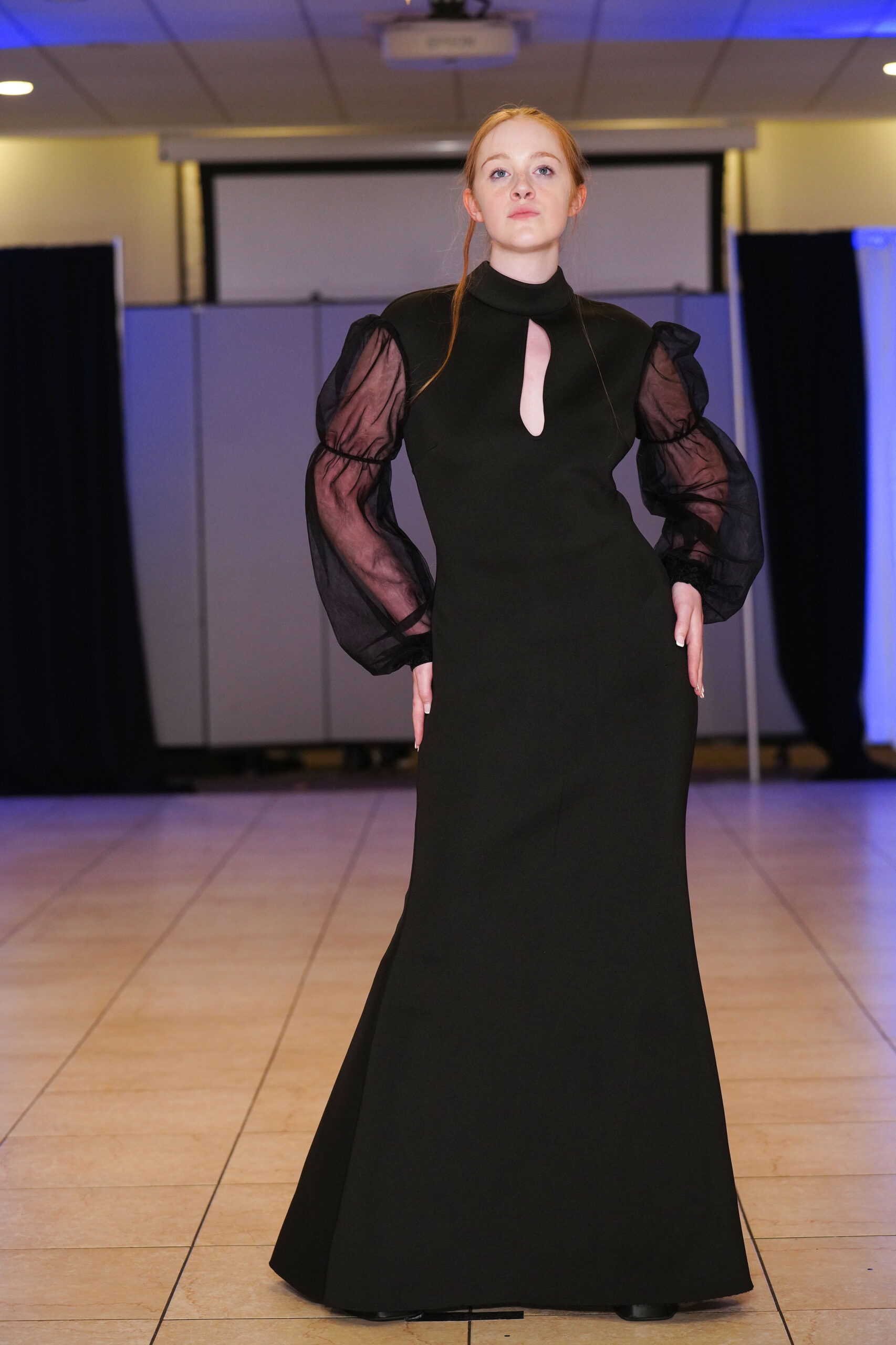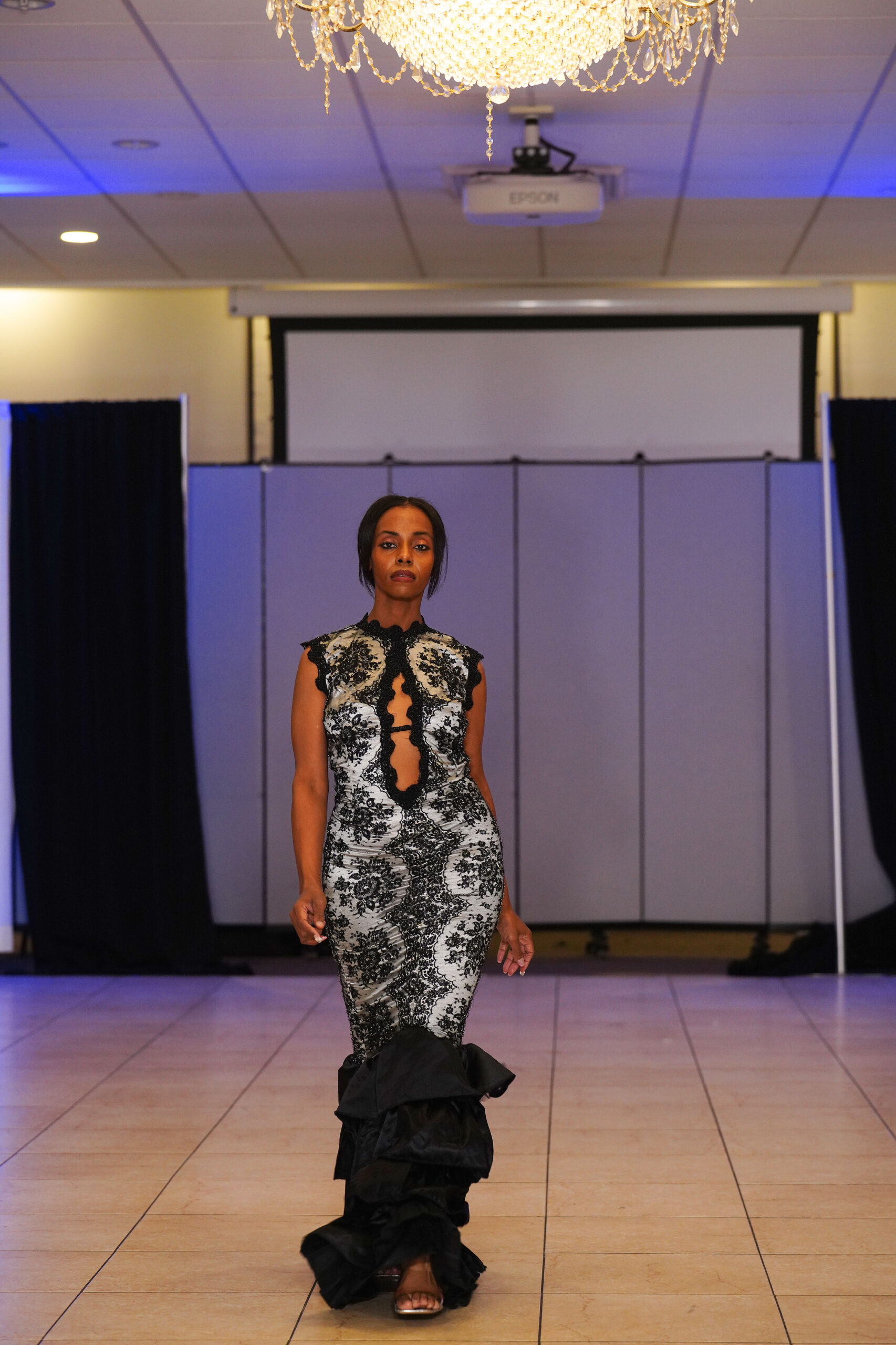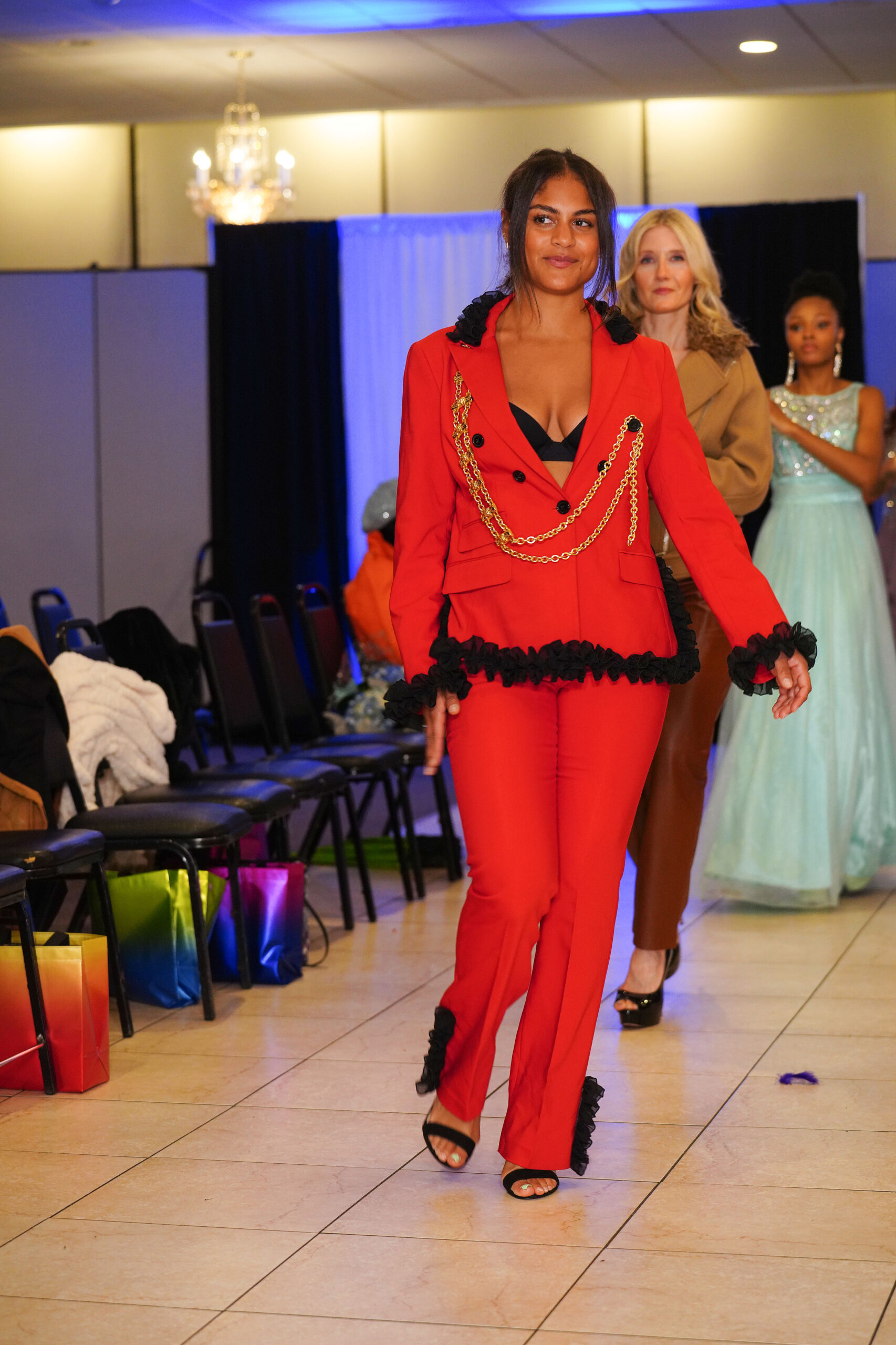 The Connecticut-based brand presented pieces that offered a cinematic allure to the catwalk set up in the Middletown Elks Club beneath the chandeliers on May 9.