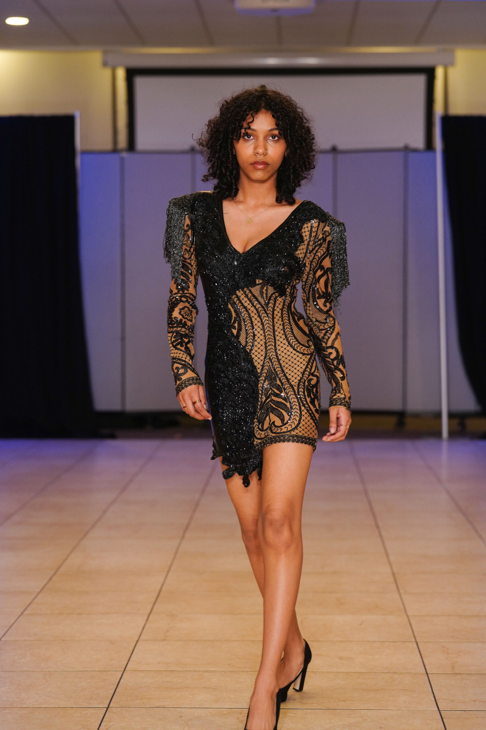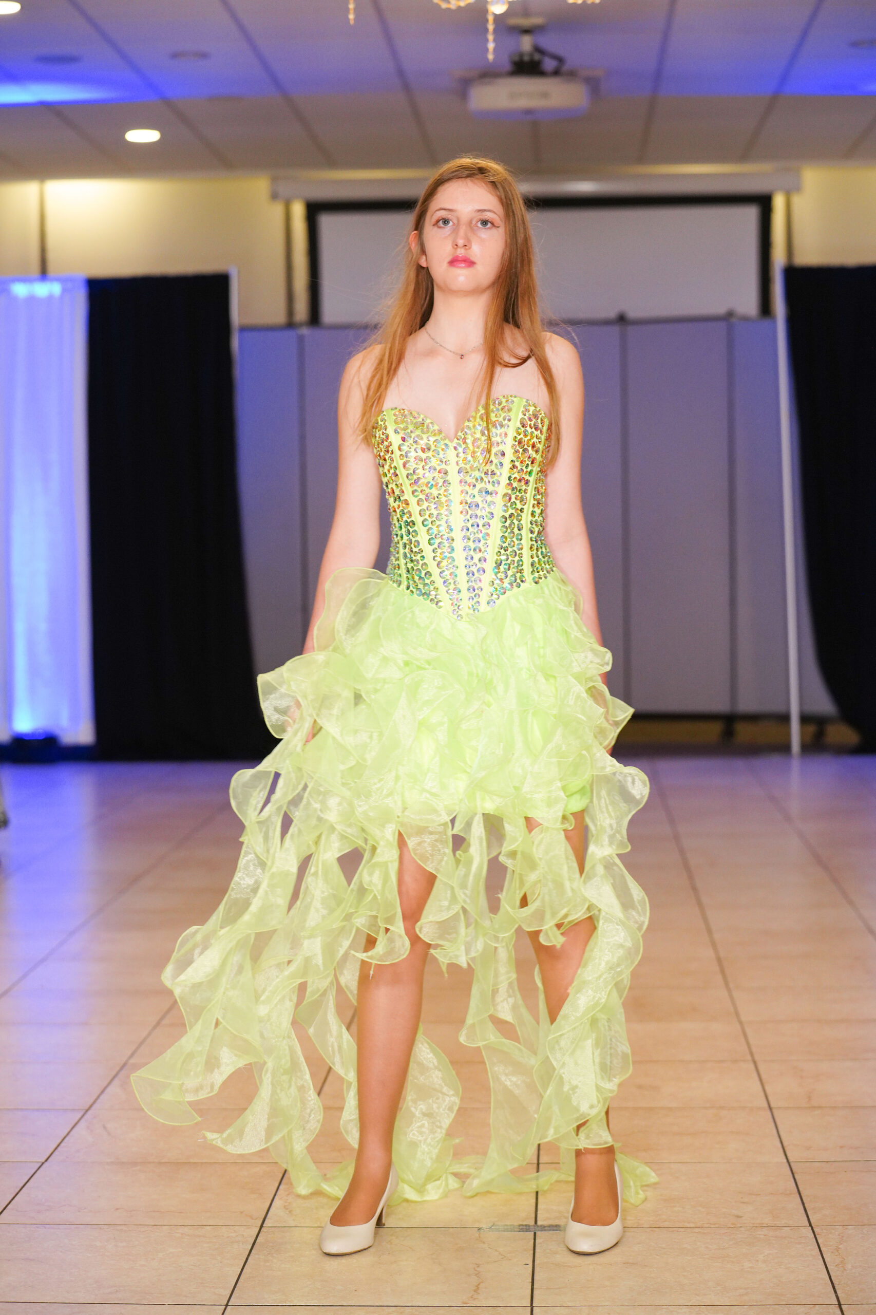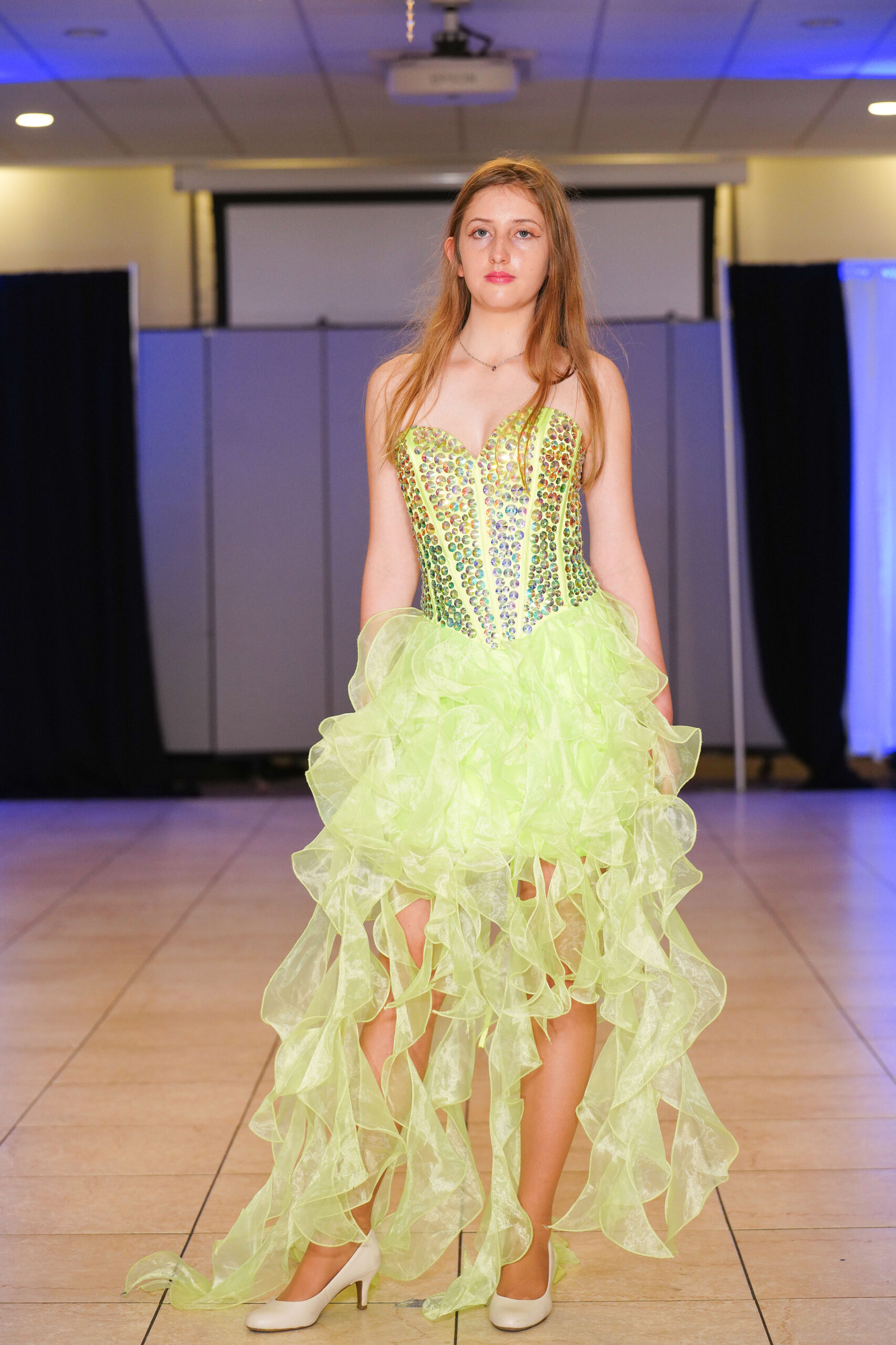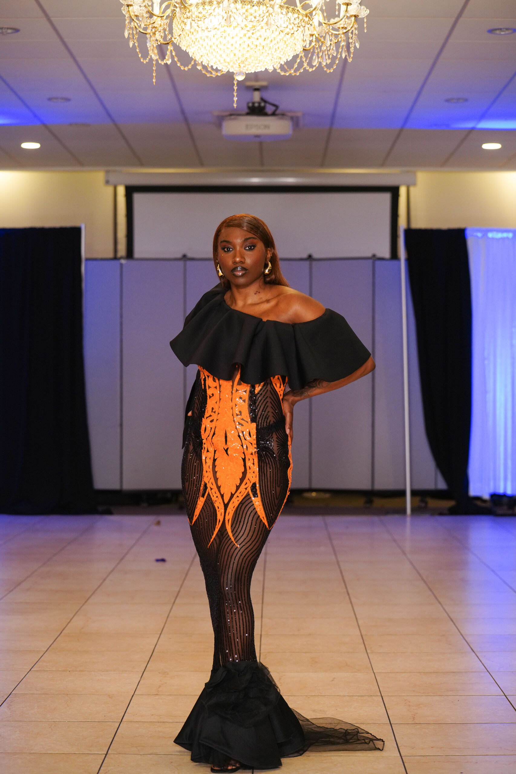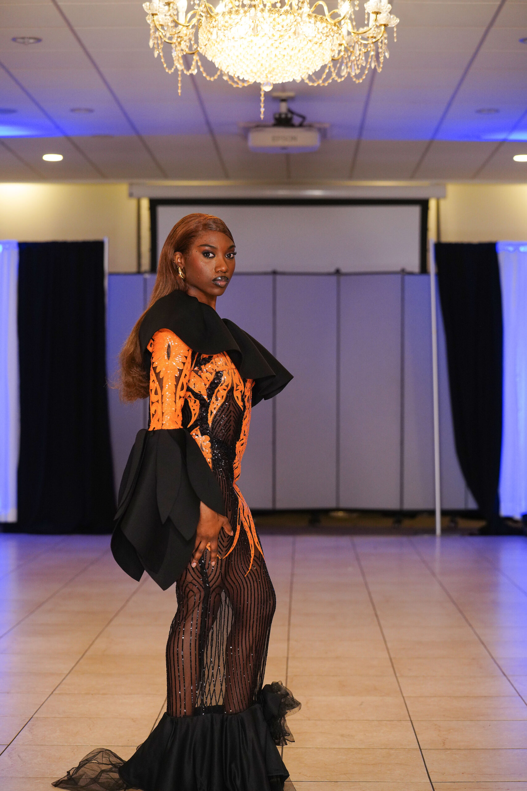 The Connecticut-based brand presented pieces that offered a cinematic allure to the catwalk set up in the Middletown Elks Club beneath the chandeliers on May 9.