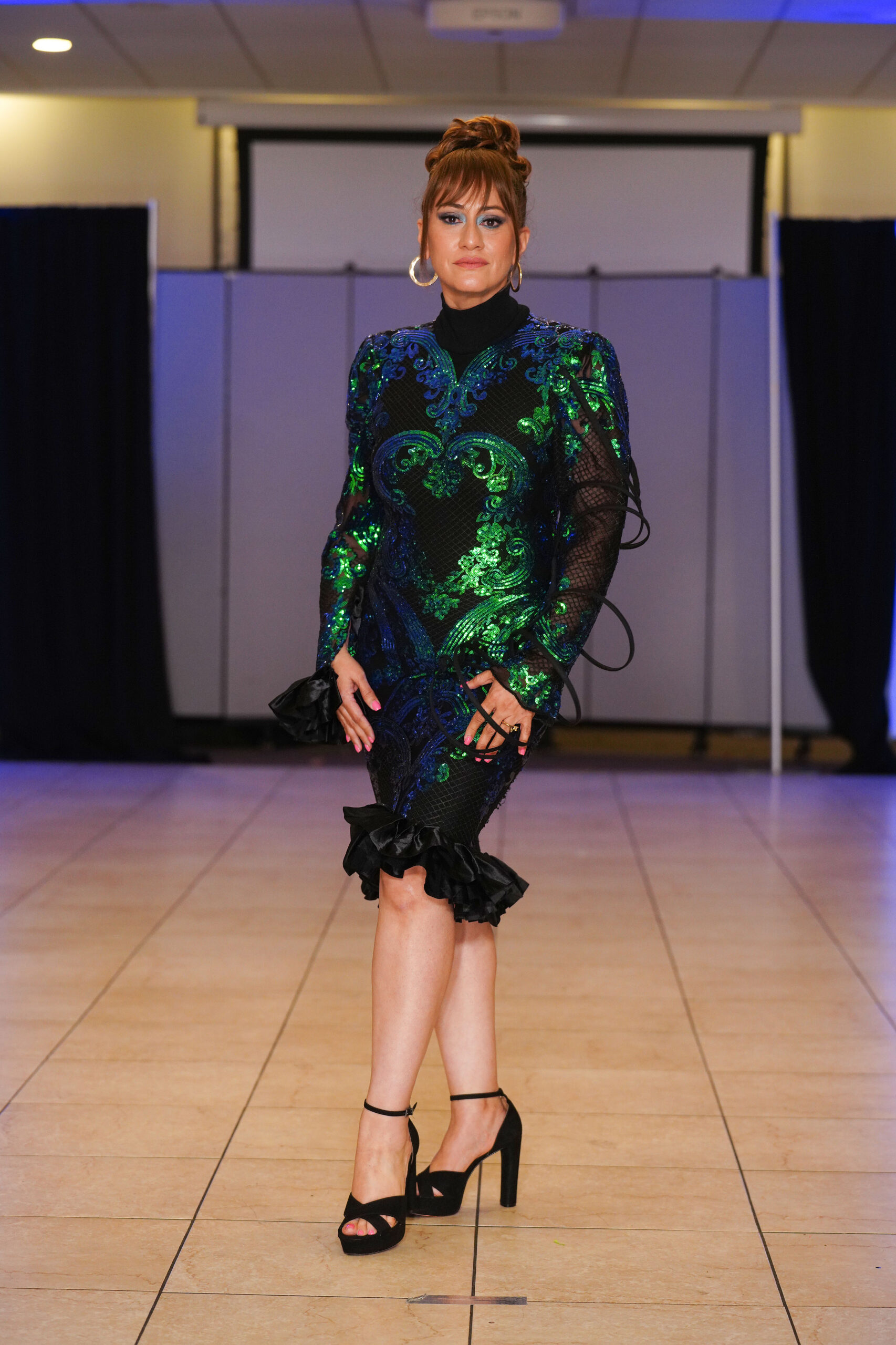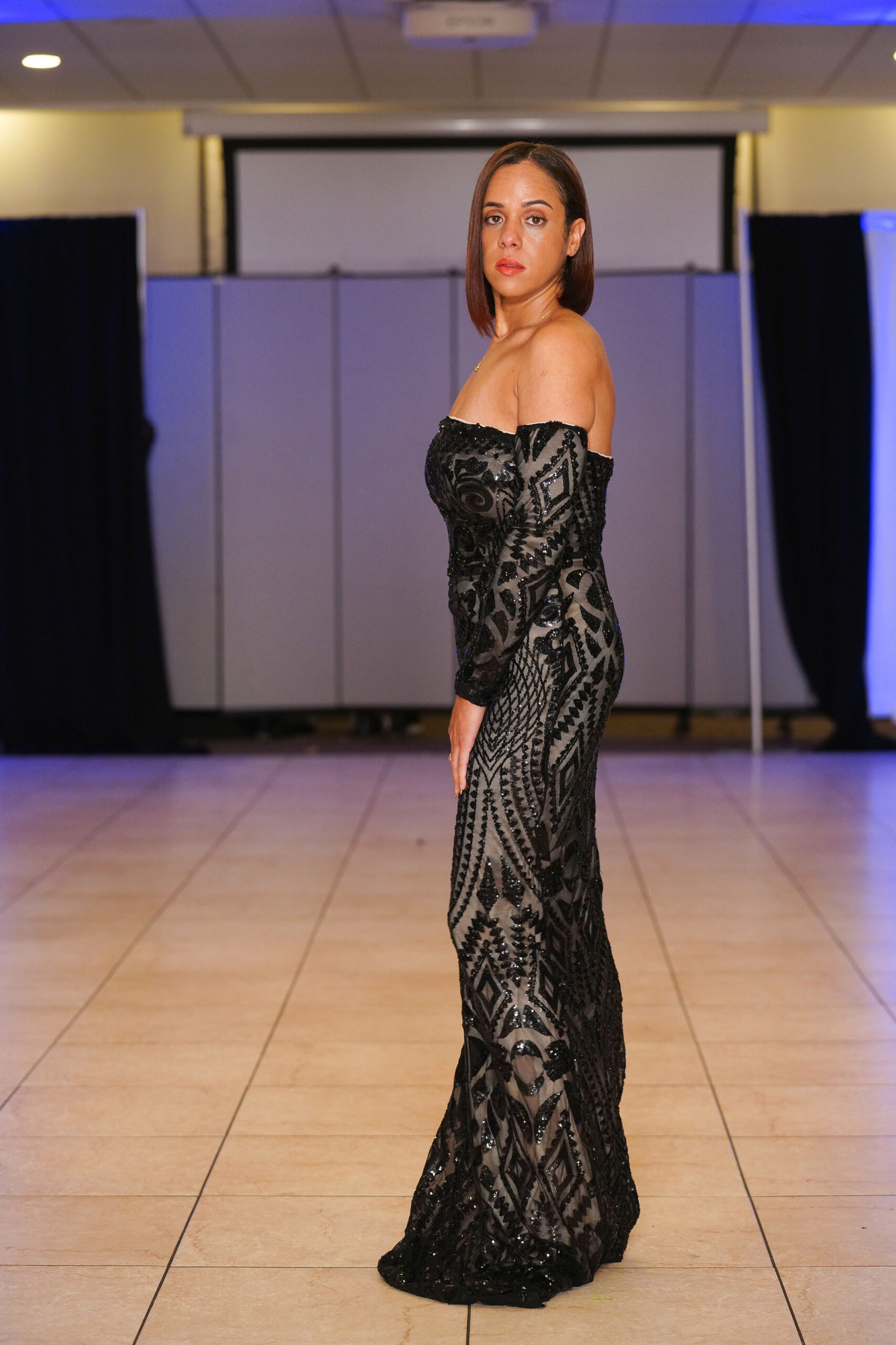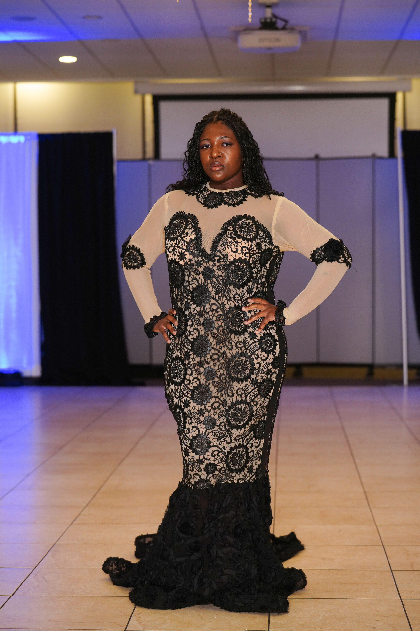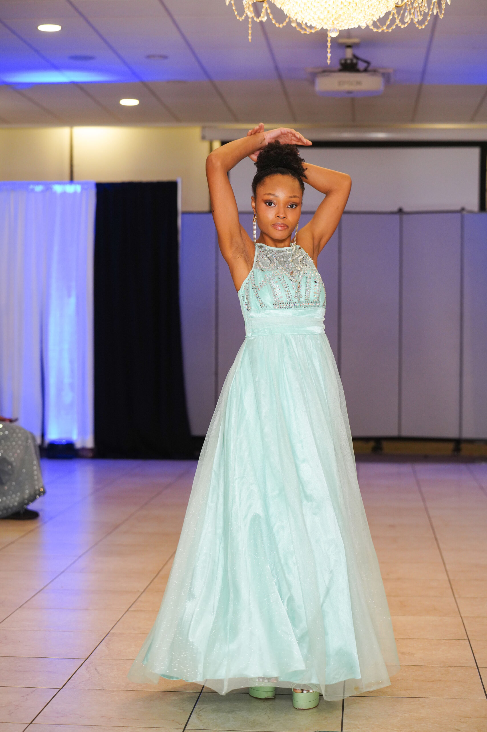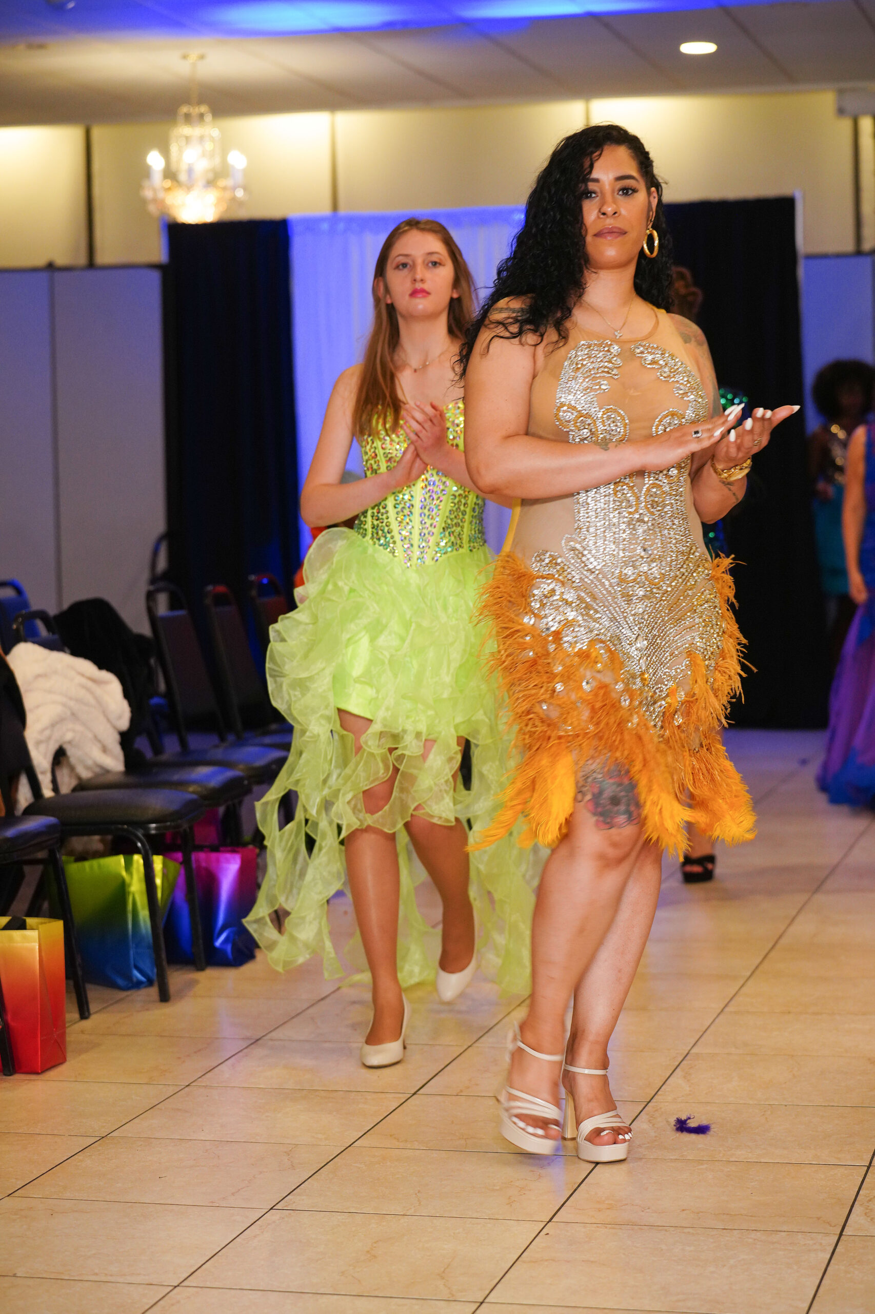 The Connecticut-based brand presented pieces that offered a cinematic allure to the catwalk set up in the Middletown Elks Club beneath the chandeliers on May 9.