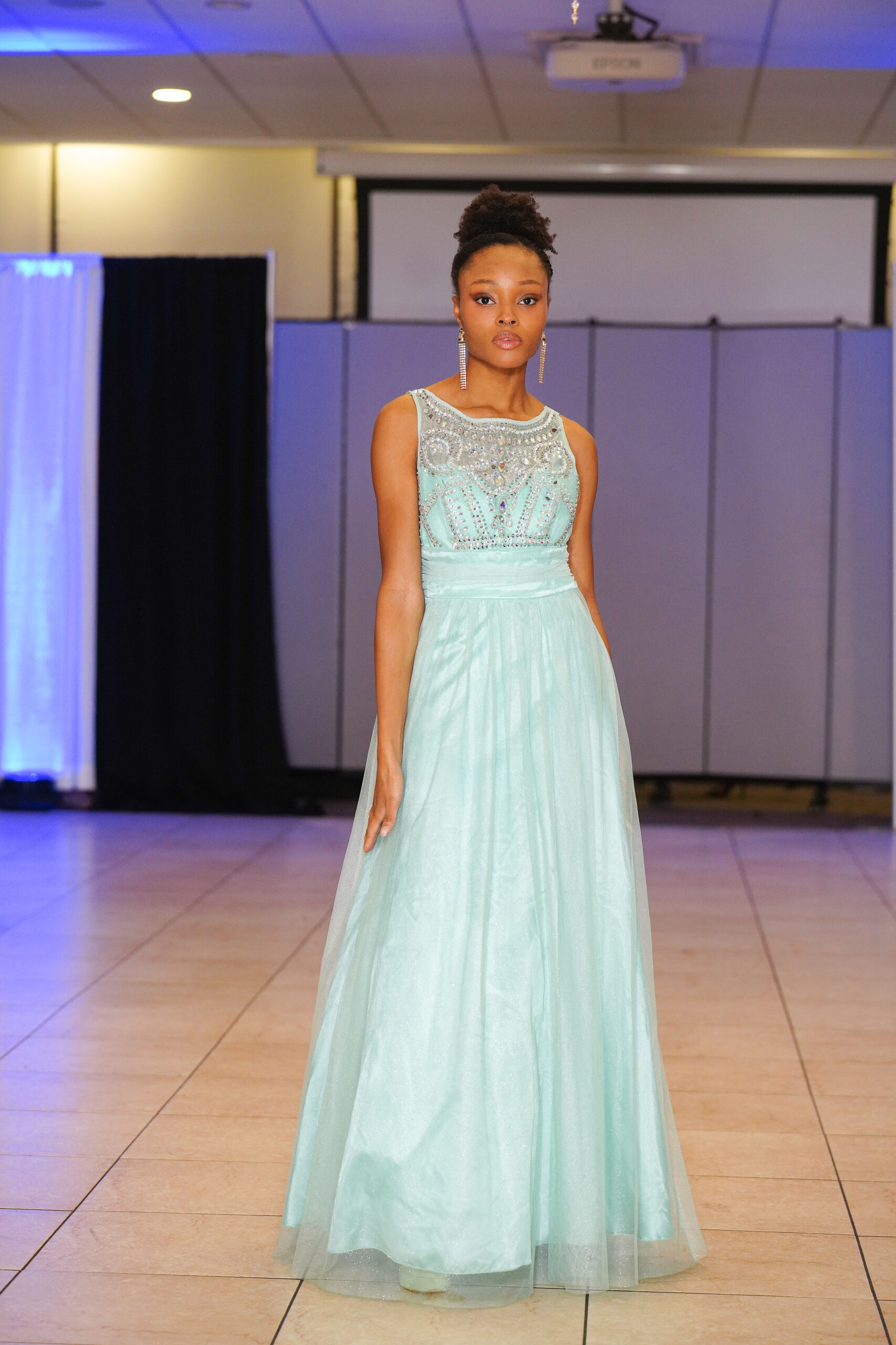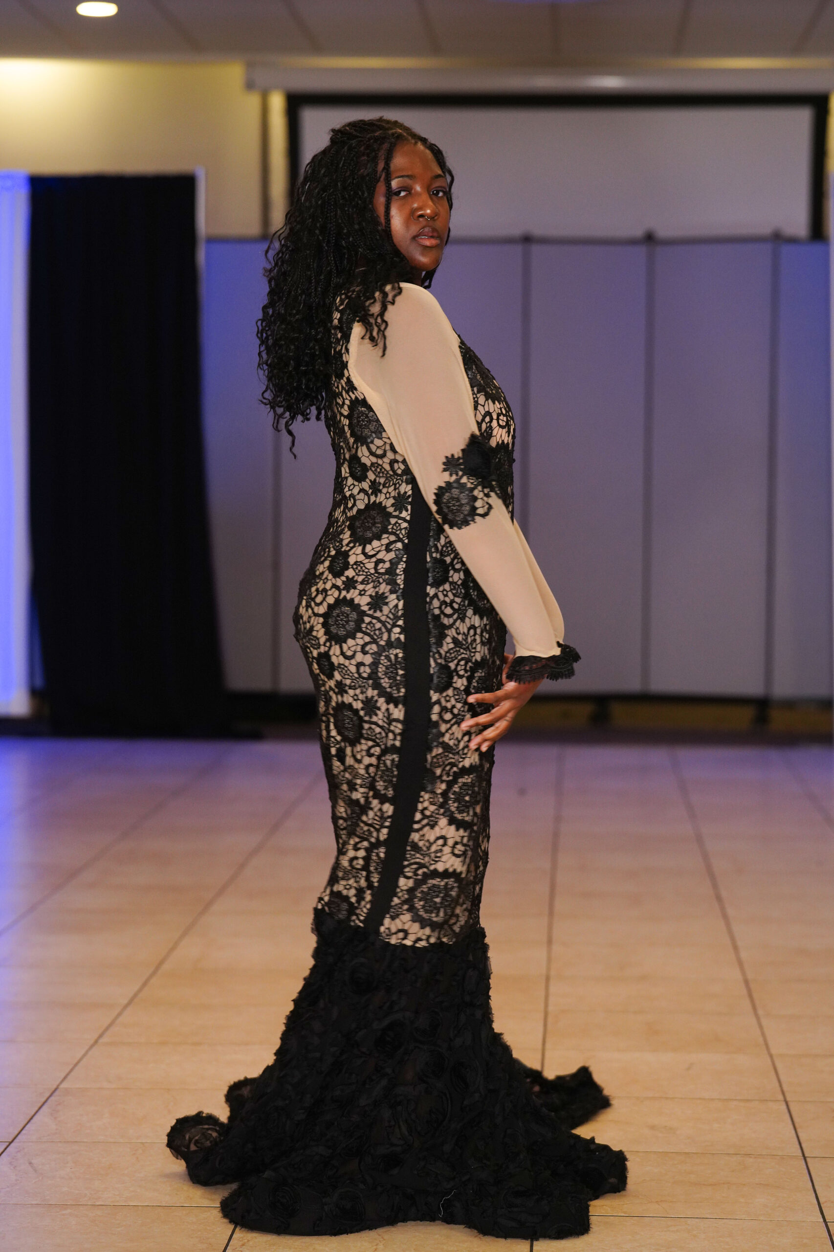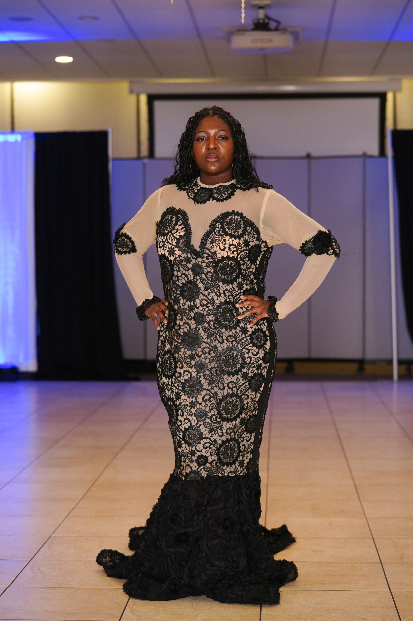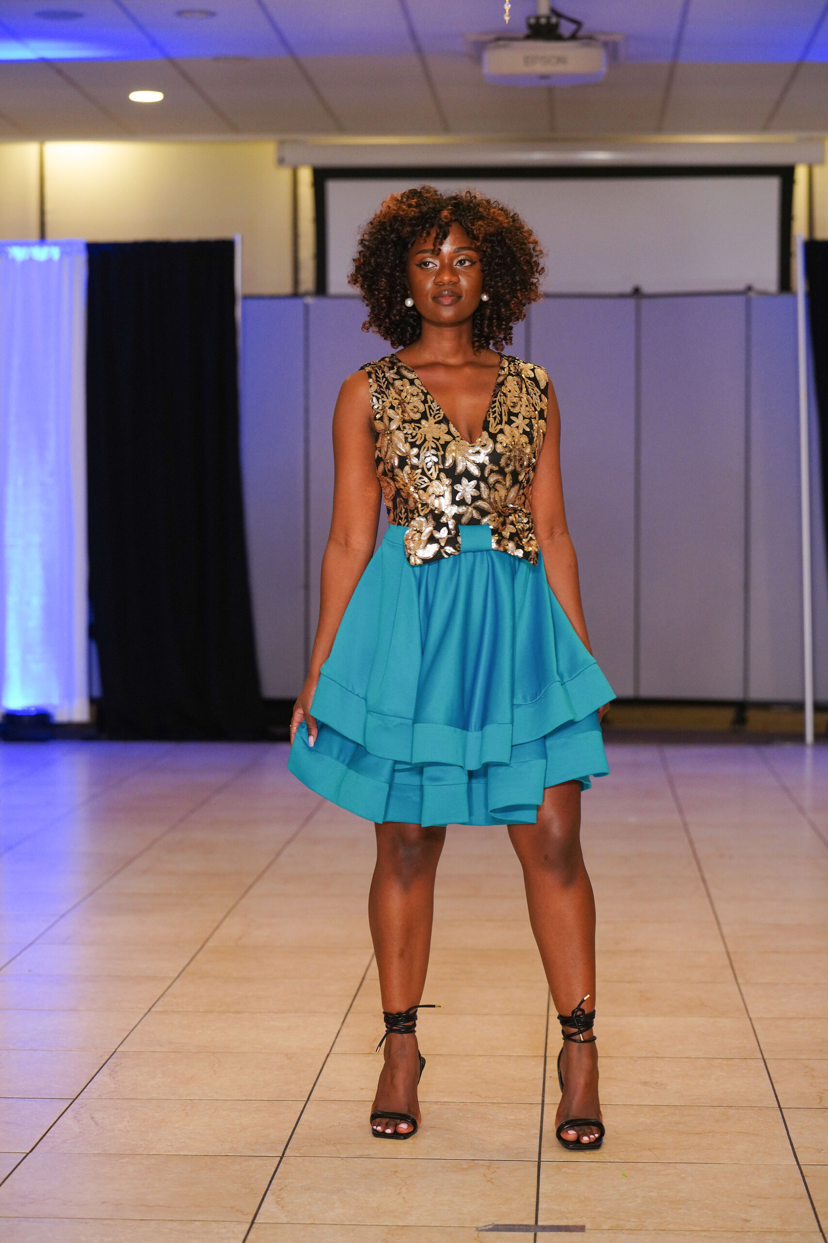 The Connecticut-based brand presented pieces that offered a cinematic allure to the catwalk set up in the Middletown Elks Club beneath the chandeliers on May 9.