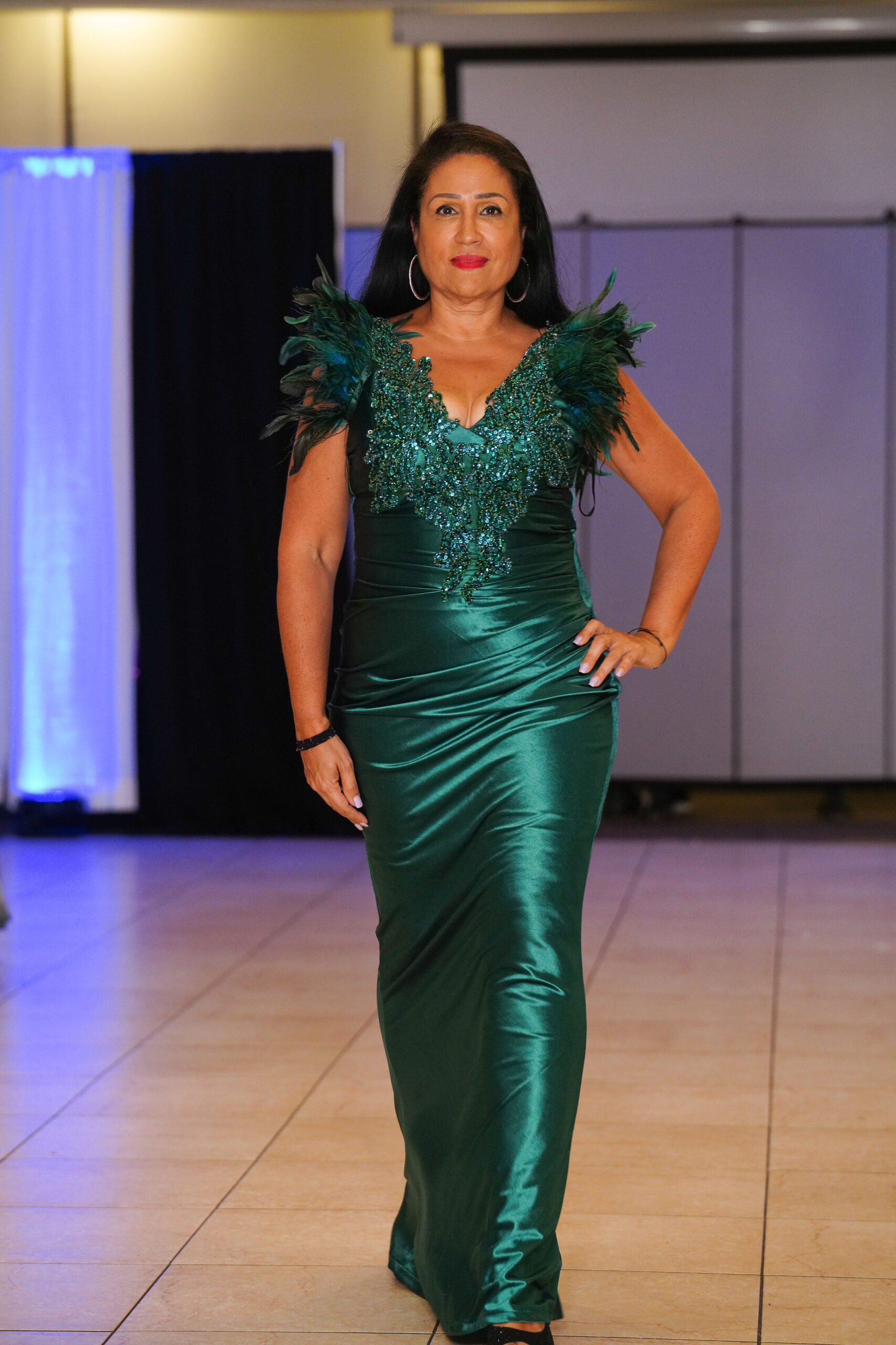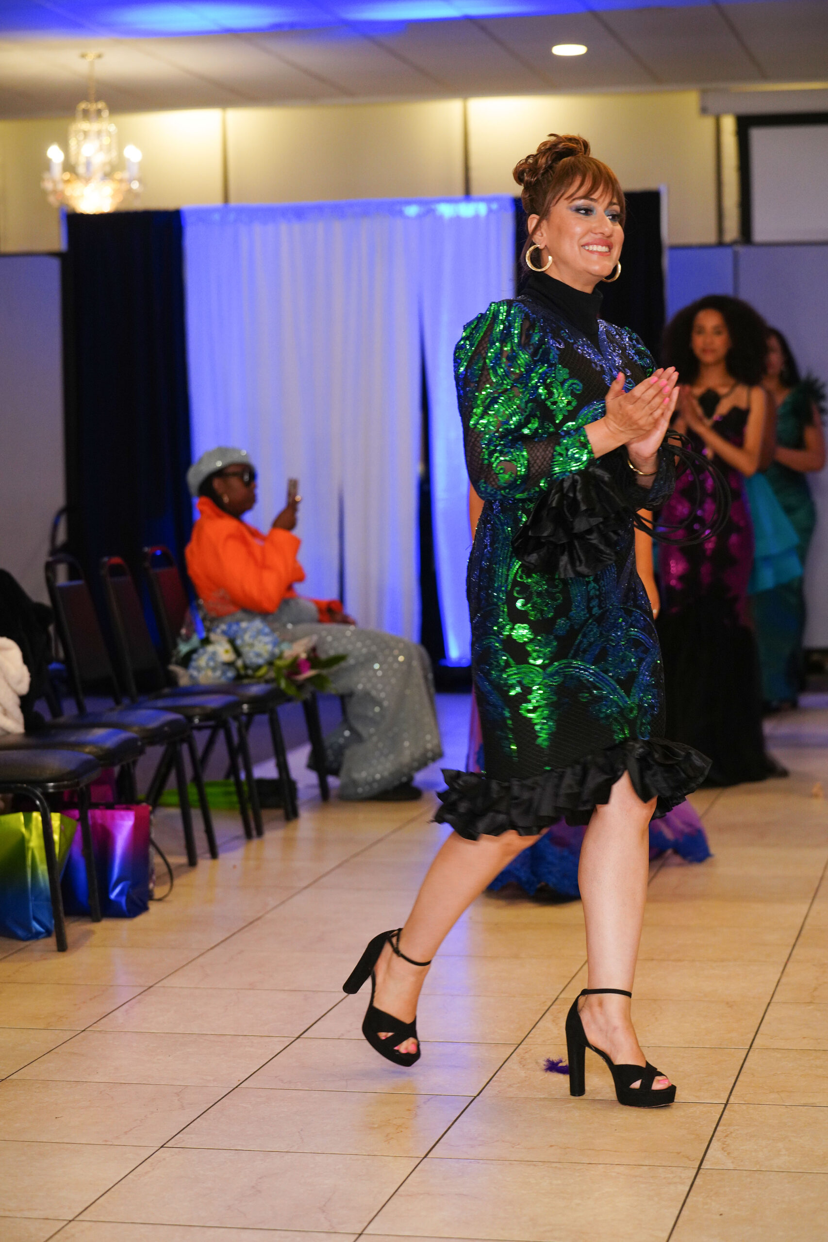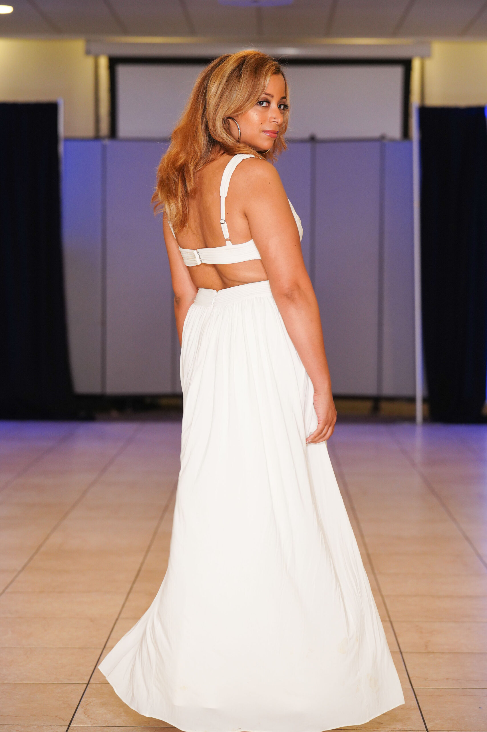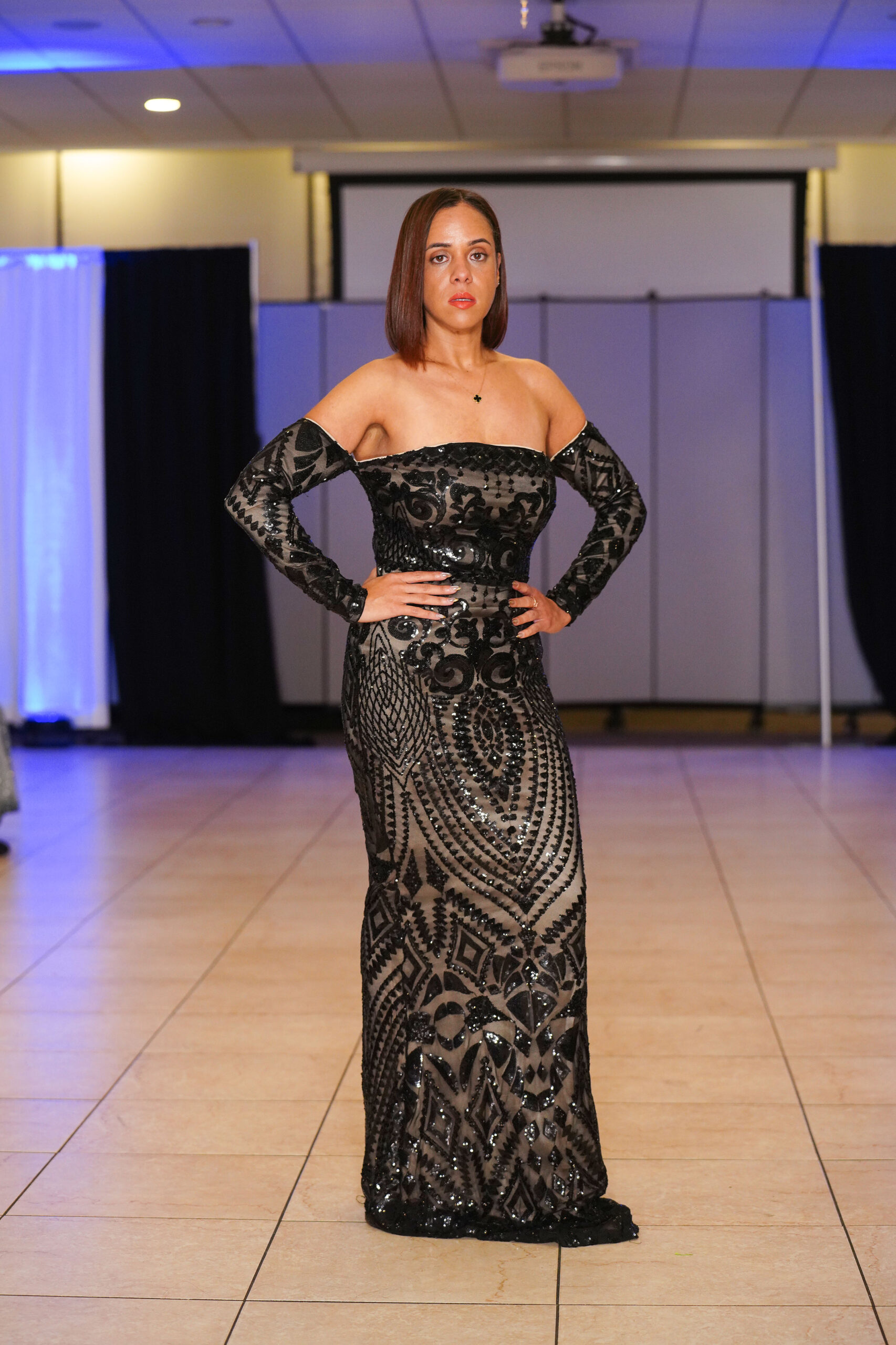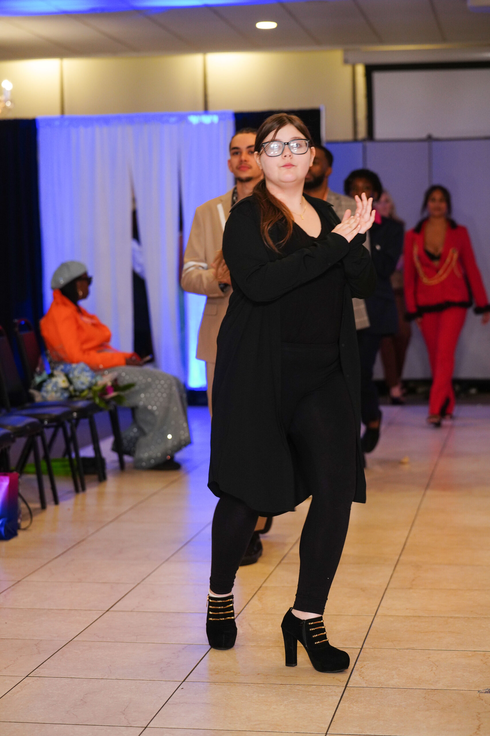The Connecticut-based brand presented pieces that offered a cinematic allure to the catwalk set up in the Middletown Elks Club beneath the chandeliers on May 9.