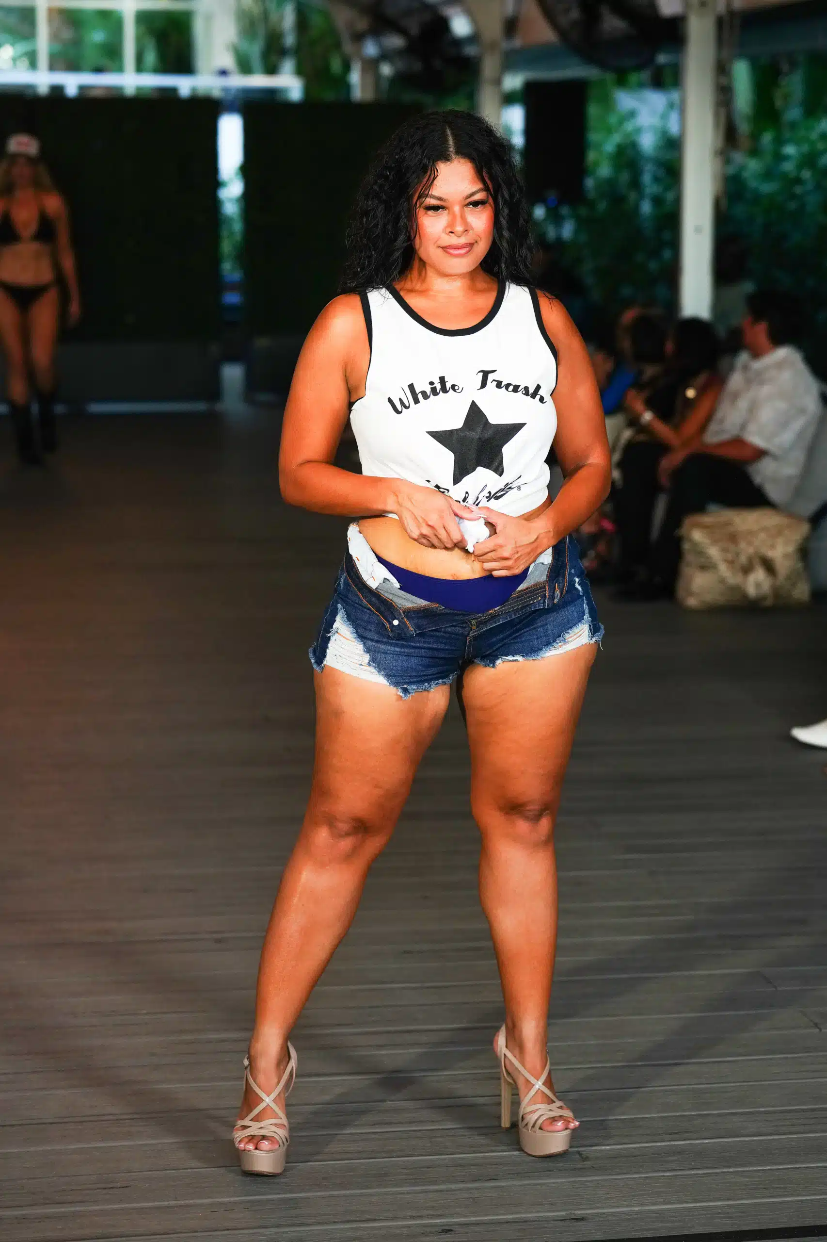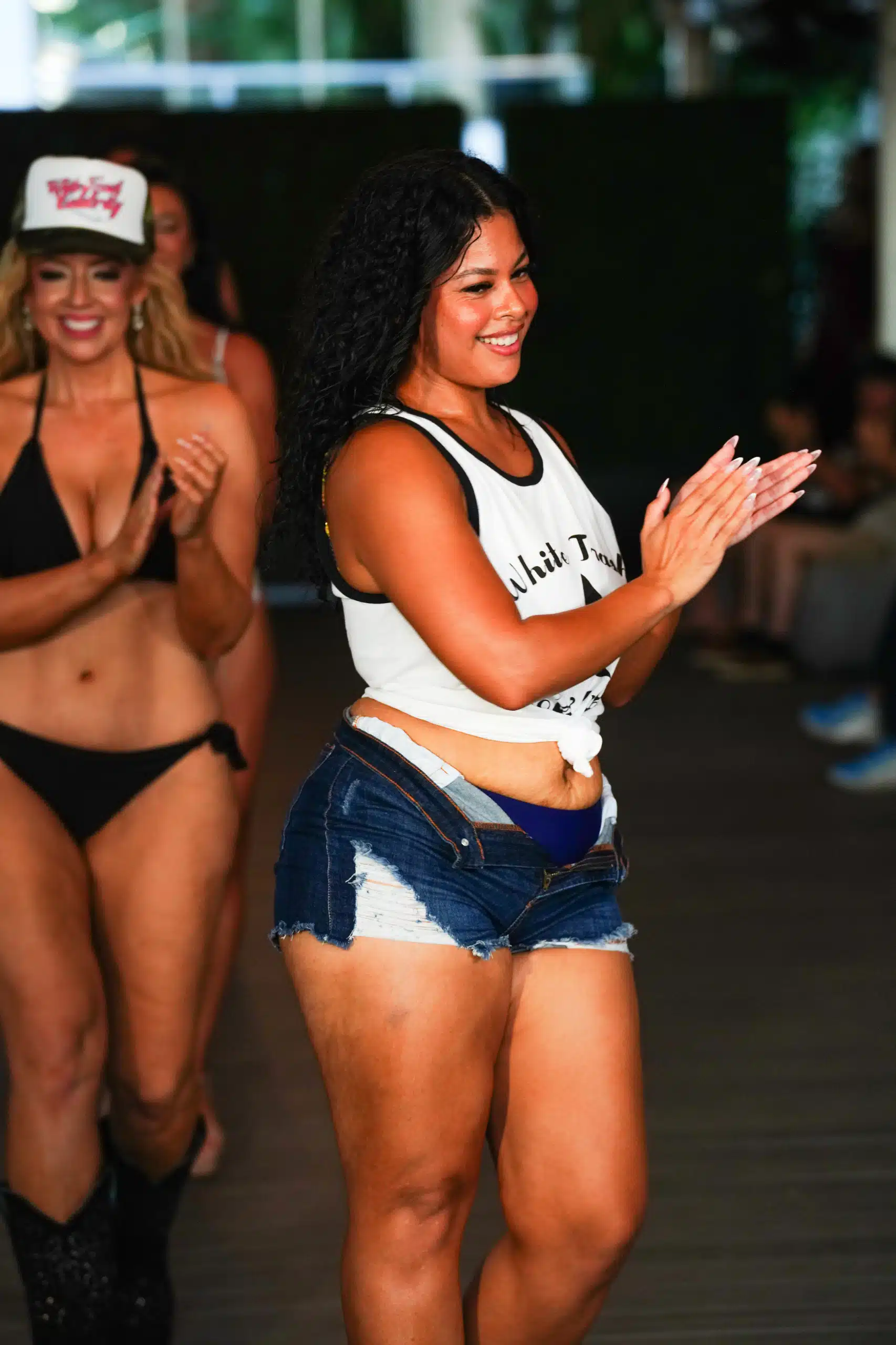 The contestants of Miss Bikini US walked the runway in the latest pieces from White Trash Celebrity, which is created by the pageant’s executive director Dawn Rochelle Warner Bates.