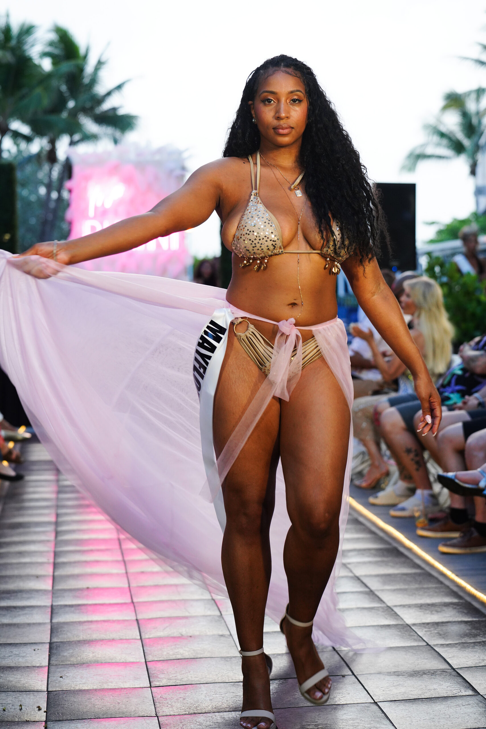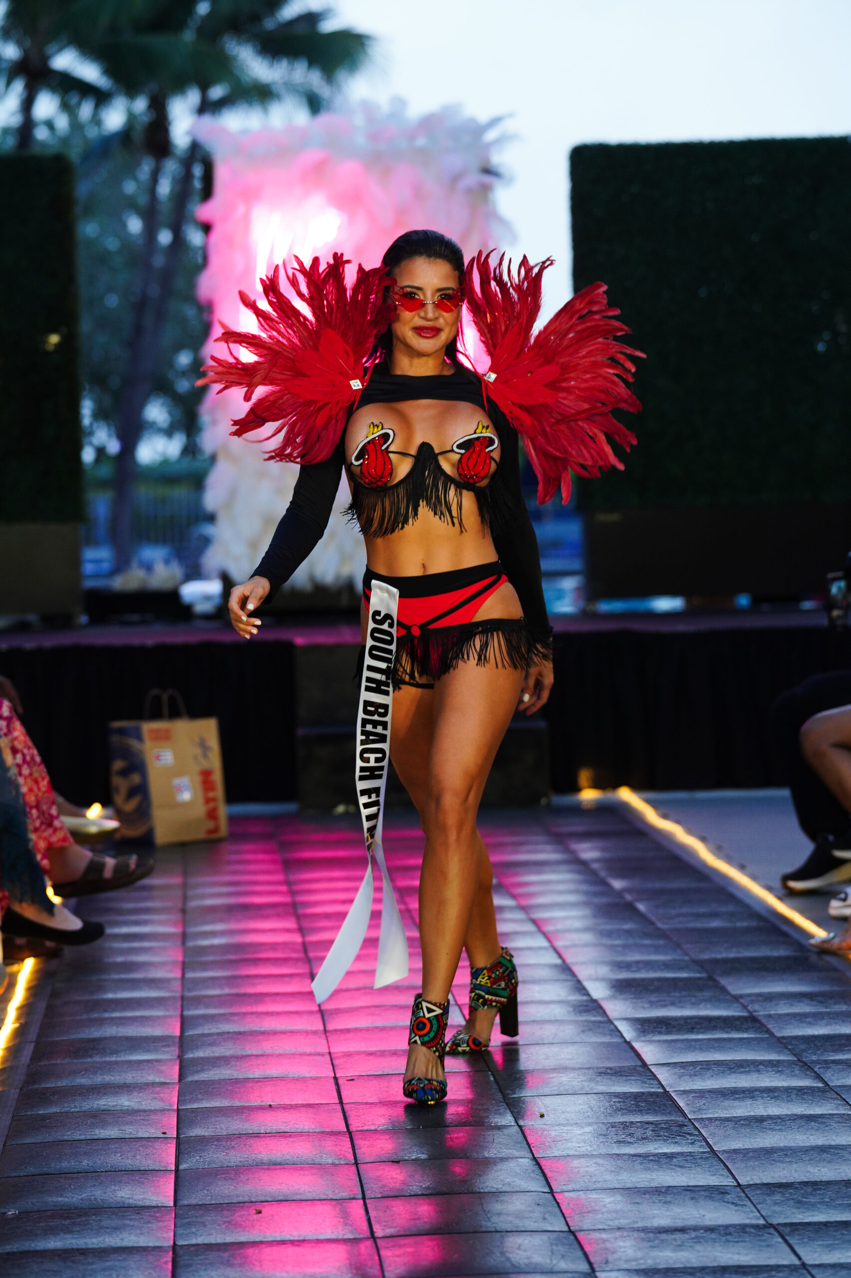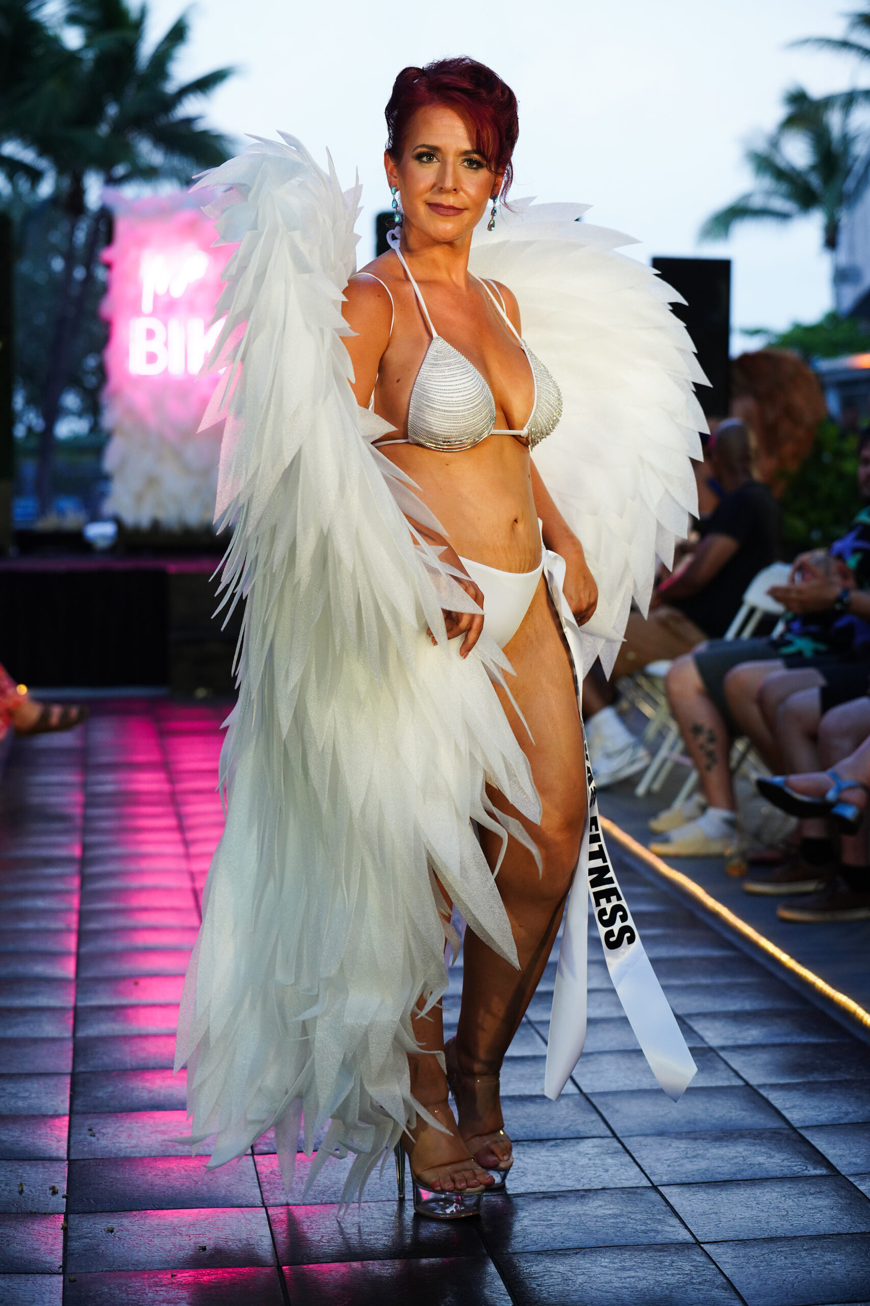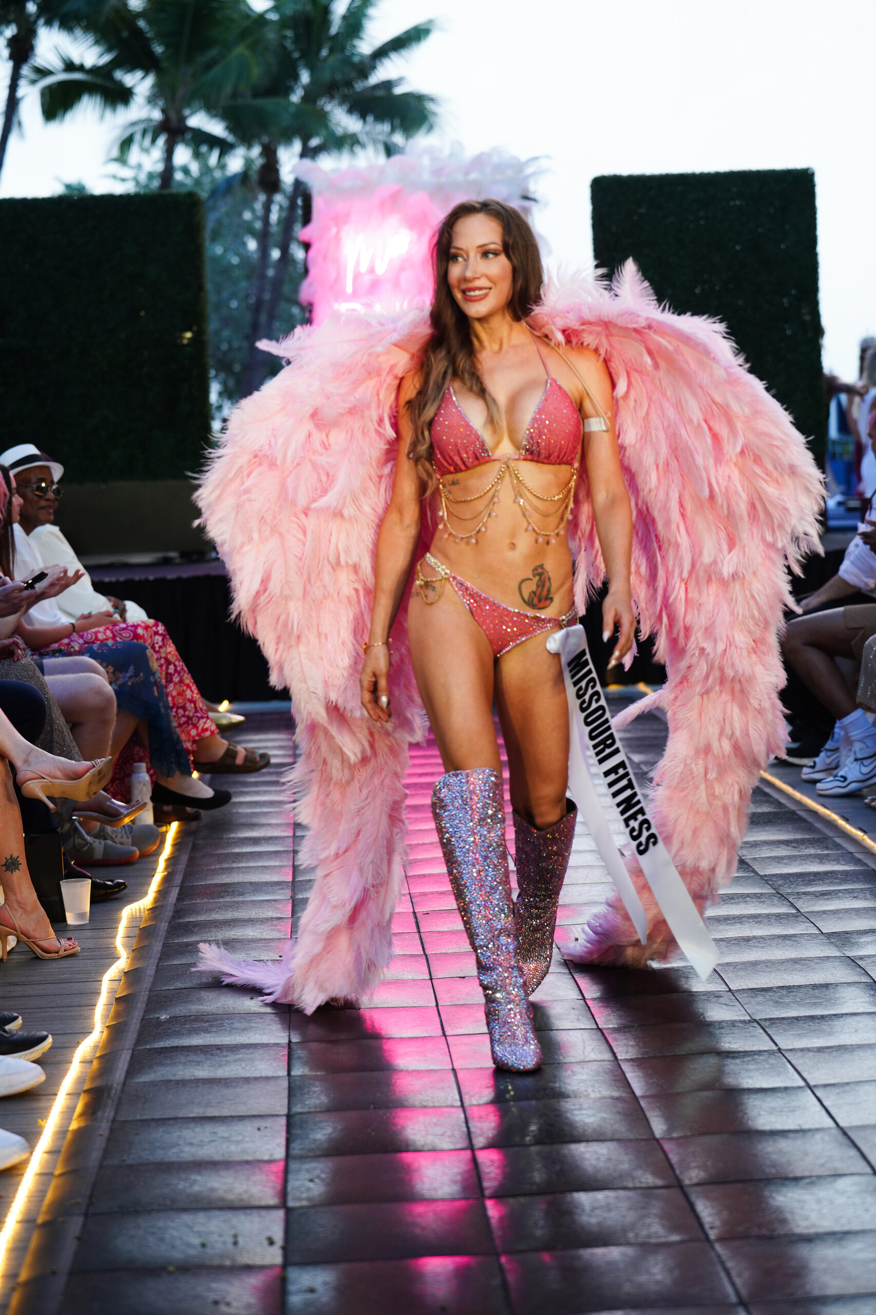 As part of the Miss Bikini US competition, contestants participate in the fantasy swimwear category.
