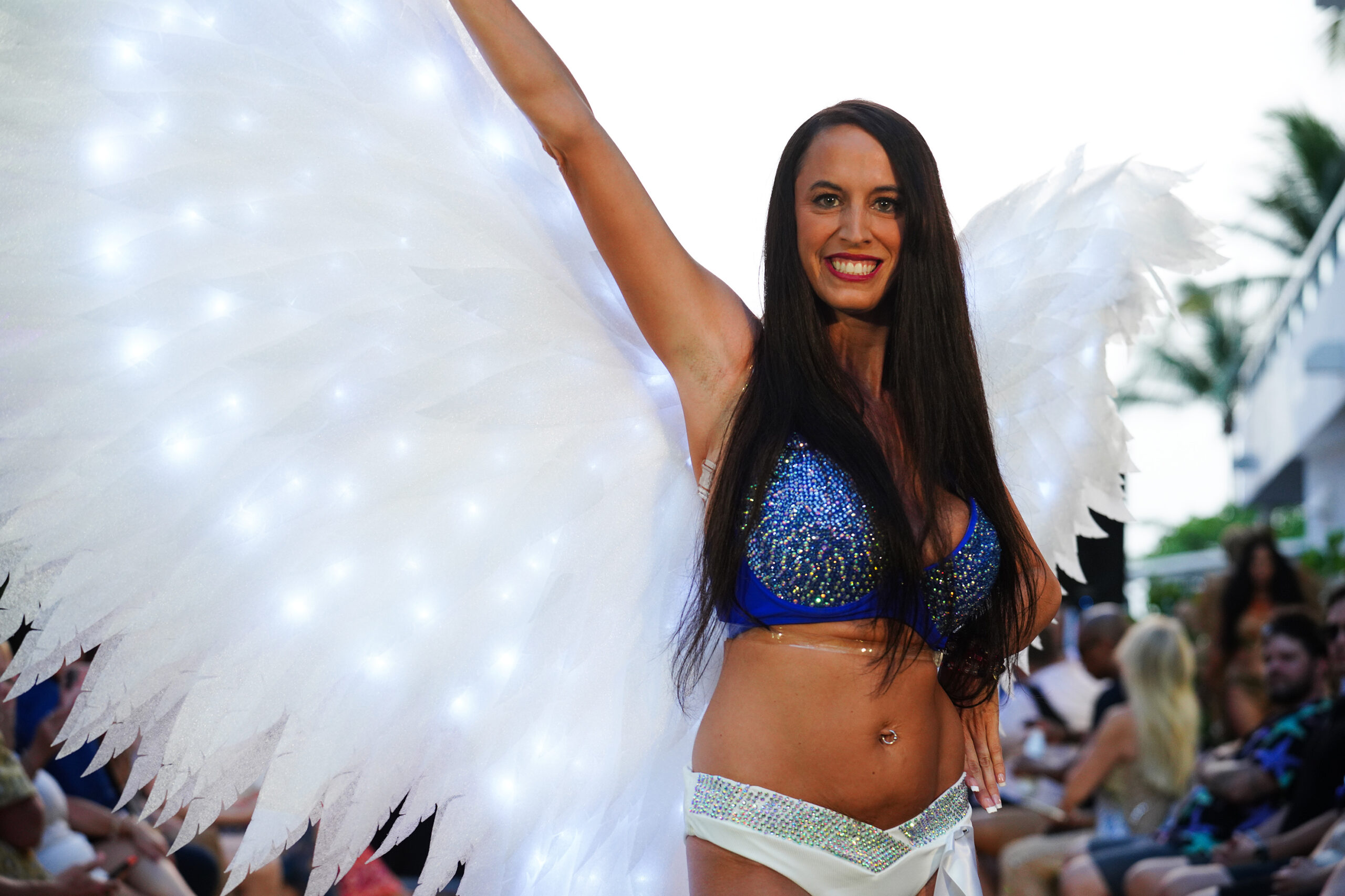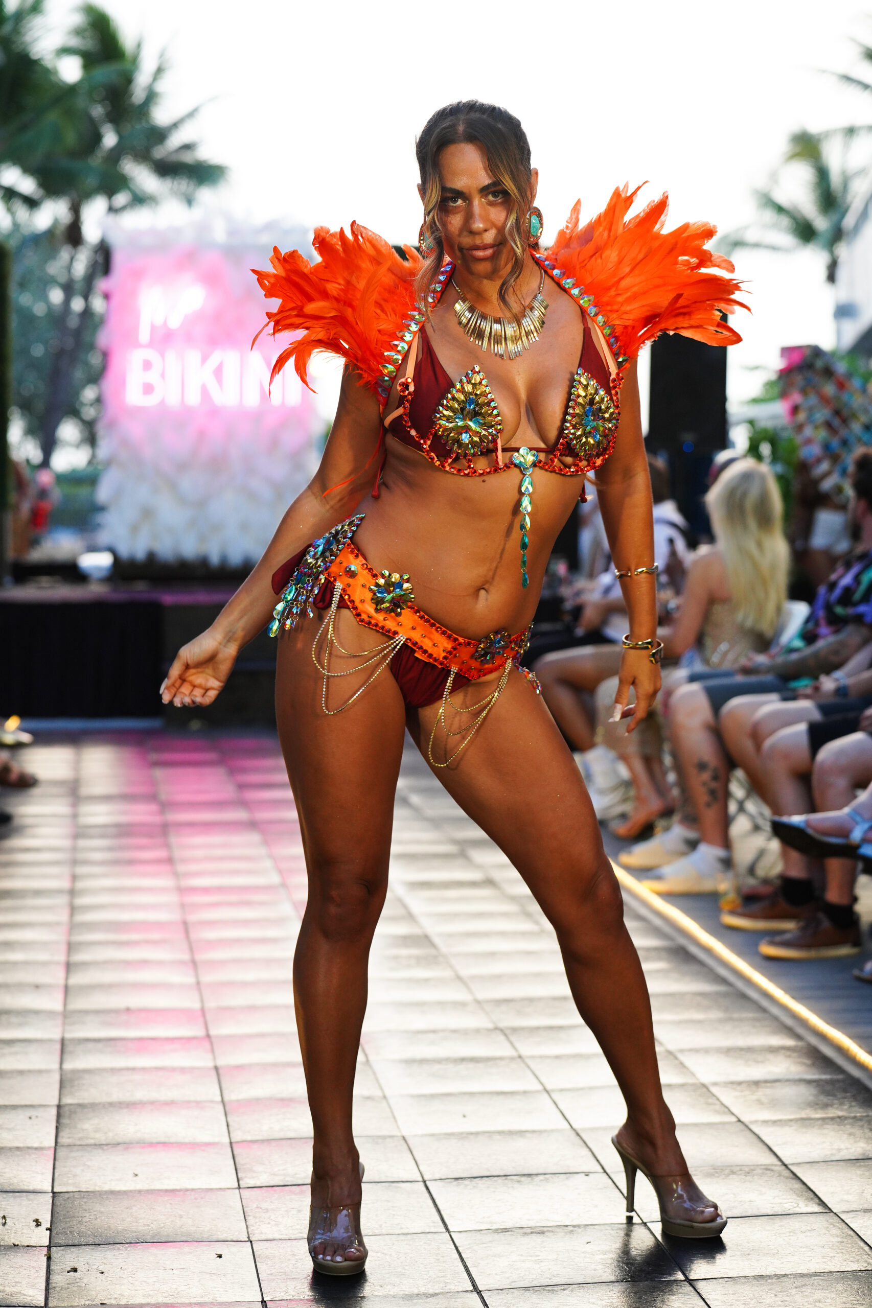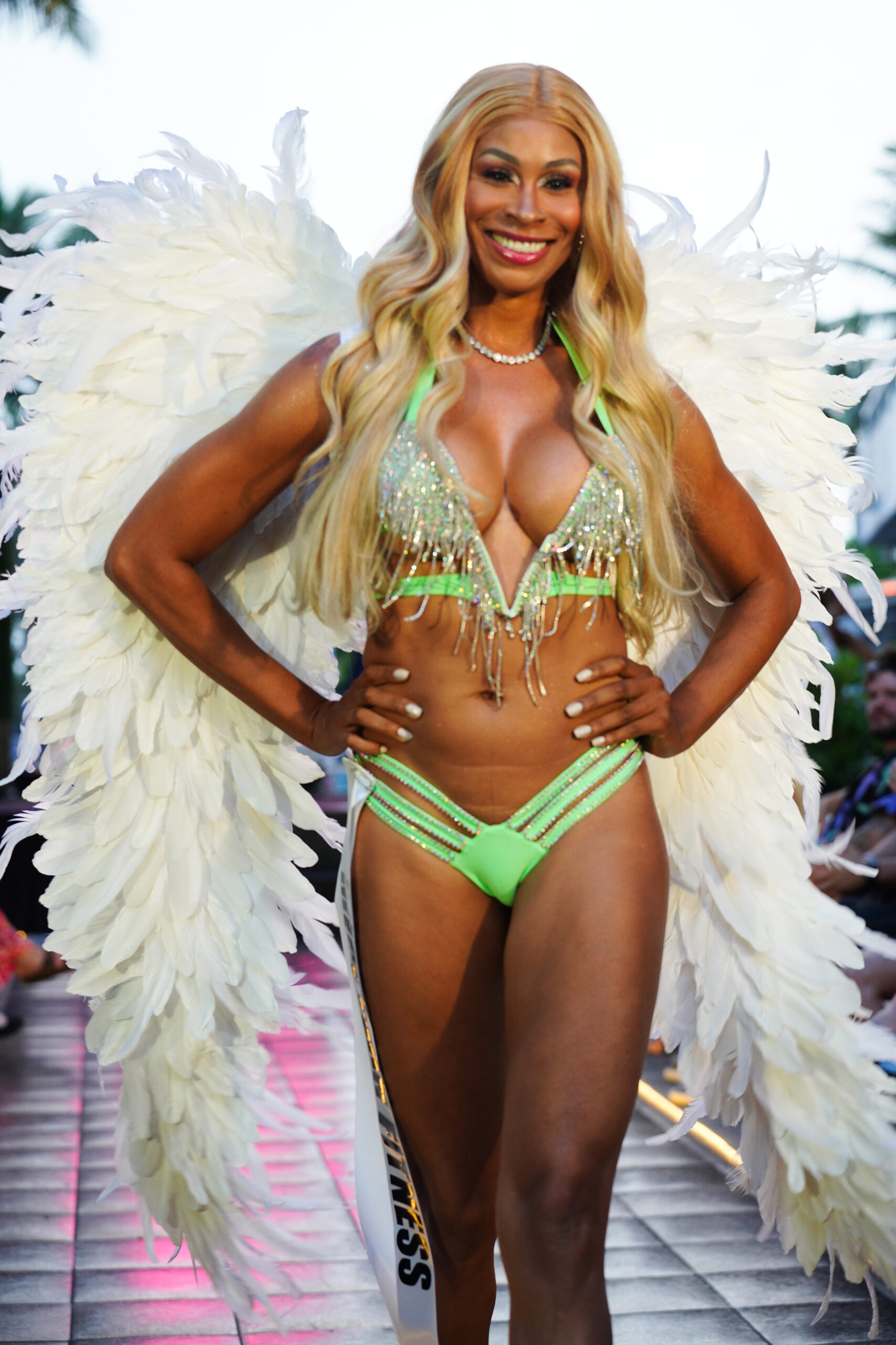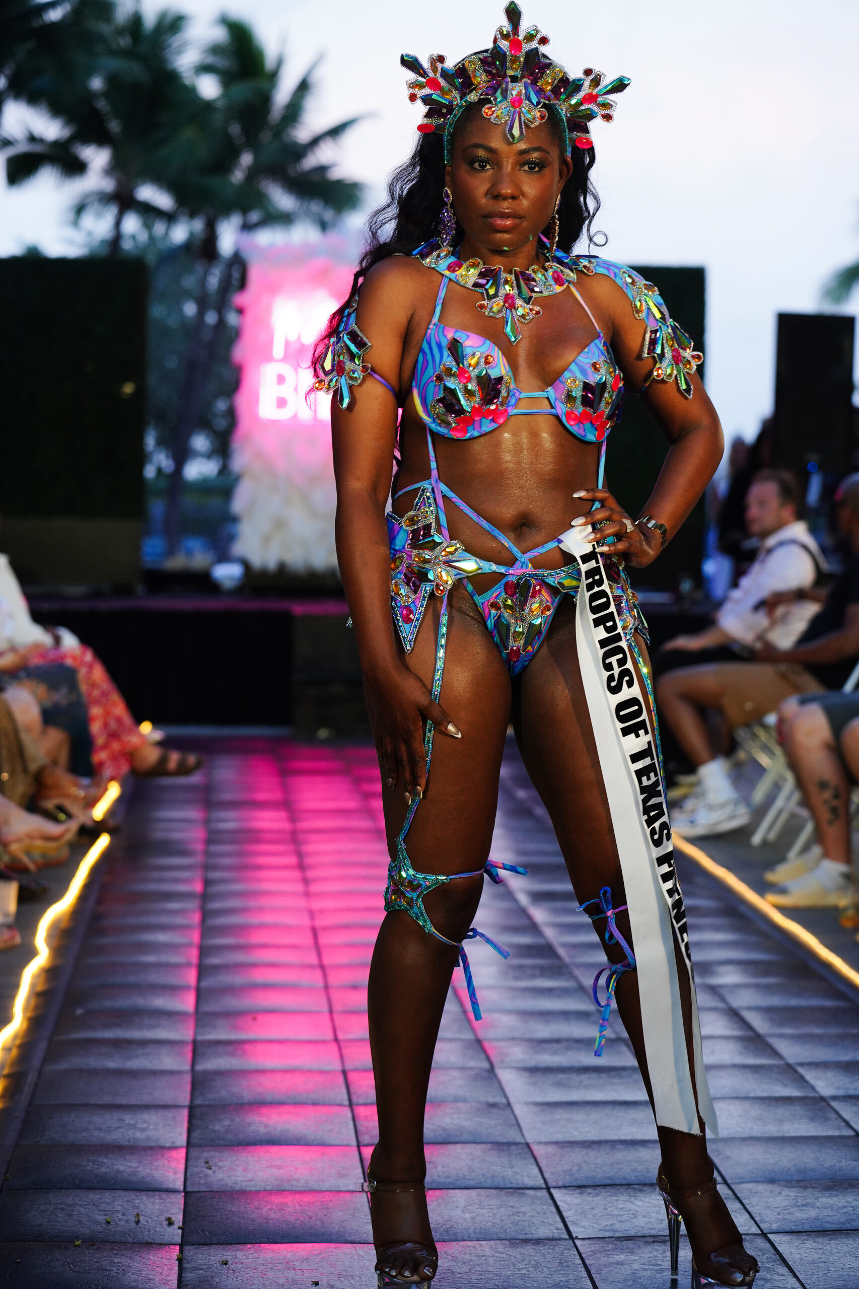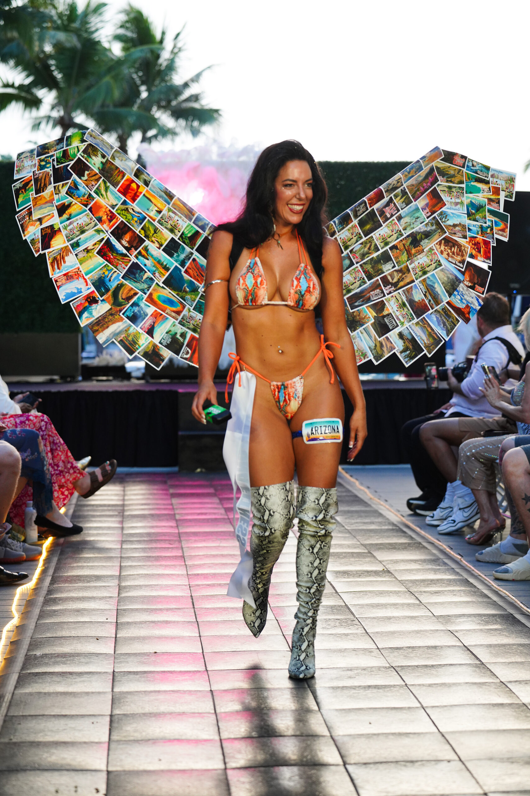 As part of the Miss Bikini US competition, contestants participate in the fantasy swimwear category.