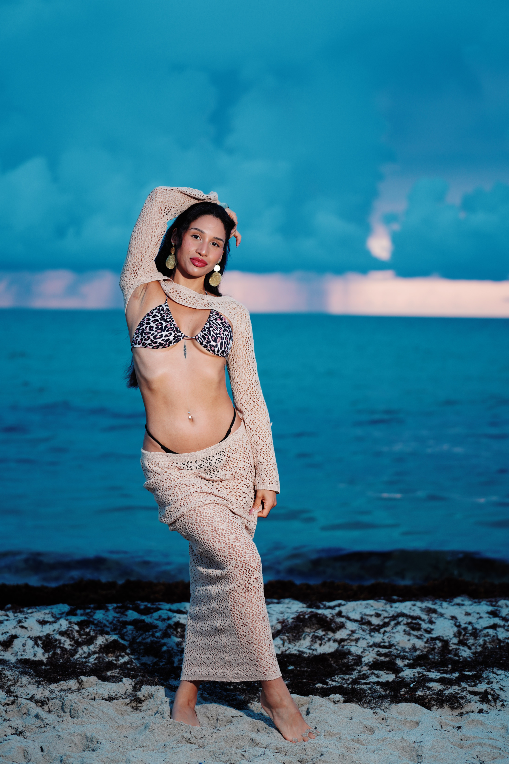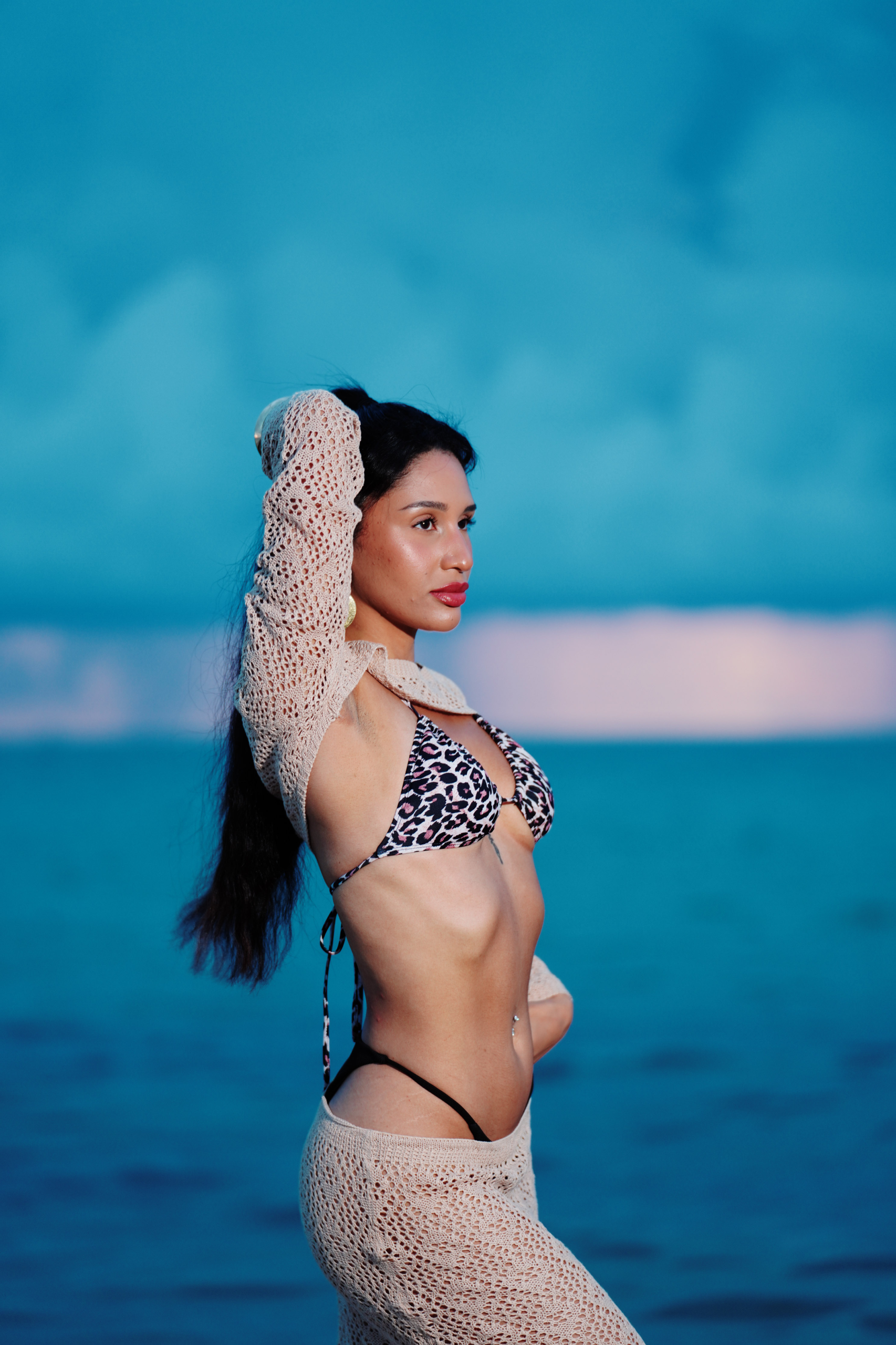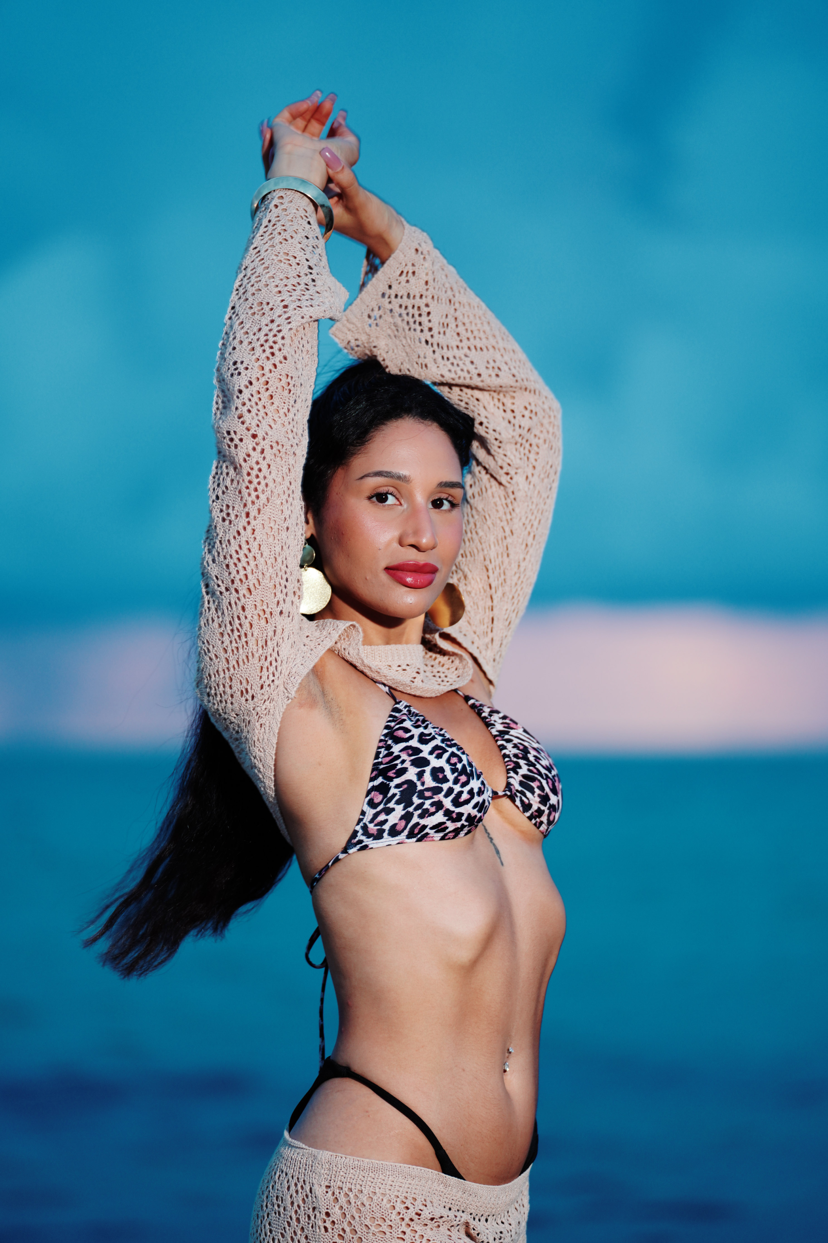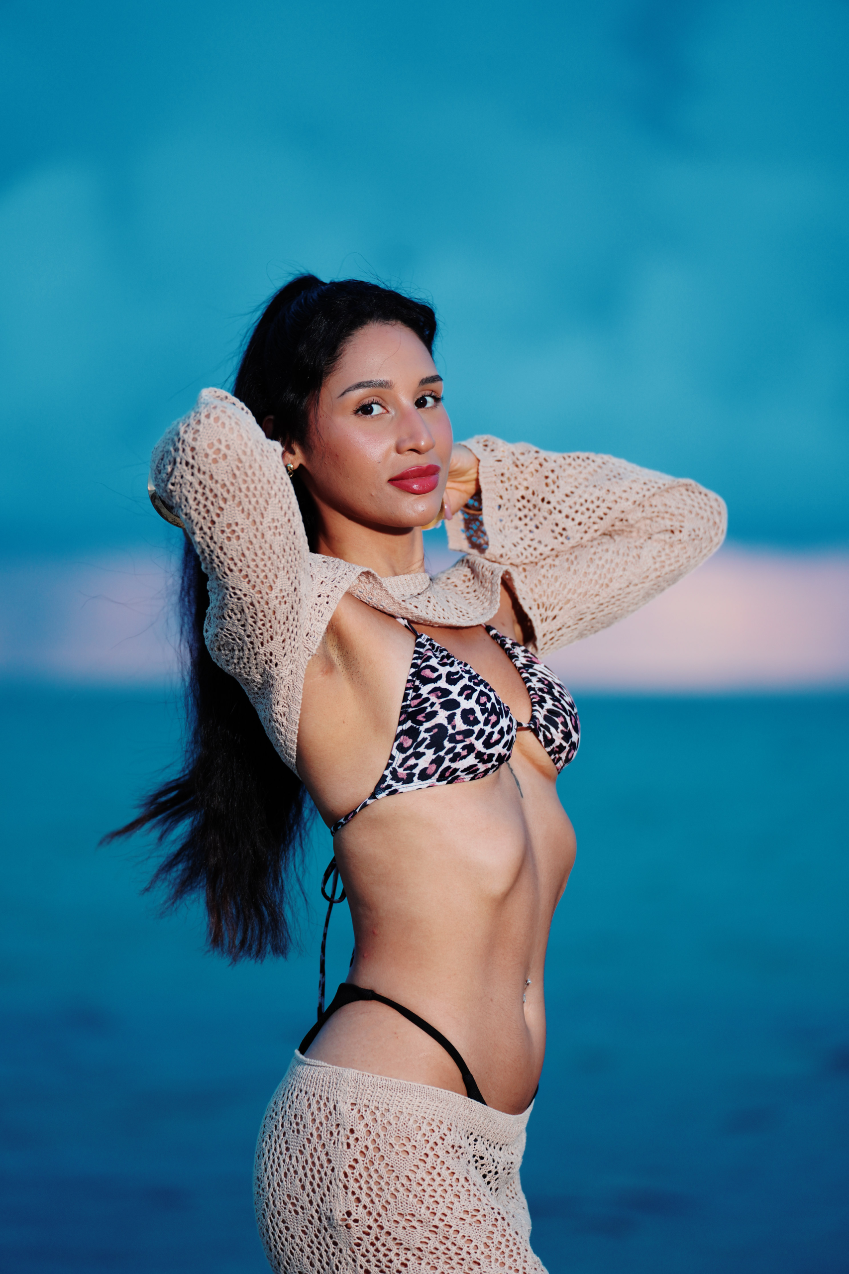 Kaleya Blake, who was competing as Miss Bikini Golden Alchemy Model at Miss Bikini US, stretches toward the dawn in an early morning photo shoot that was part of this year’s judging process.