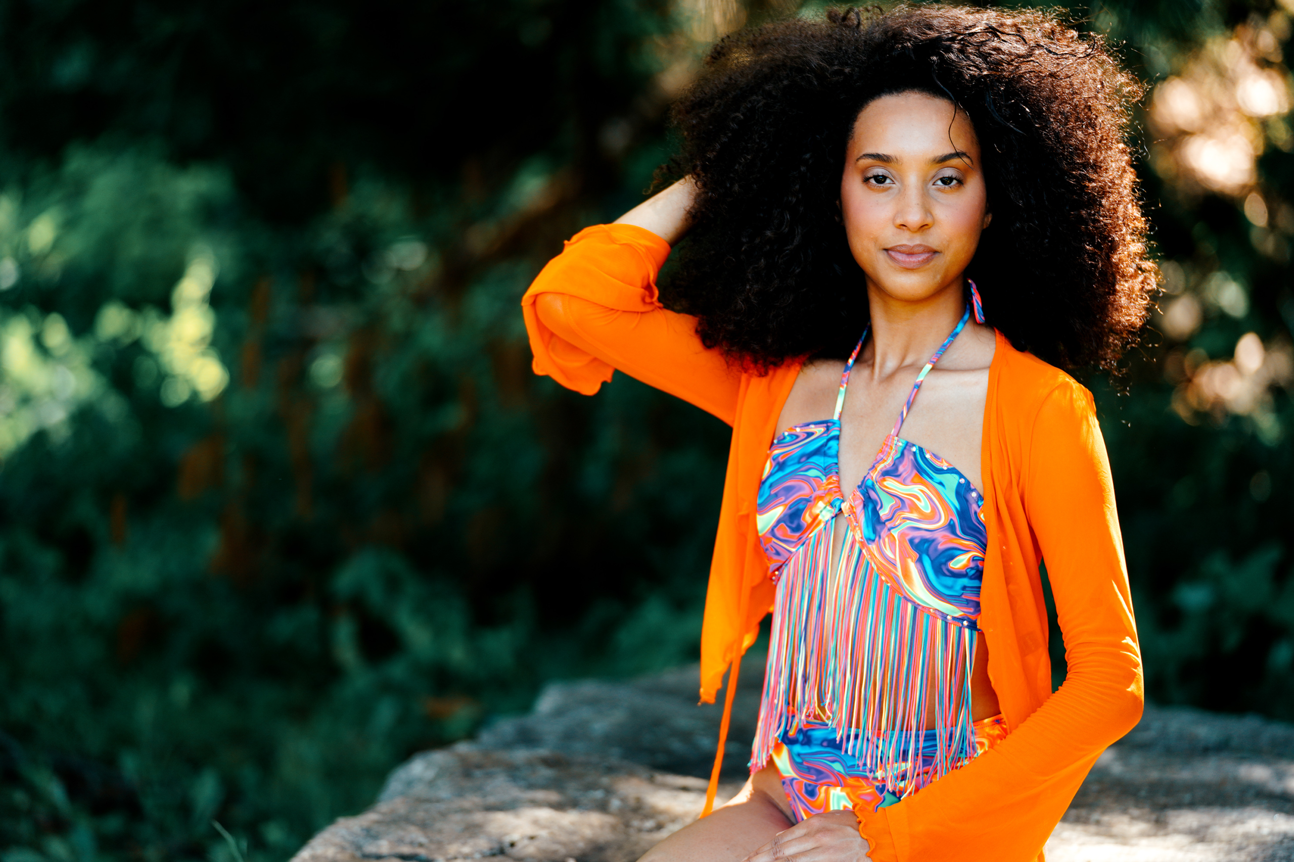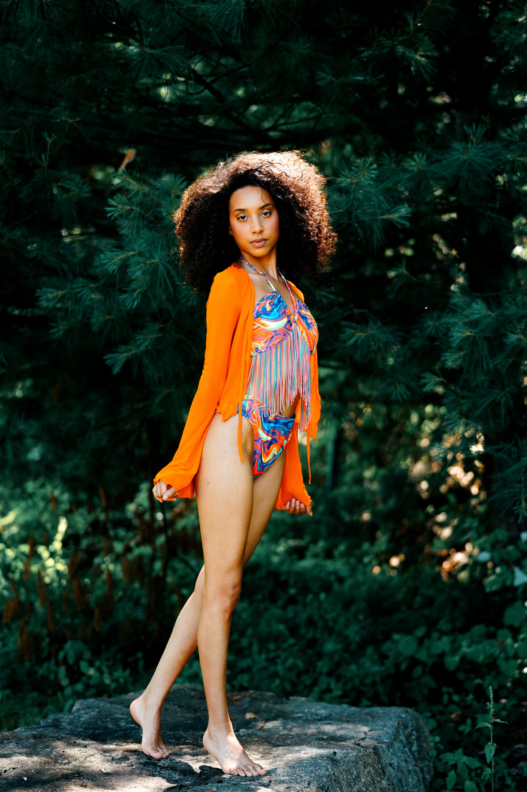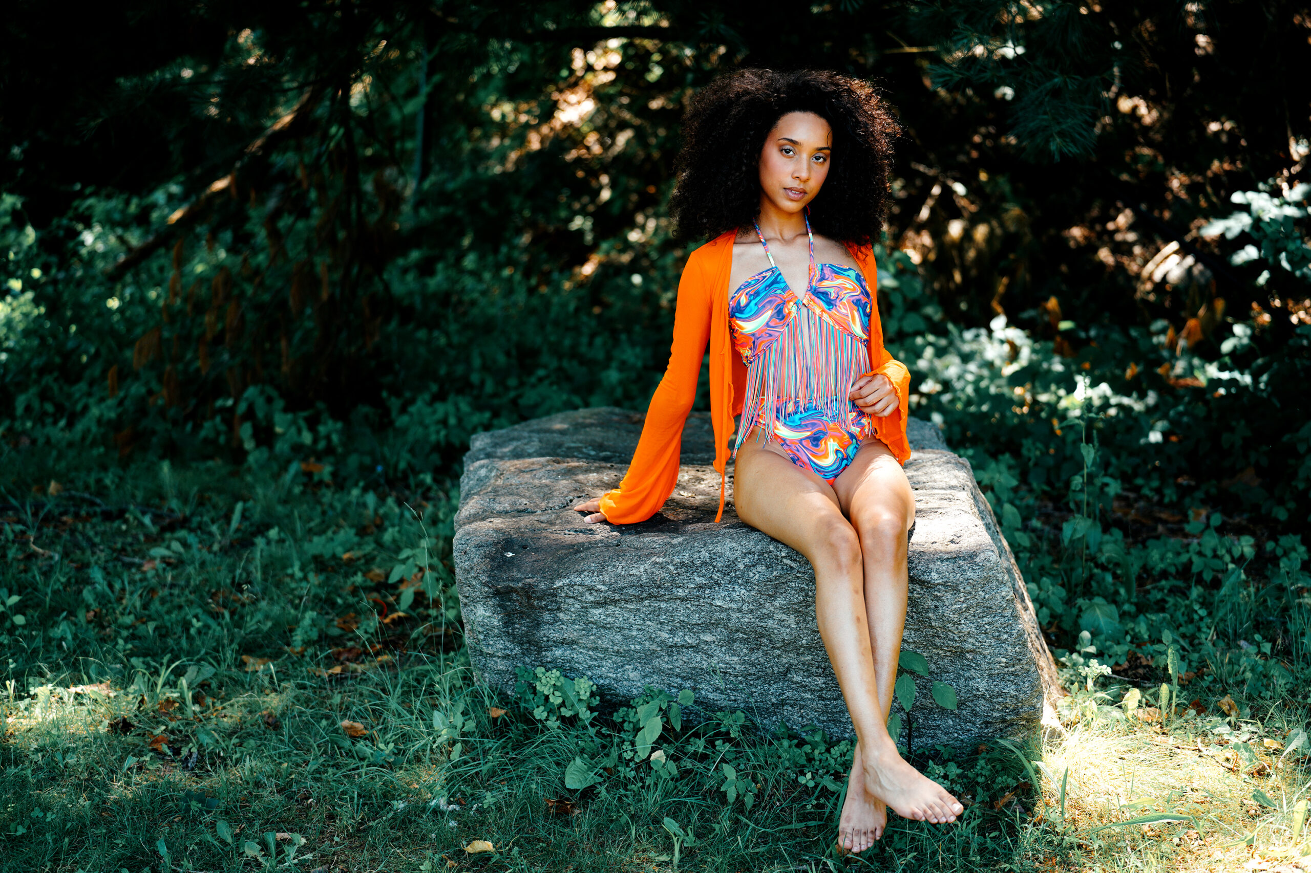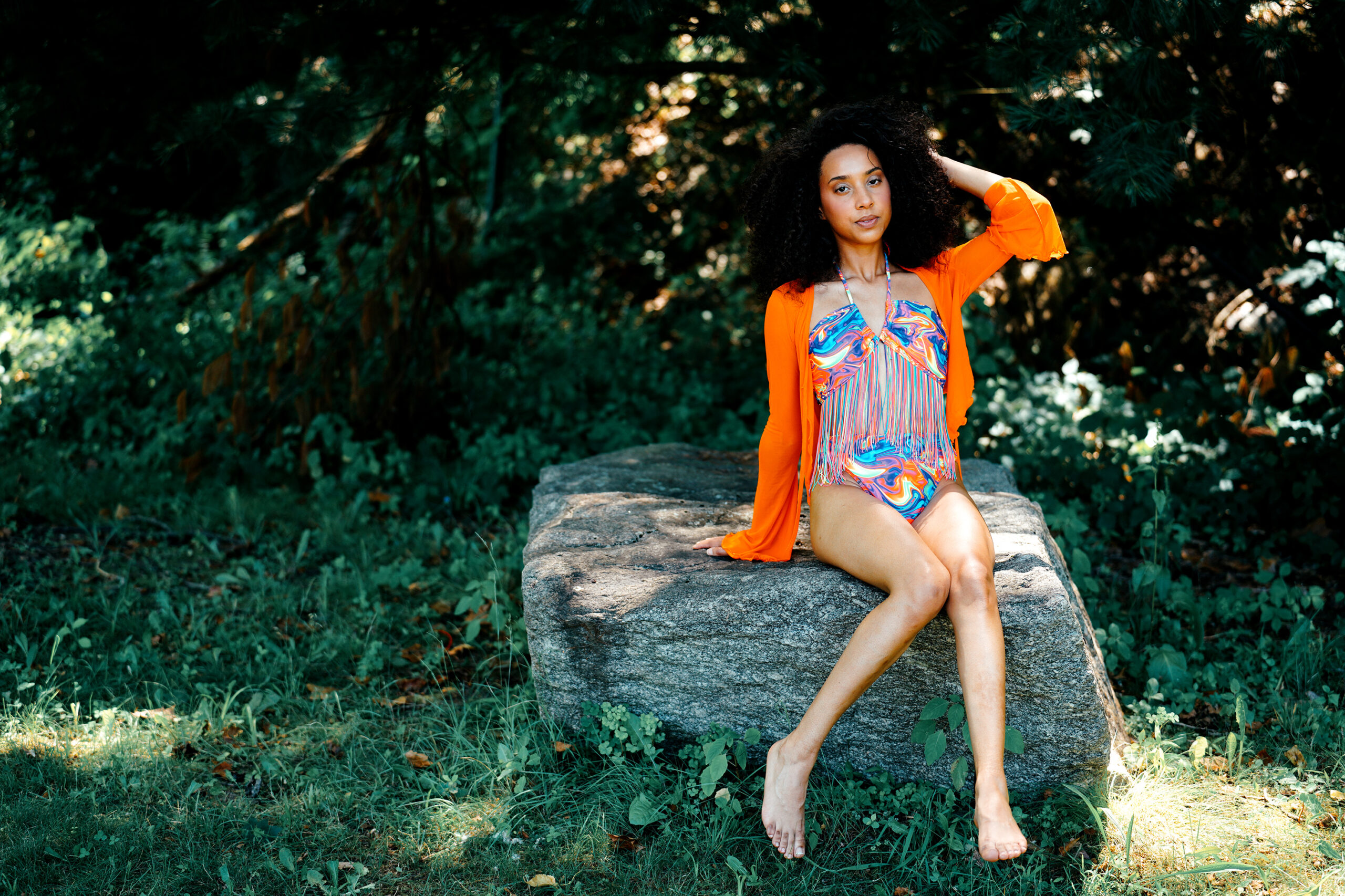 The current Miss Bikini Northeast Mylin Bennett poses in a fashion editorial wearing resortwear from Connecticut brand JMar.