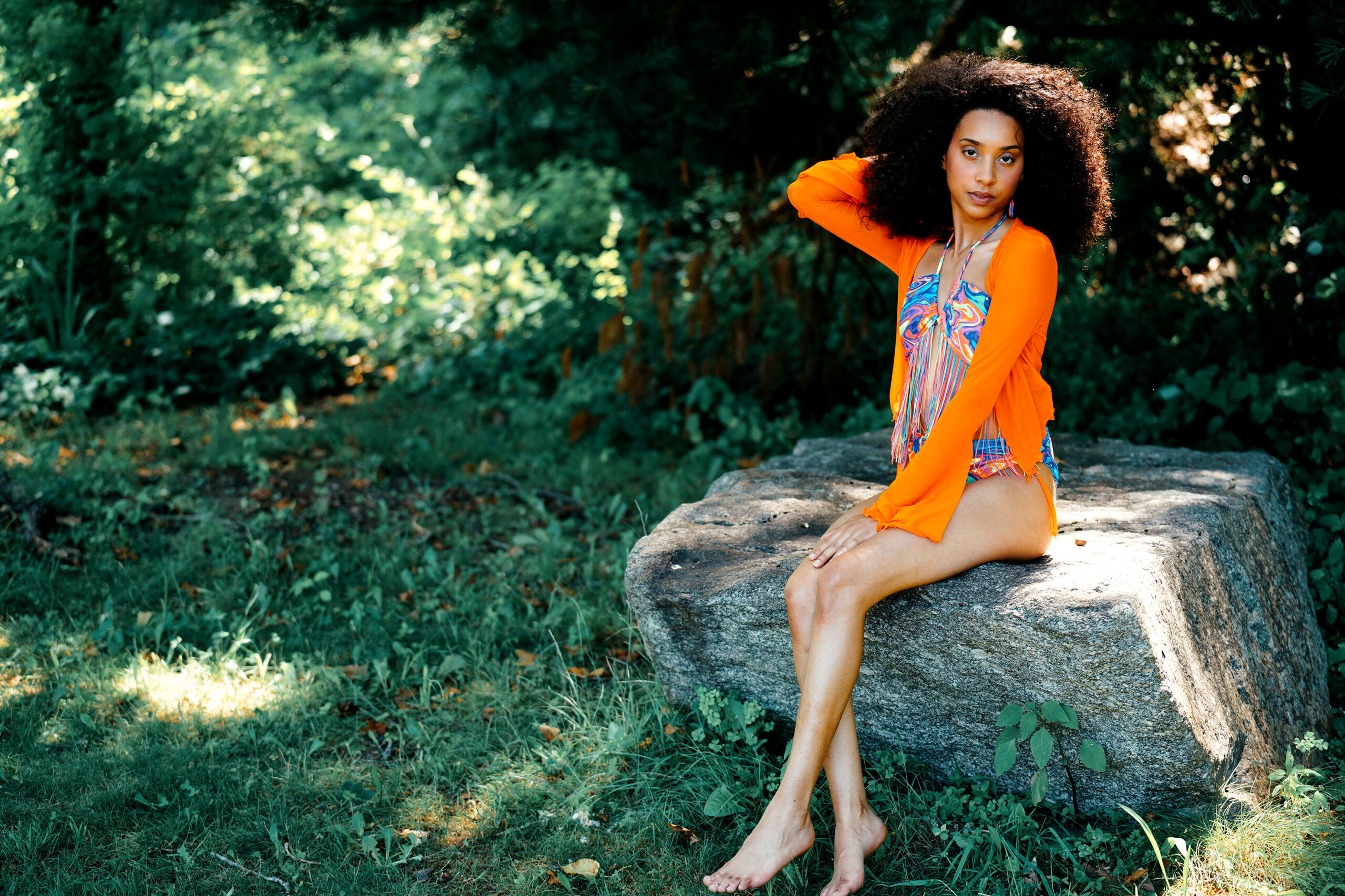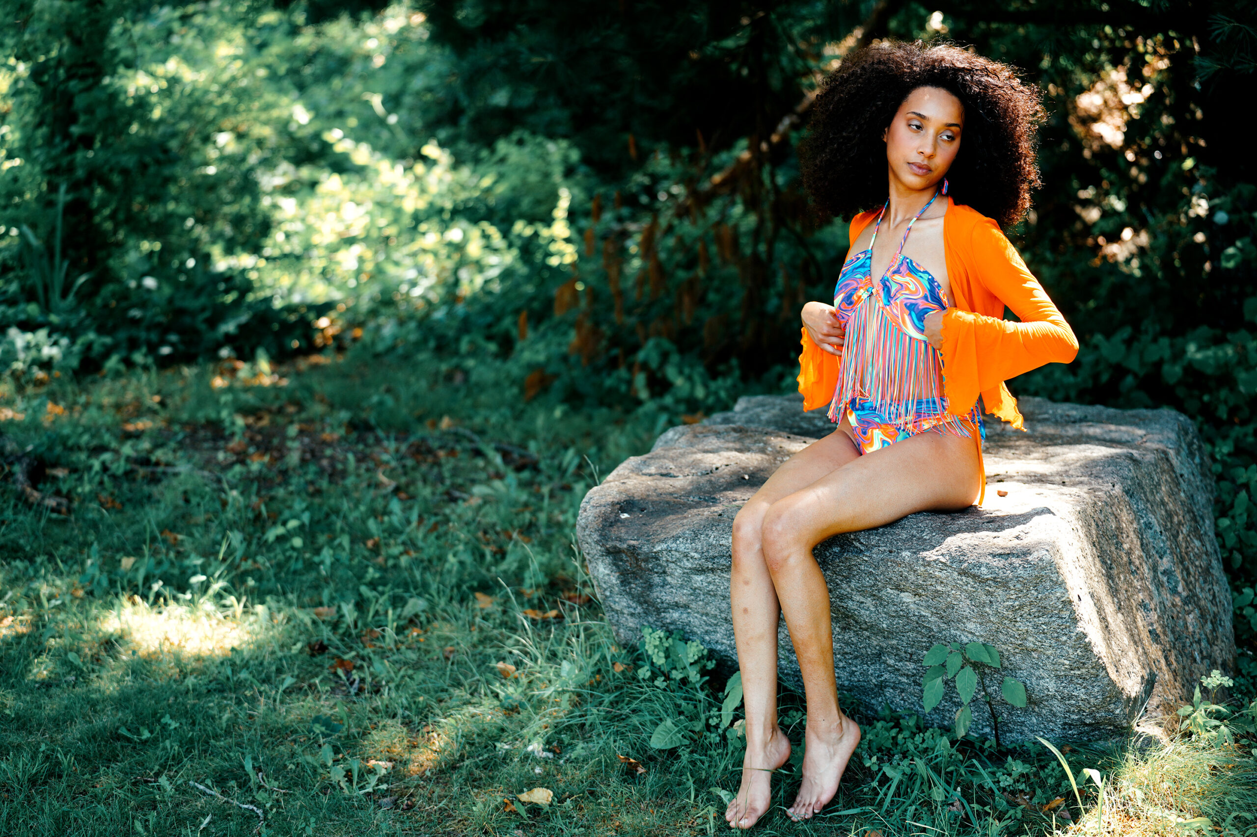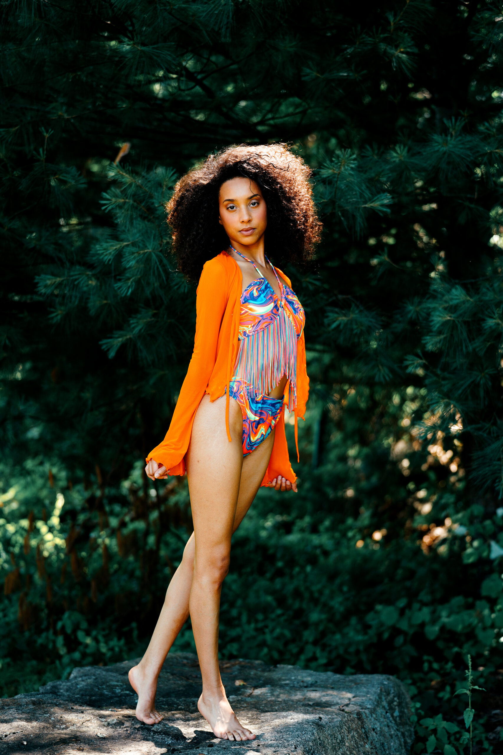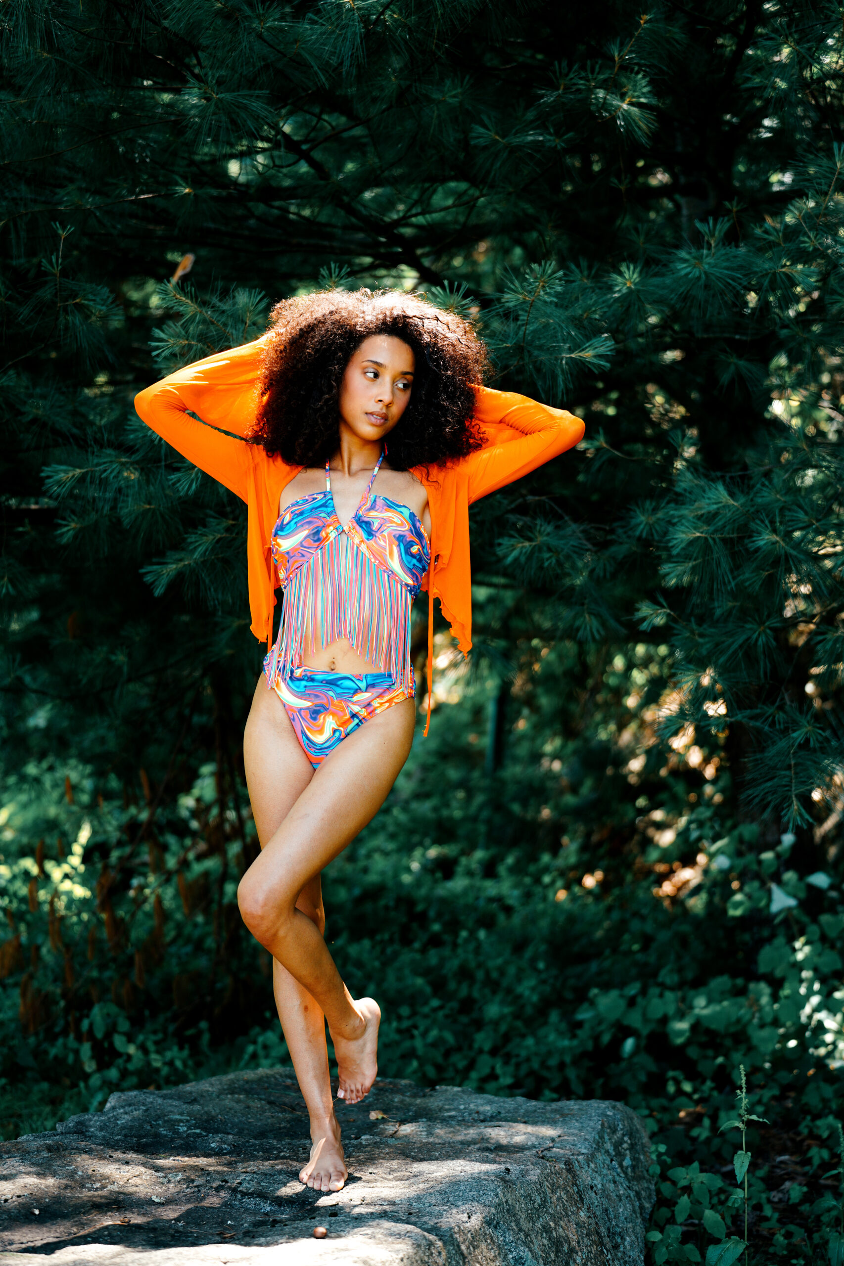 The current Miss Bikini Northeast Mylin Bennett poses in a fashion editorial wearing resortwear from Connecticut brand JMar.
