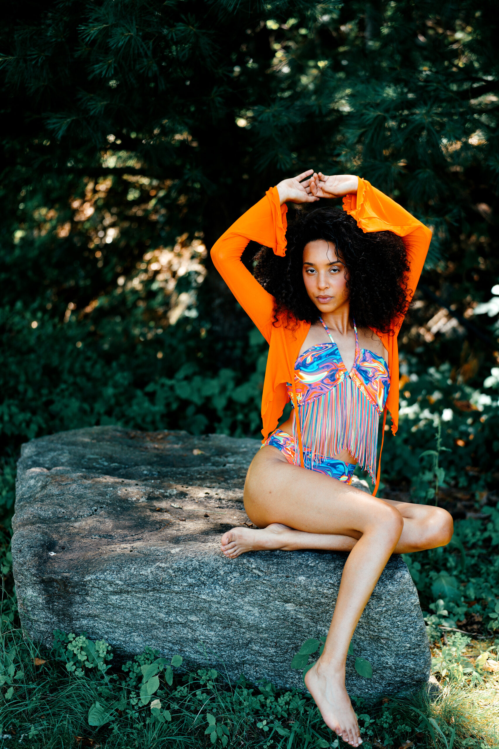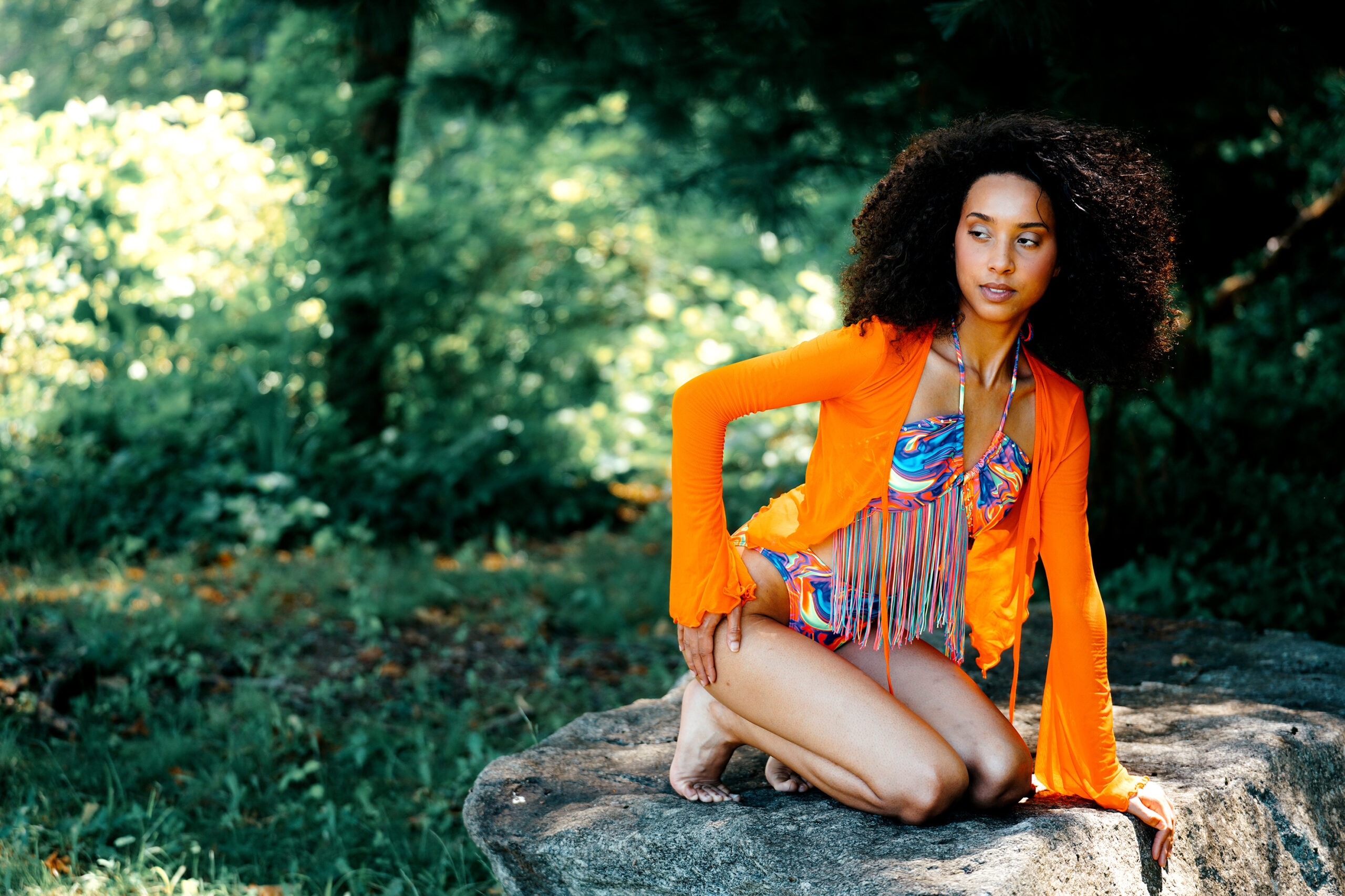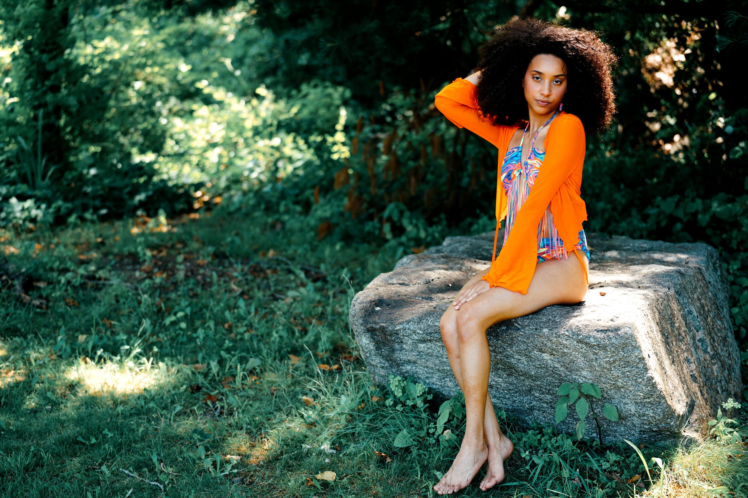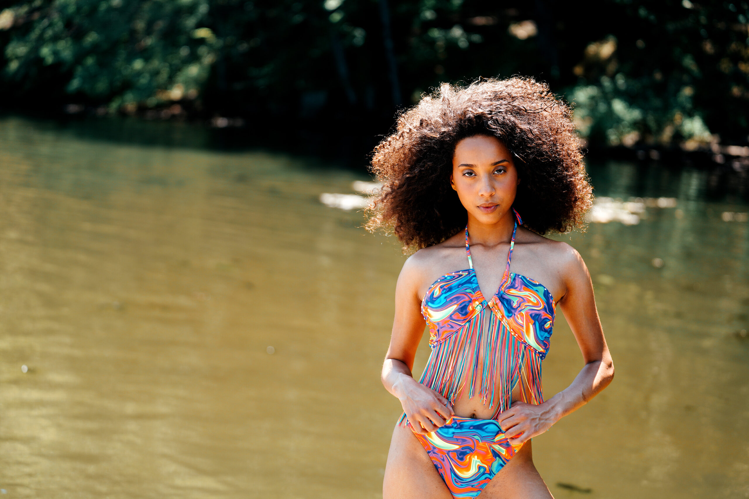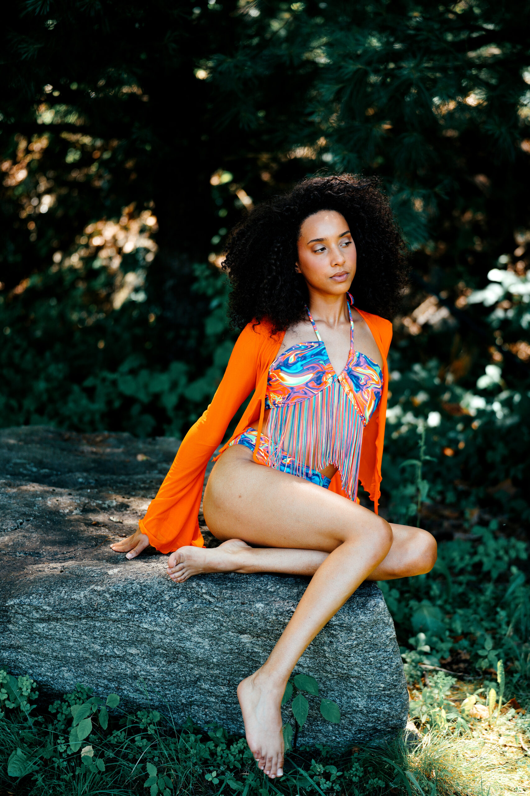The current Miss Bikini Northeast Mylin Bennett poses in a fashion editorial wearing resortwear from Connecticut brand JMar.