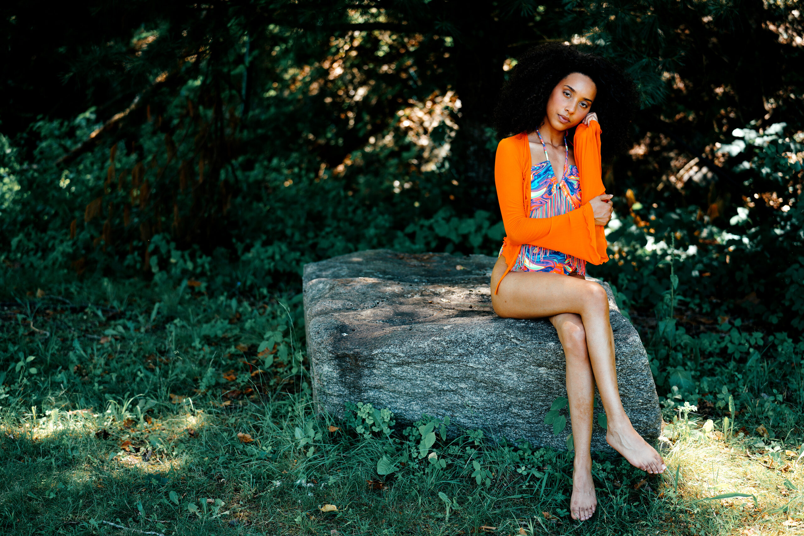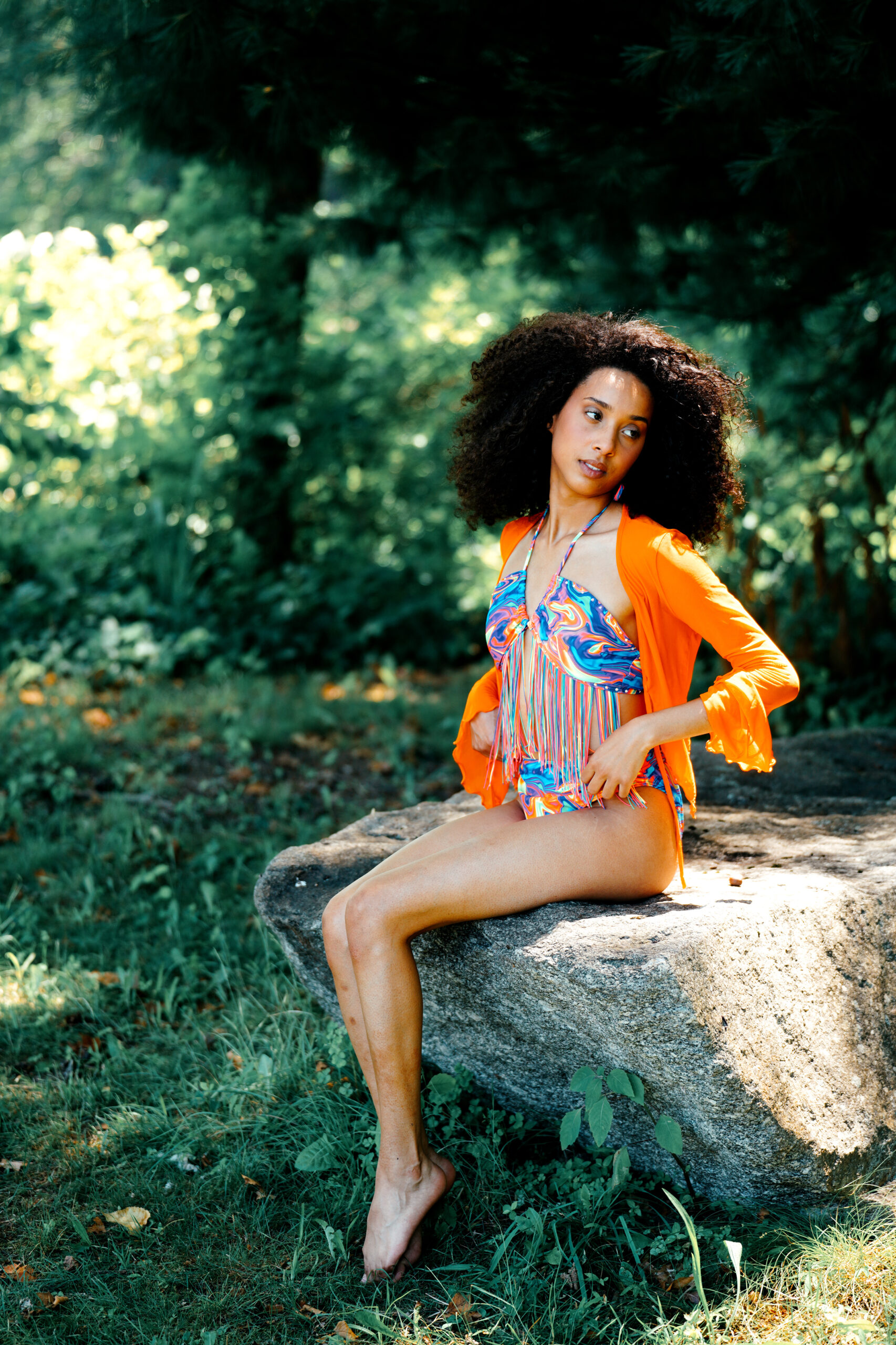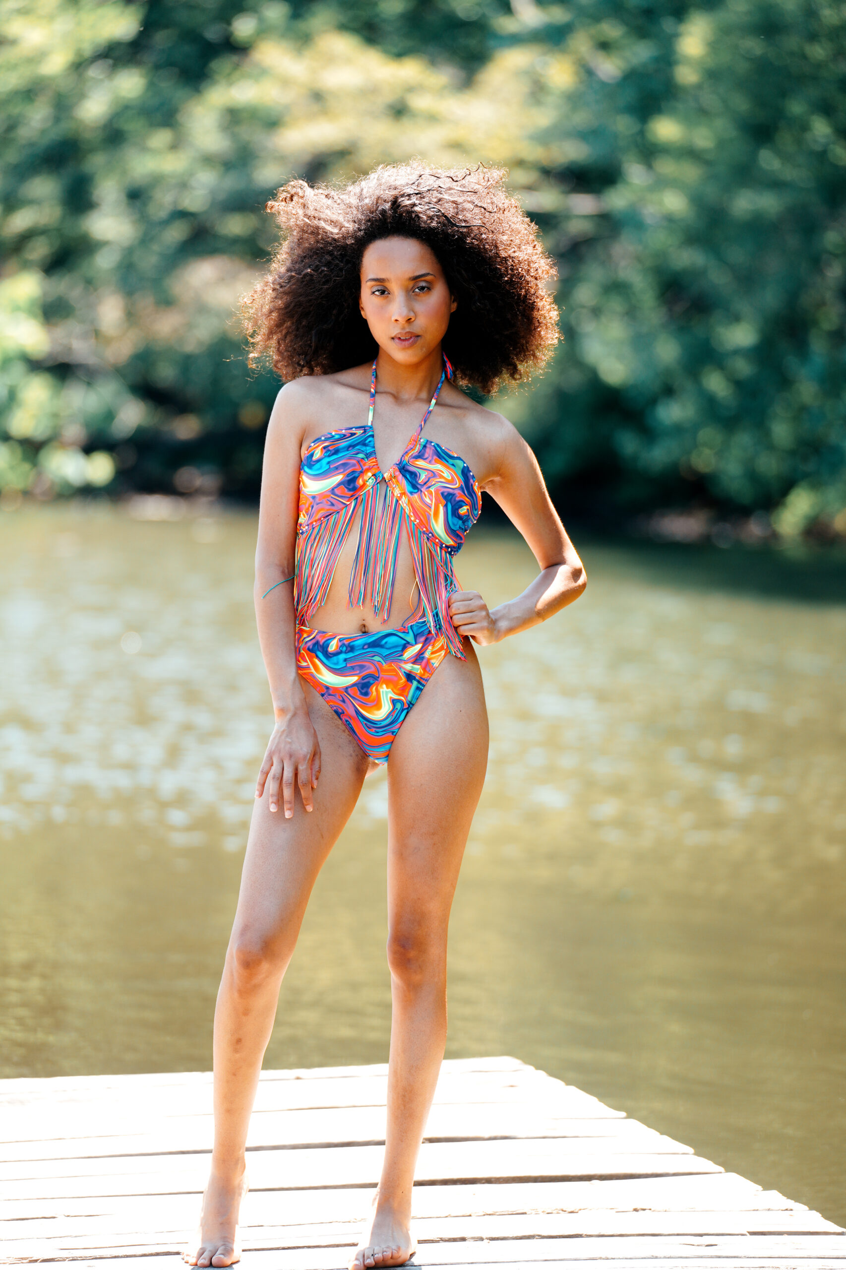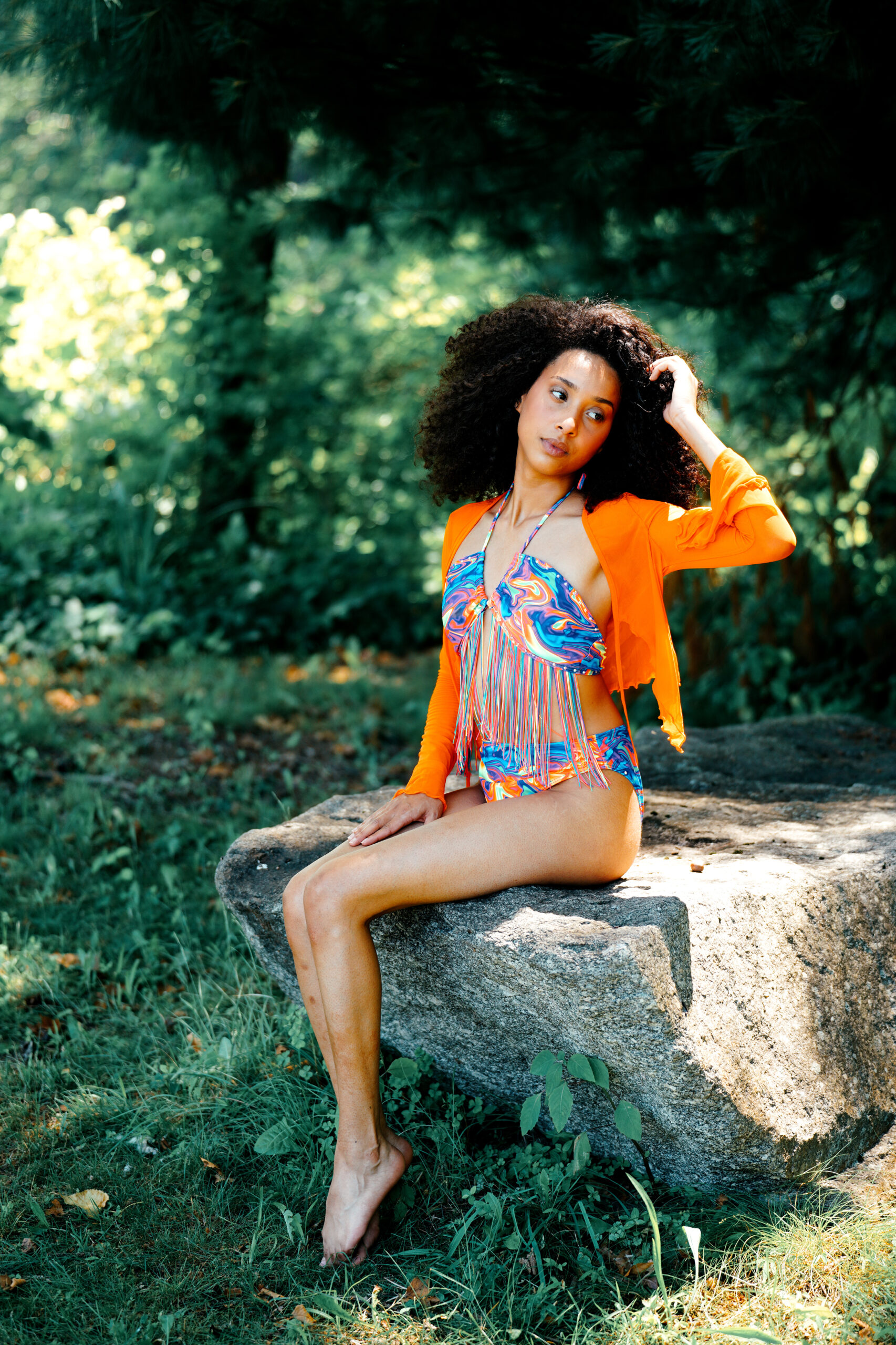 The current Miss Bikini Northeast Mylin Bennett poses in a fashion editorial wearing resortwear from Connecticut brand JMar.