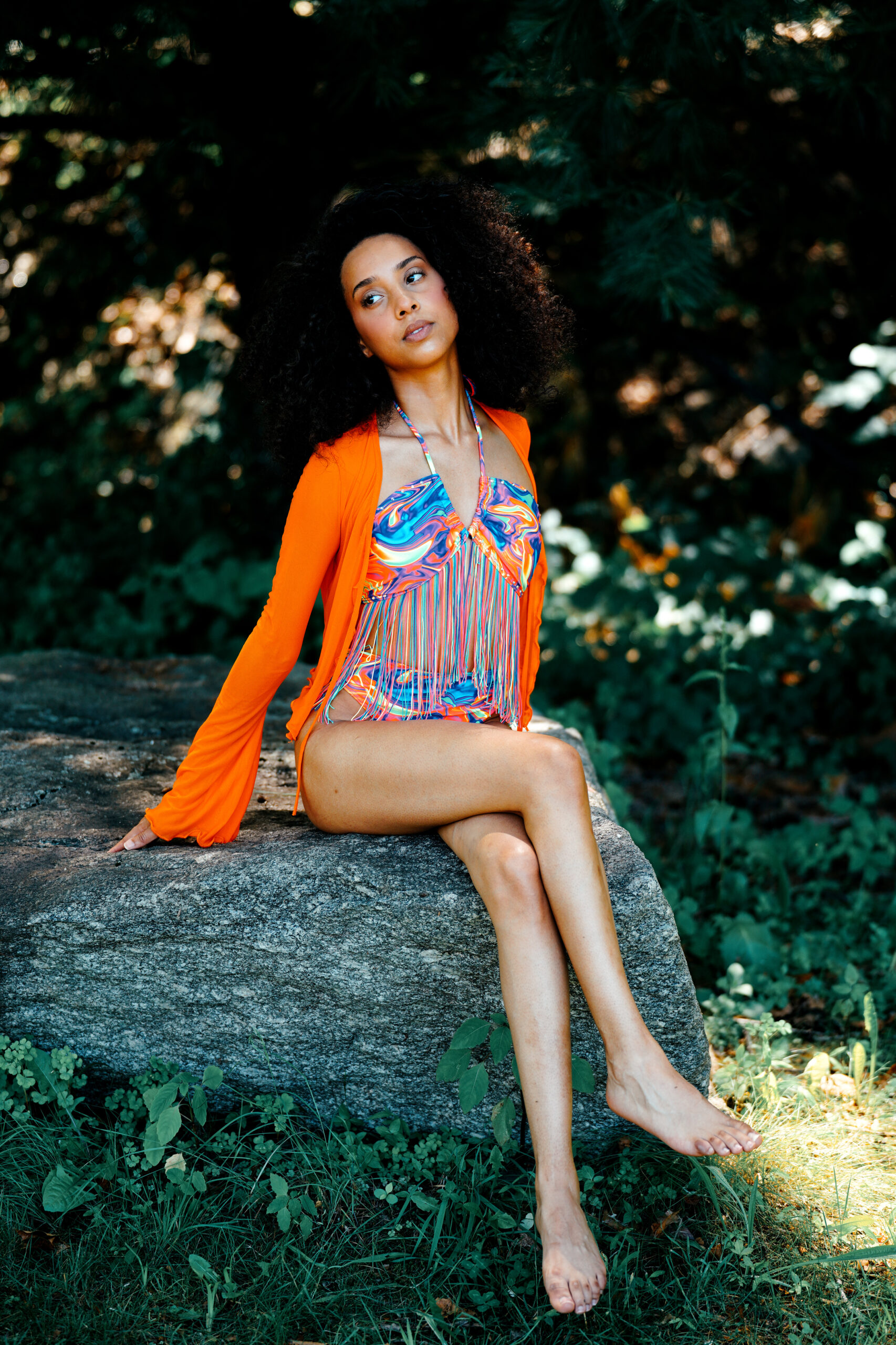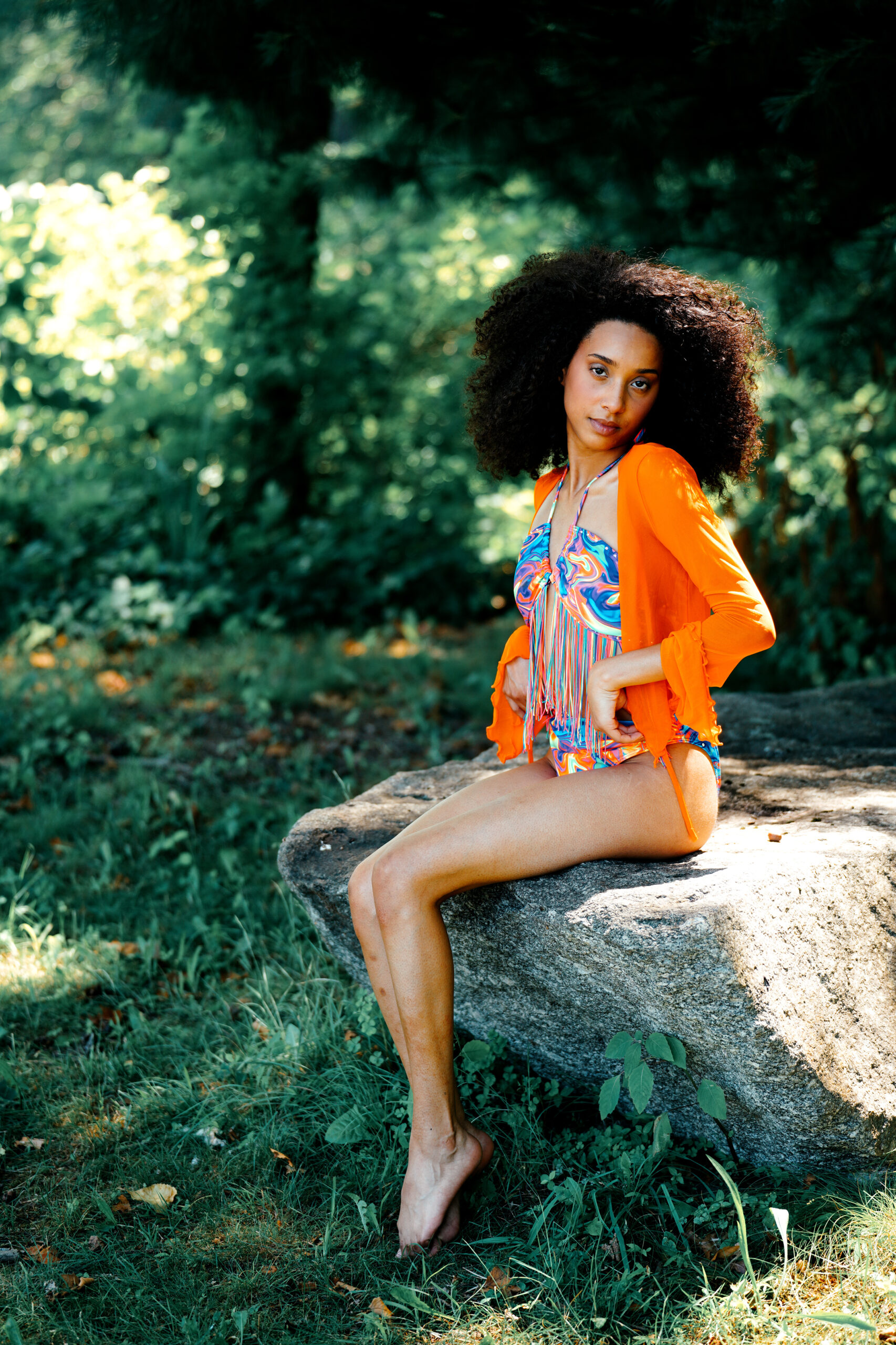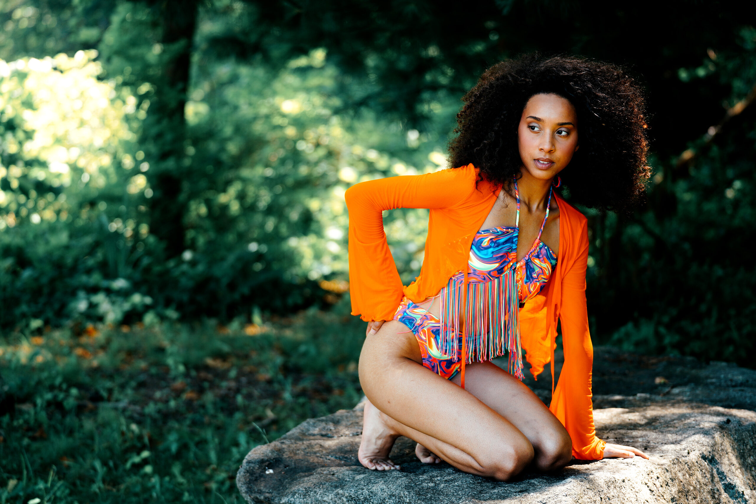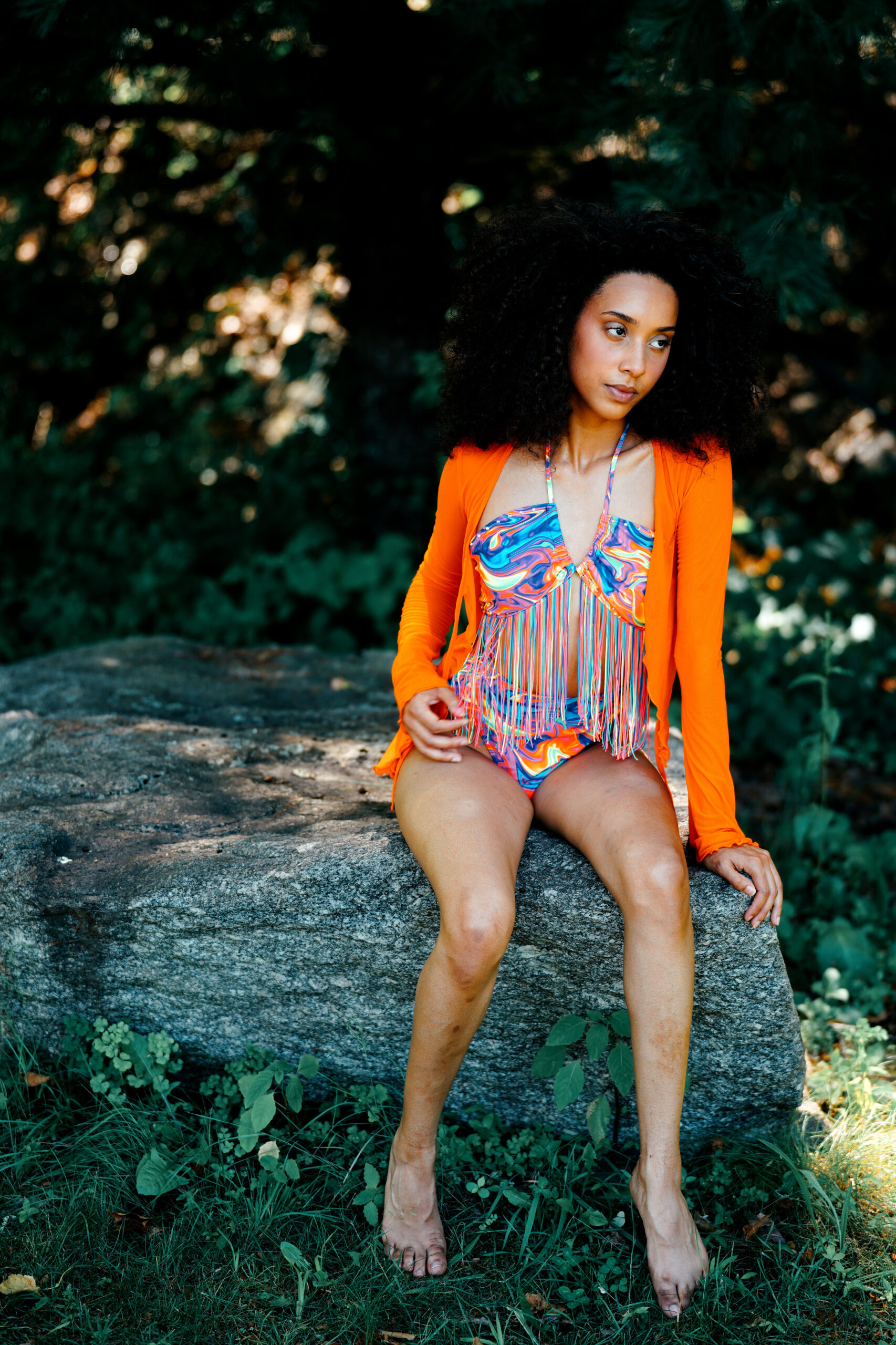 The current Miss Bikini Northeast Mylin Bennett poses in a fashion editorial wearing resortwear from Connecticut brand JMar.
