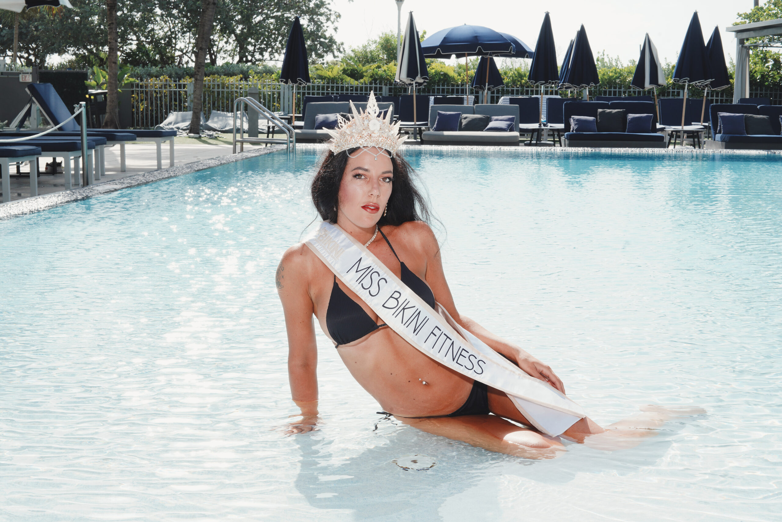 You’ve just been crowned at the Miss Bikini US competition the night before as the new Miss Bikini United States, Miss Bikini Model and Miss Bikini Fitness. What do you do when the morning comes rushing in through your hotel window? You jump outside to pose for official portraits poolside in your swimsuit.