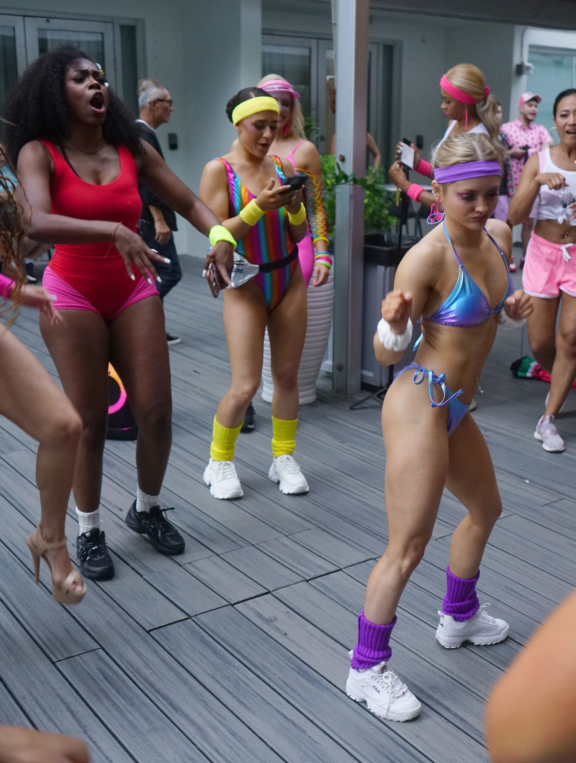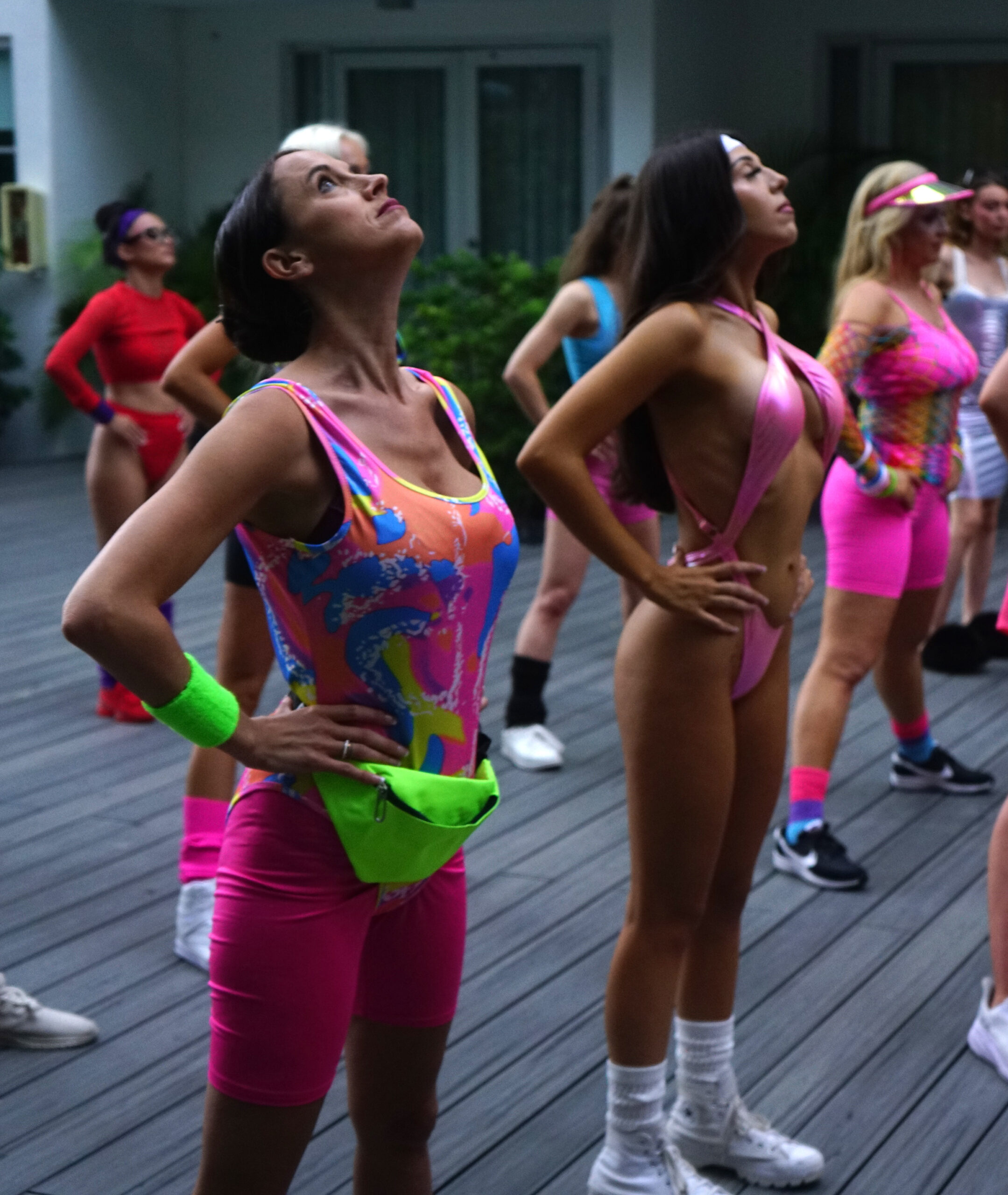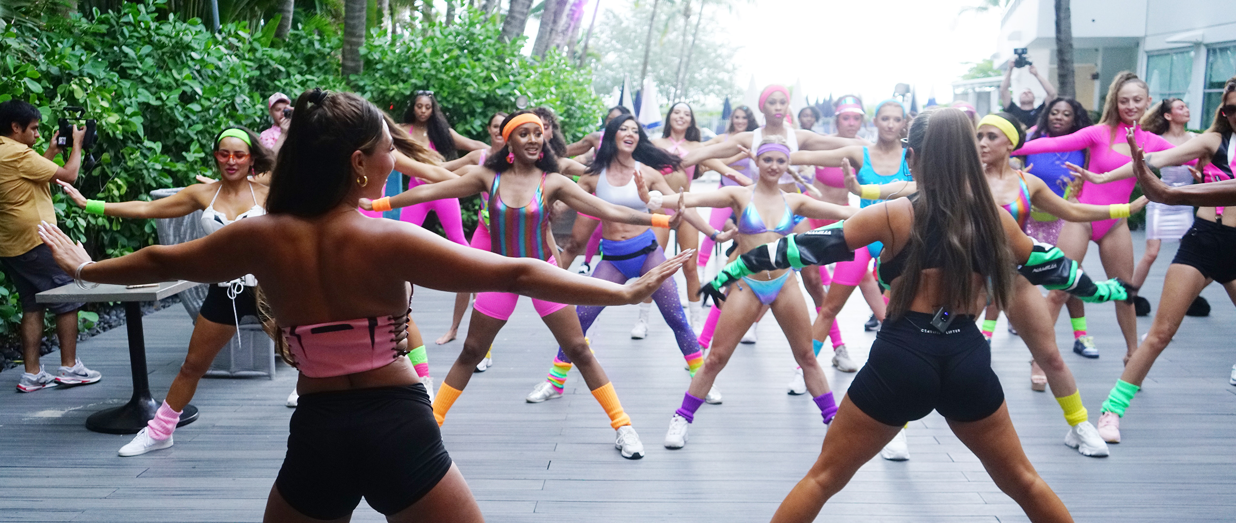 The contestants of Miss Bikini US had their flashback moment during from the annual competition by recalling the era of fluorescent colors, aerobic and “Flashdance” at the events annual 1980s dance party and exercise class.