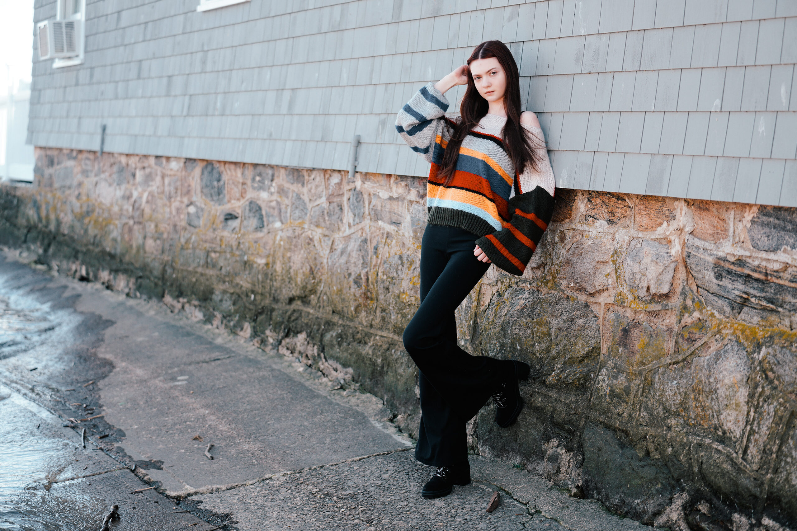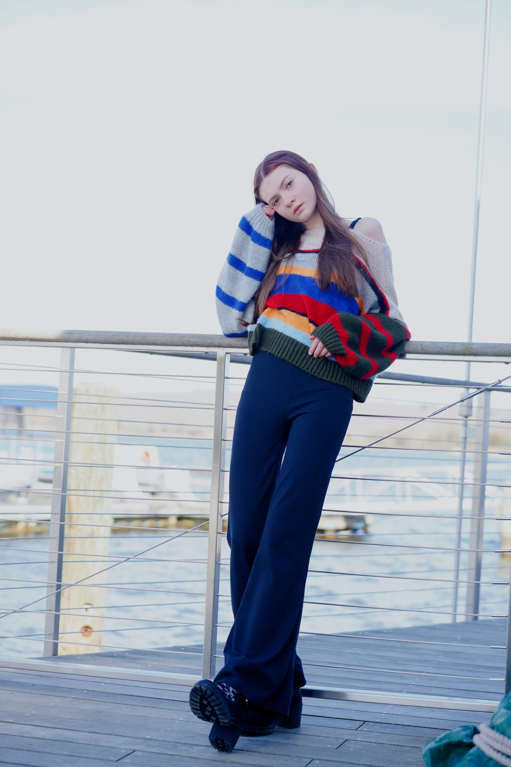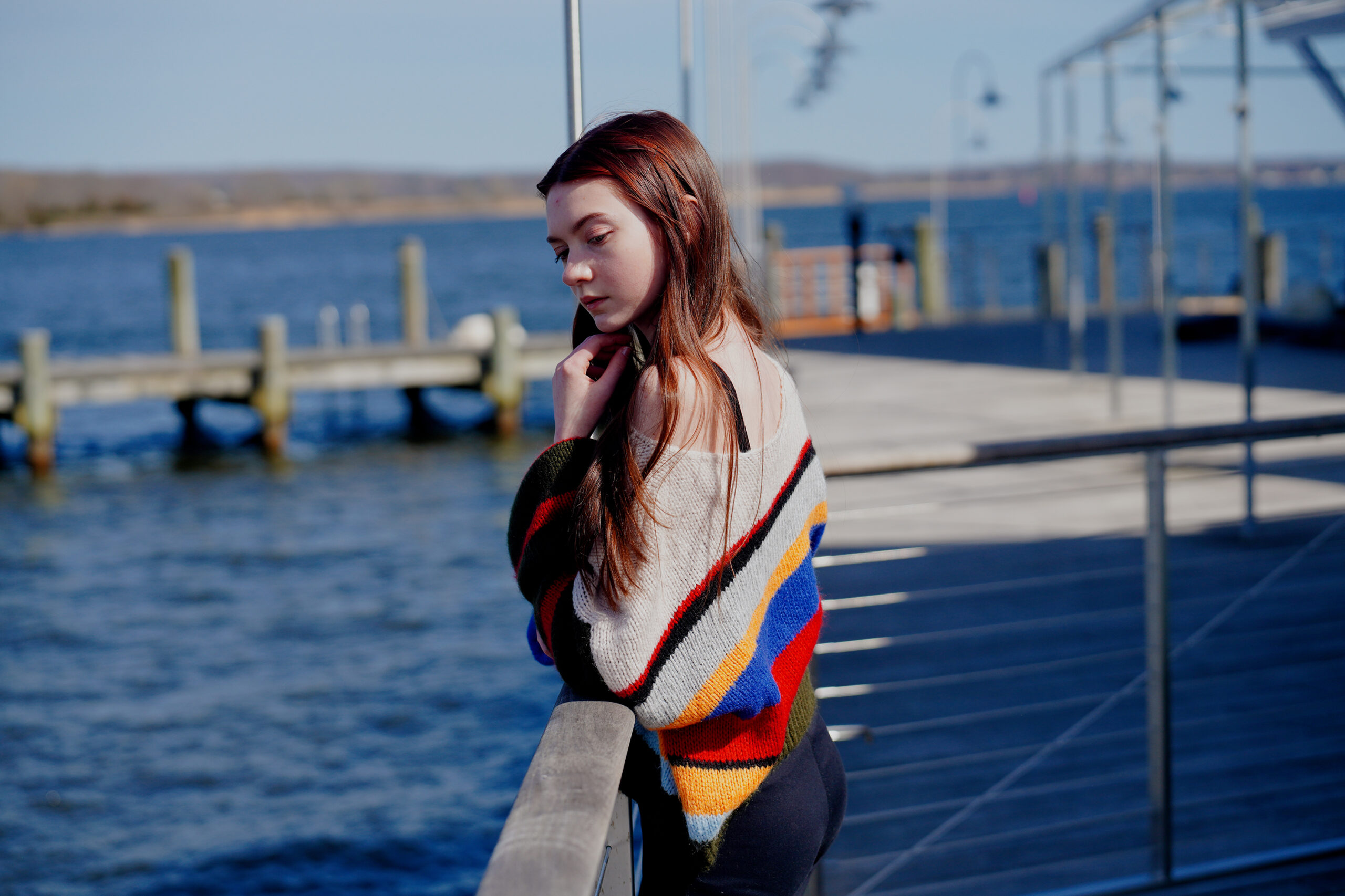 Model Katalina Litchfield basks in the fresh air along the Connecticut River in the quaint New England town of Essex.