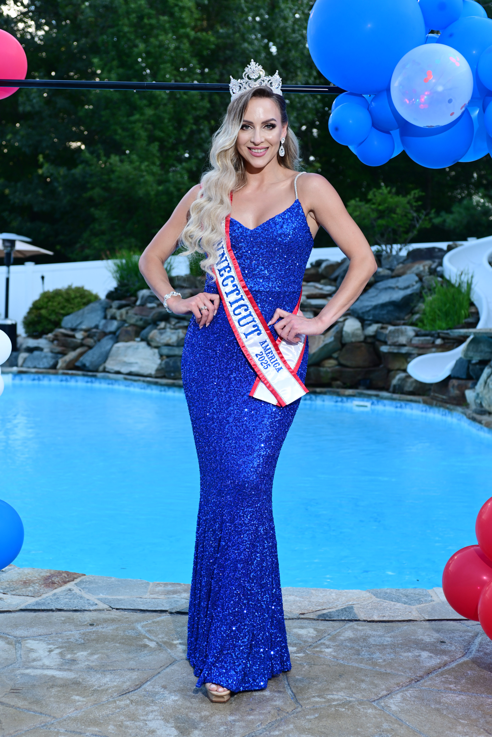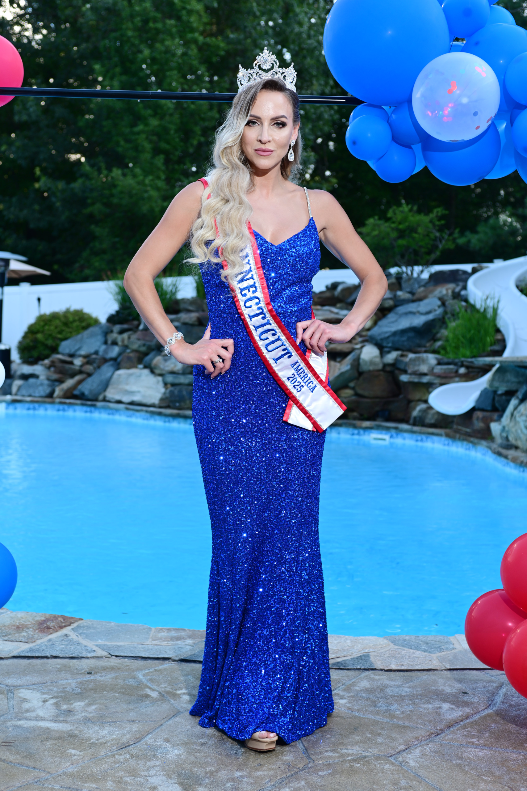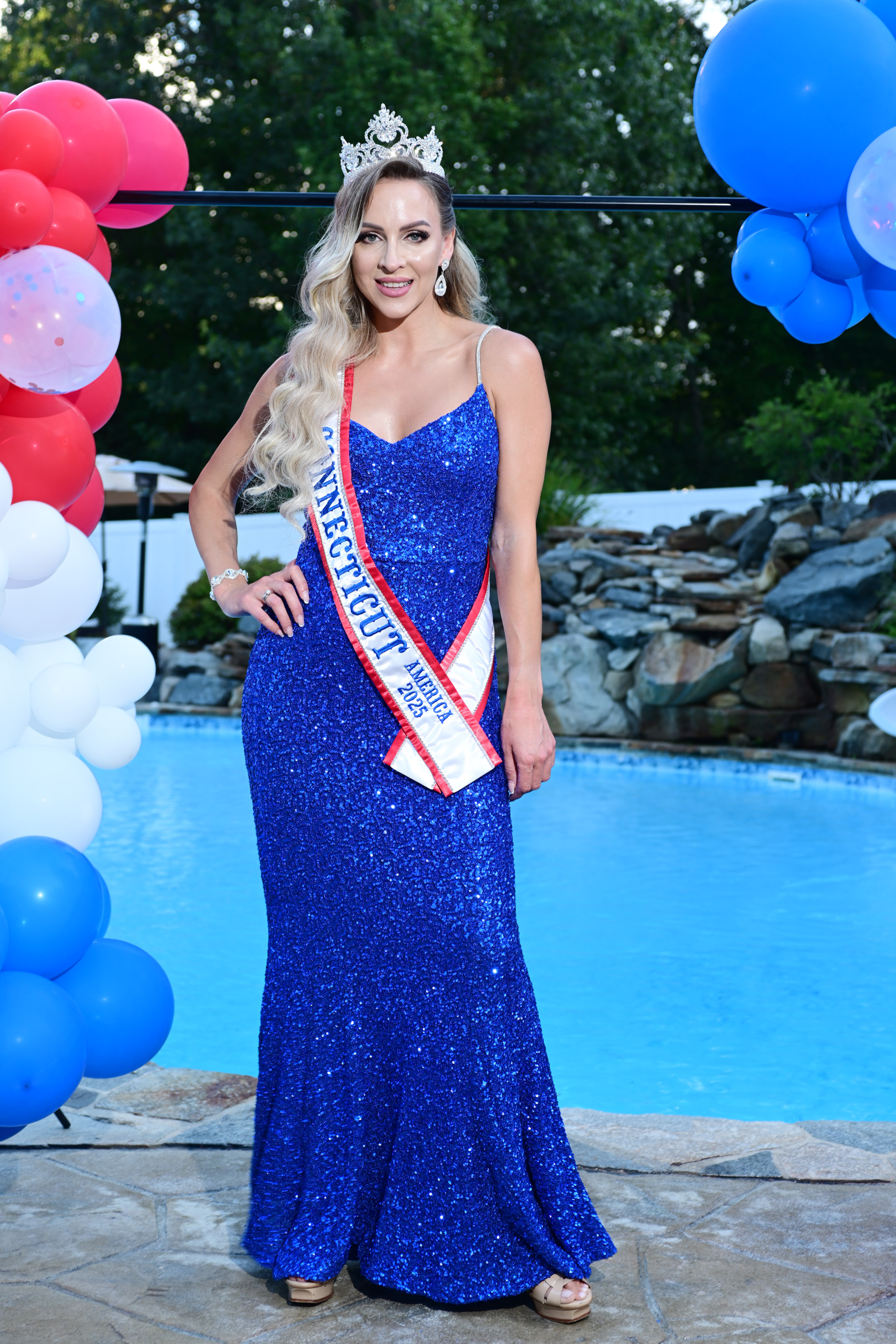 Prior to her departure, she visited Southington, Conn. for a send-off party with her two predecessors in the Mrs. Connecticut program: Kimberly Beaudoin and Alysson Genovese. Other family members and friends also attended a gathering poolside before departing for dinner in a stretch limo.