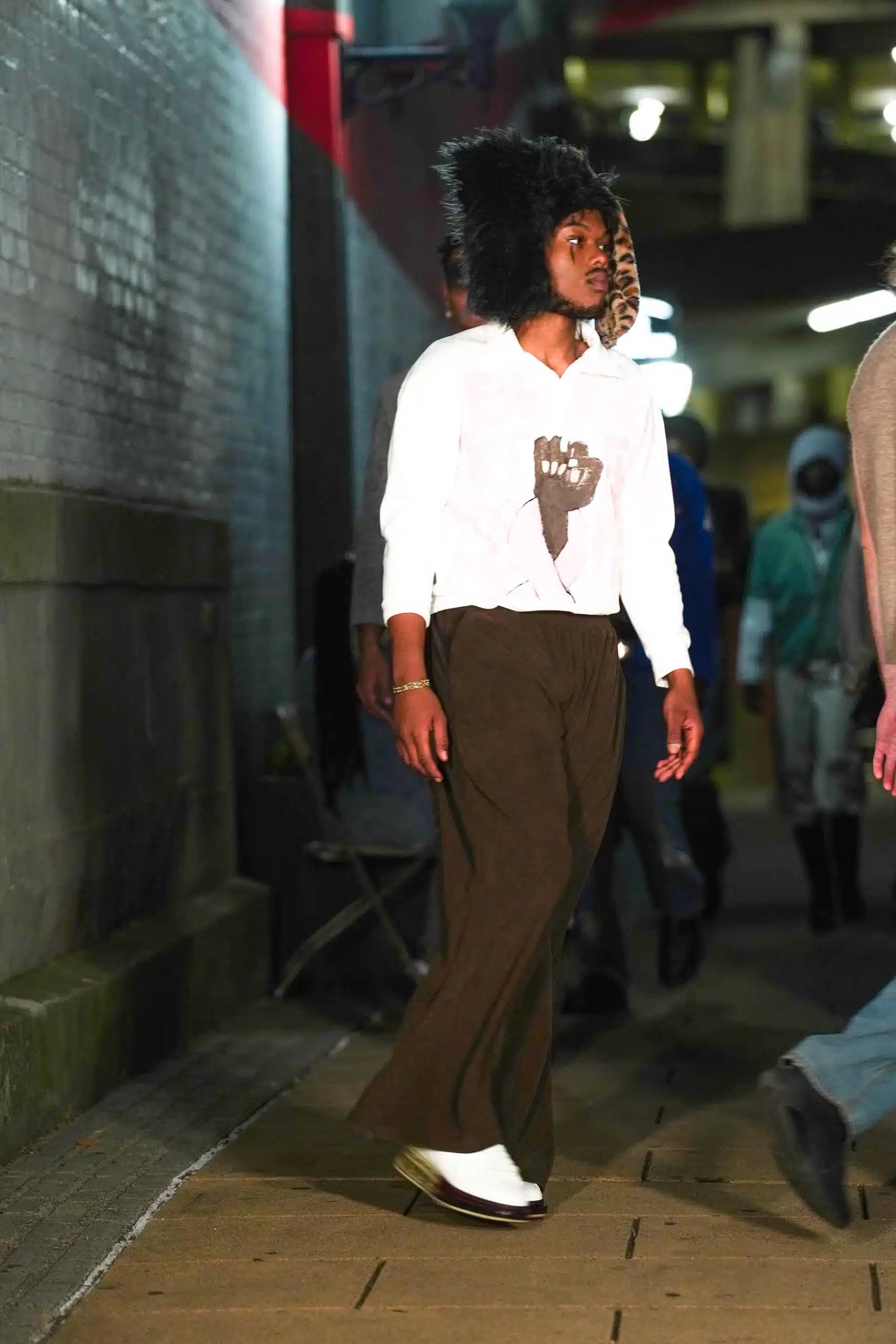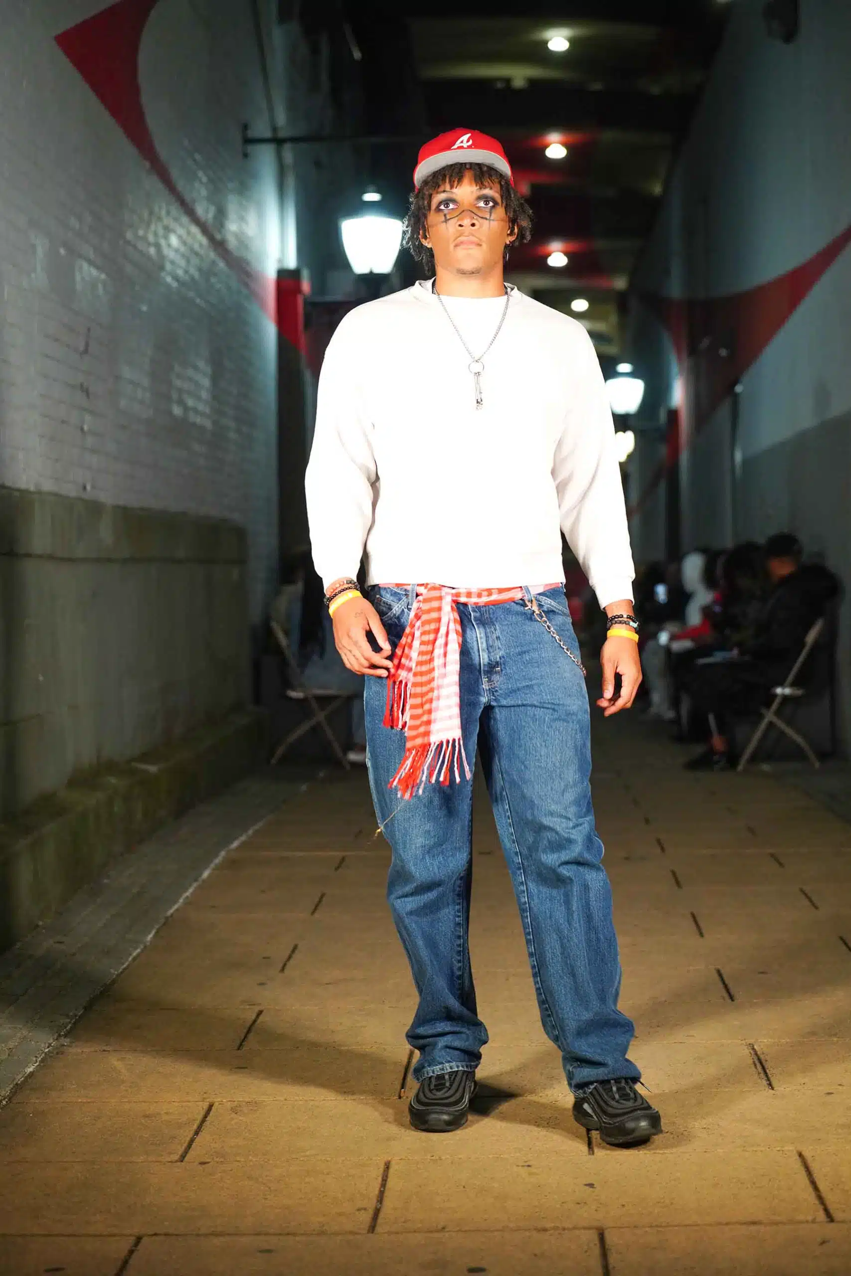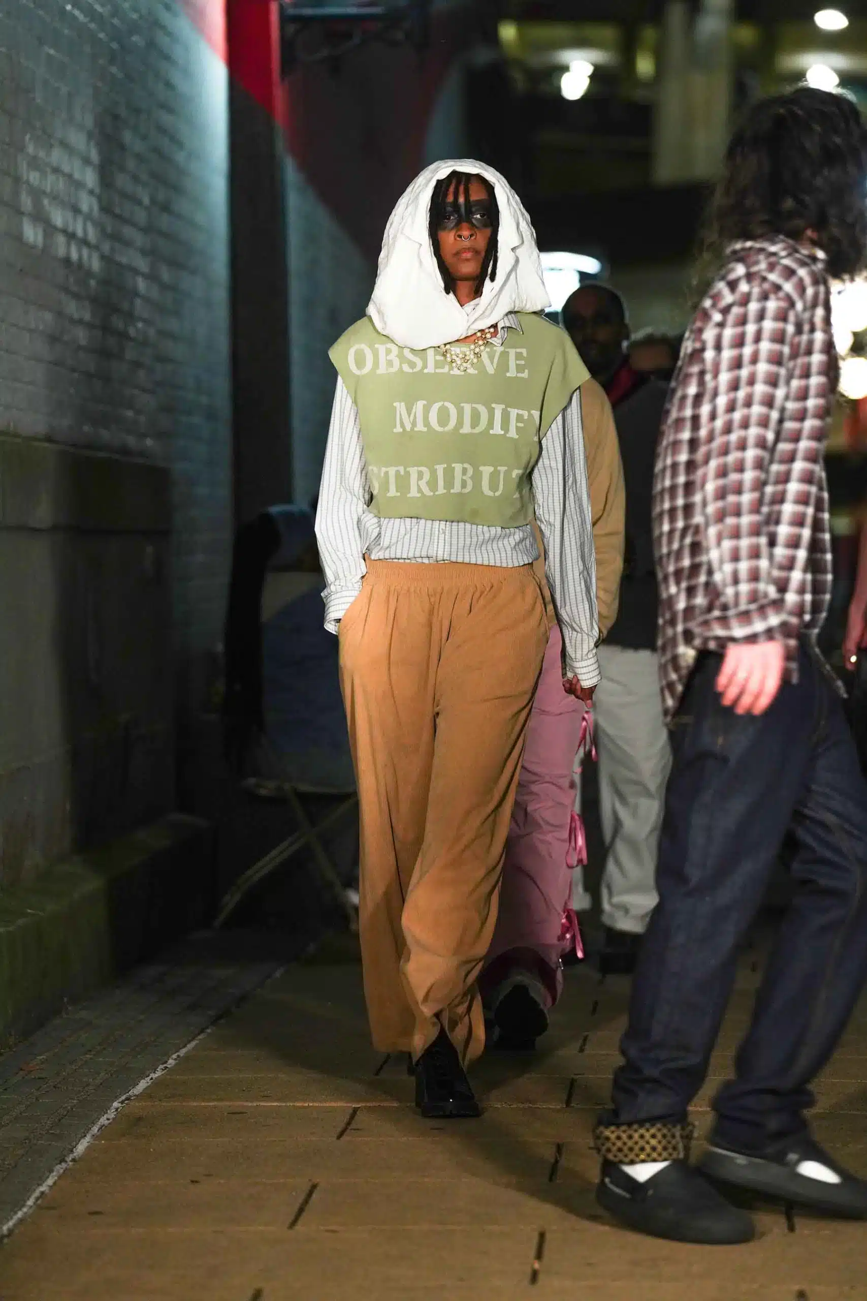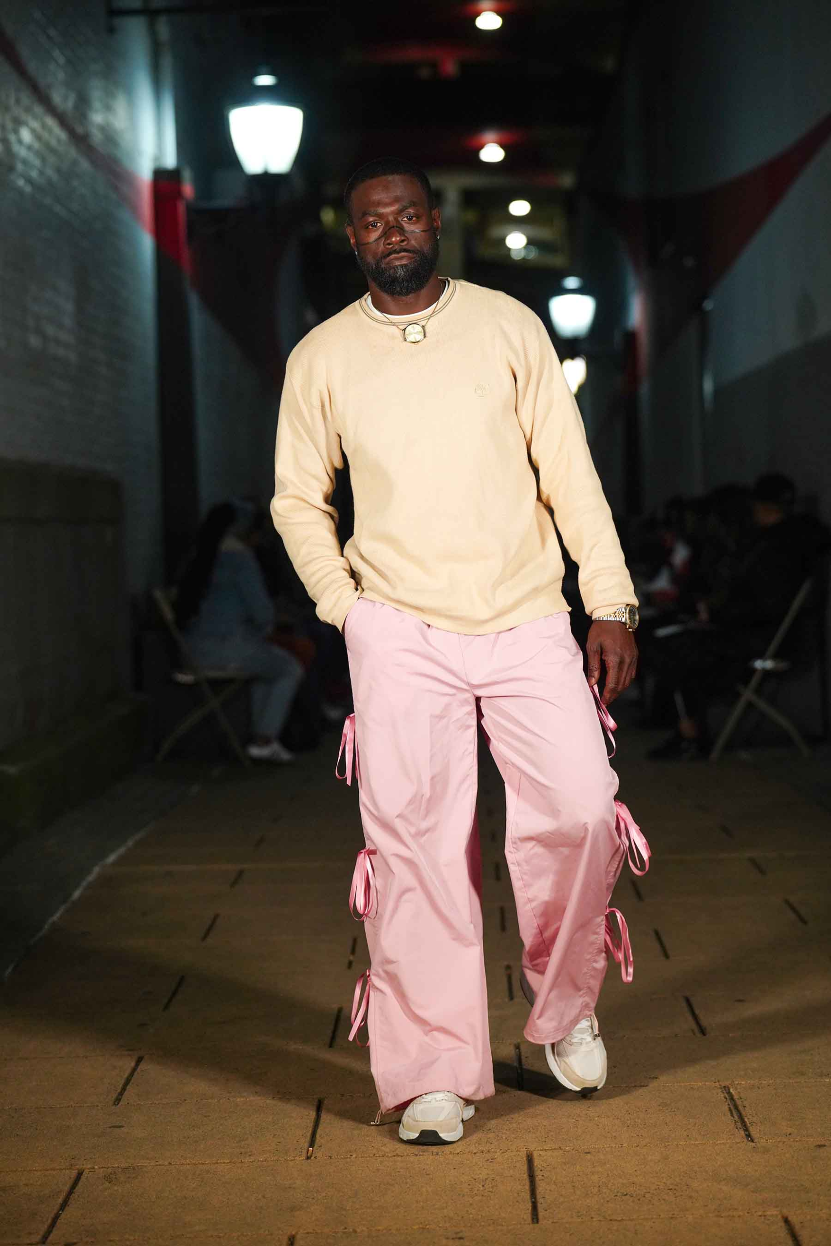 AMT.C presented its latest creations for men in an alley off Chapel Street in New Haven as NHFW (New Haven Fashion Week) held a pop-up fashion show staged against the backdrop of the public art piece, “Four Circles and a Square.”
