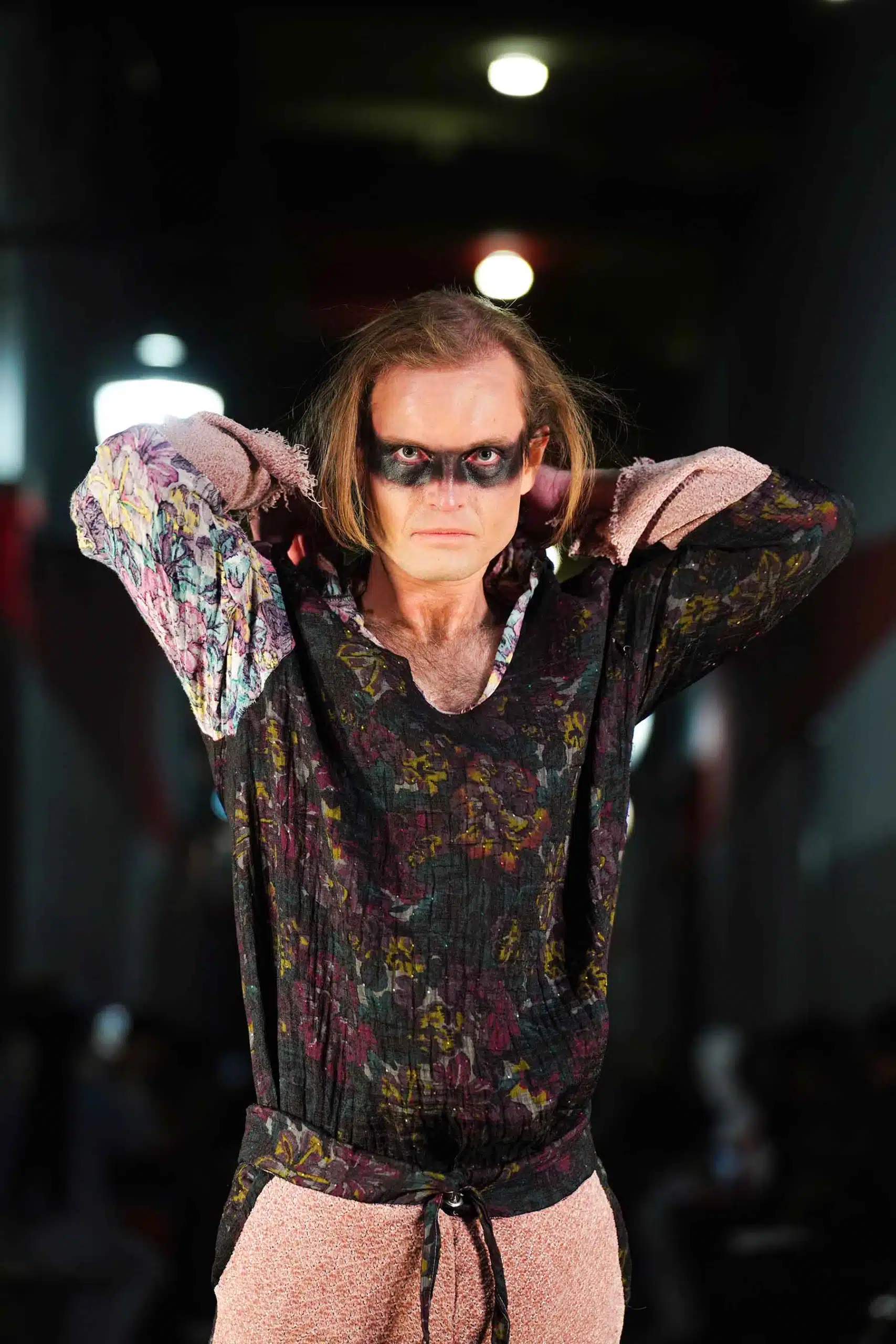 The public art piece, “Four Circles and a Square” served as the backdrop for the pop-up fashion show. Guests were alerted to the location mere hours before show time.