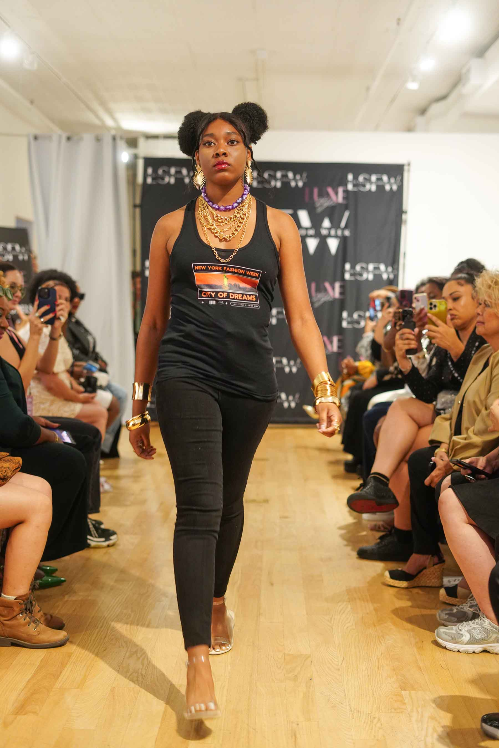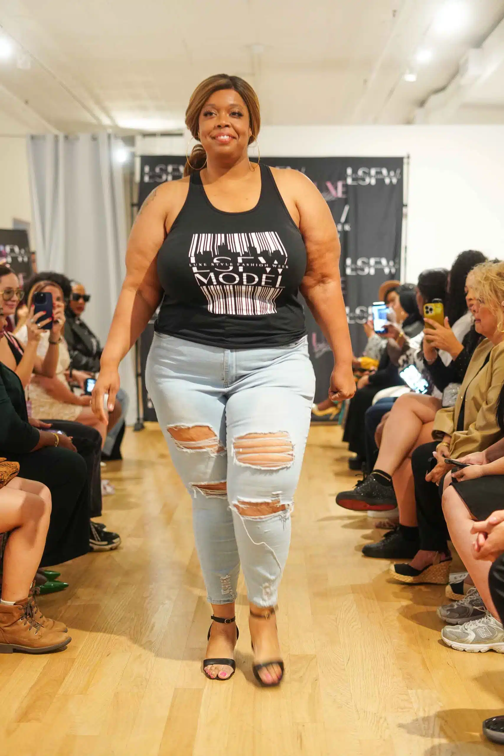 To open the fashion show, Luxe Style Fashion Week did a little self-promotion by putting its commemorative tees on the catwalk as part of its New York Fashion Week festivities in New York City on Sept. 14.