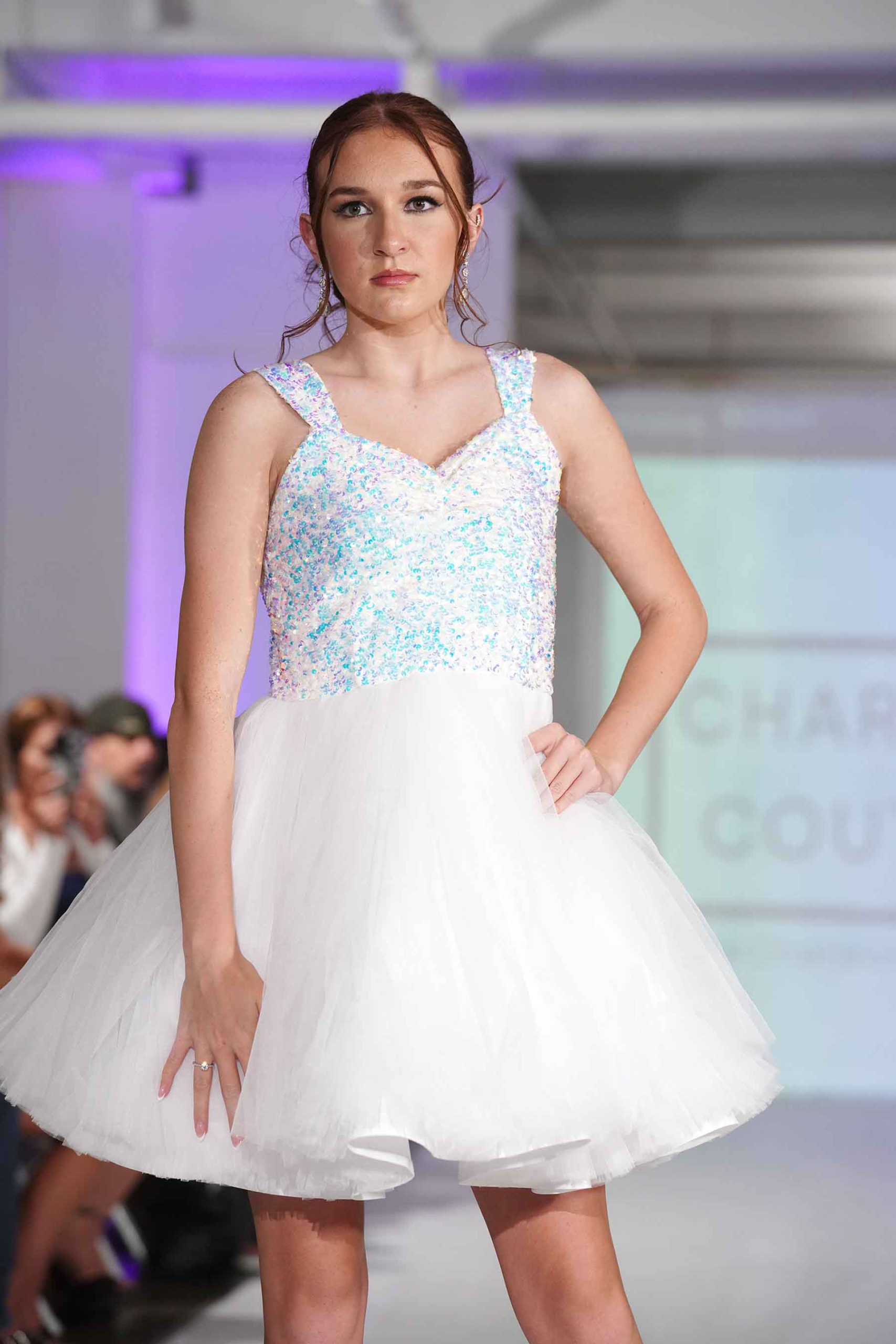 In its evening show at NYFW (New York Fashion Week), Charjean Couture — designed by teen model Katie Davis– offered another look at its Tiffany Collection.