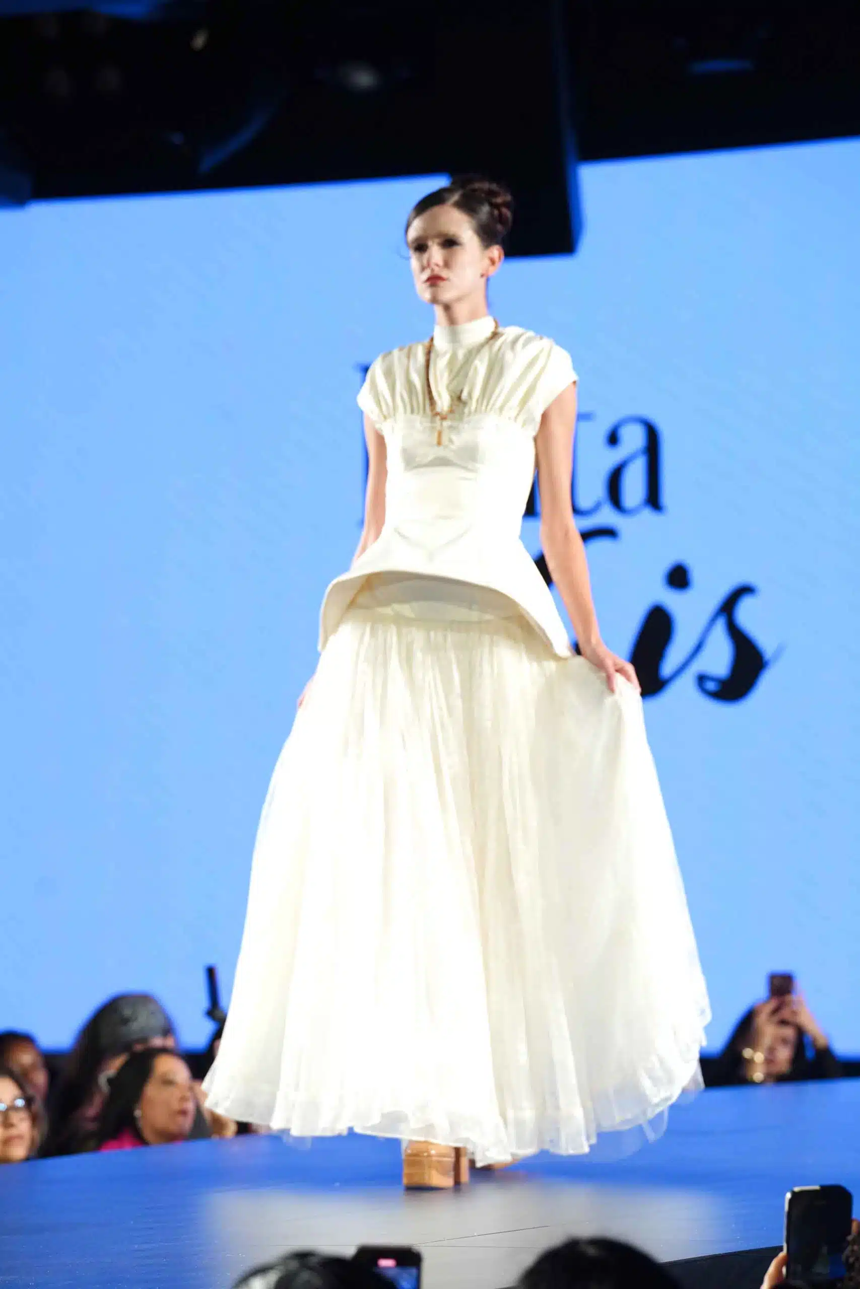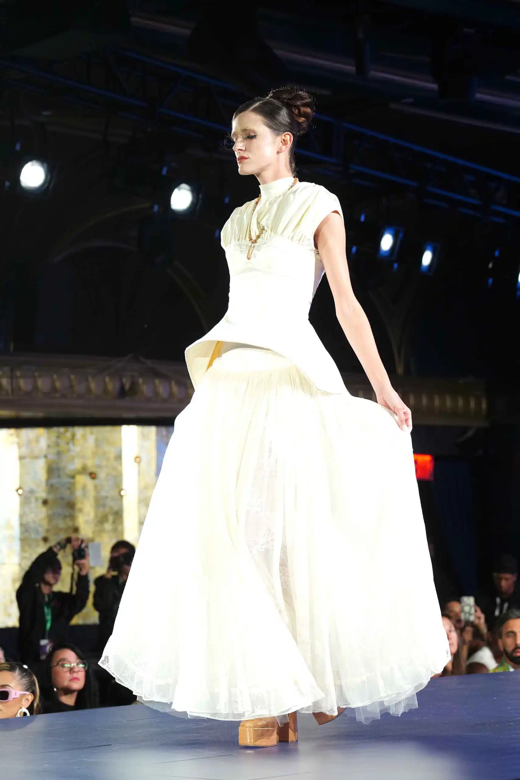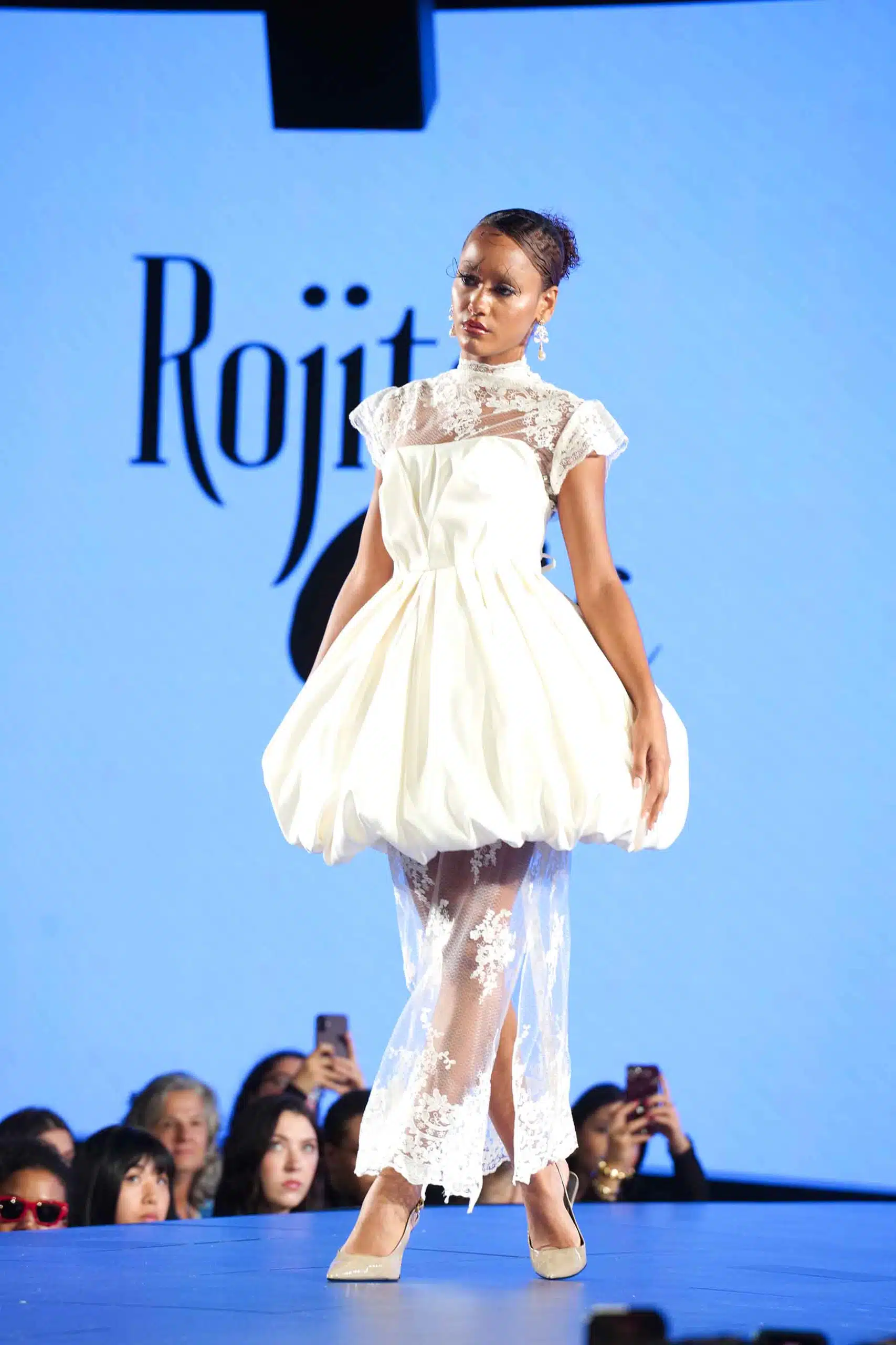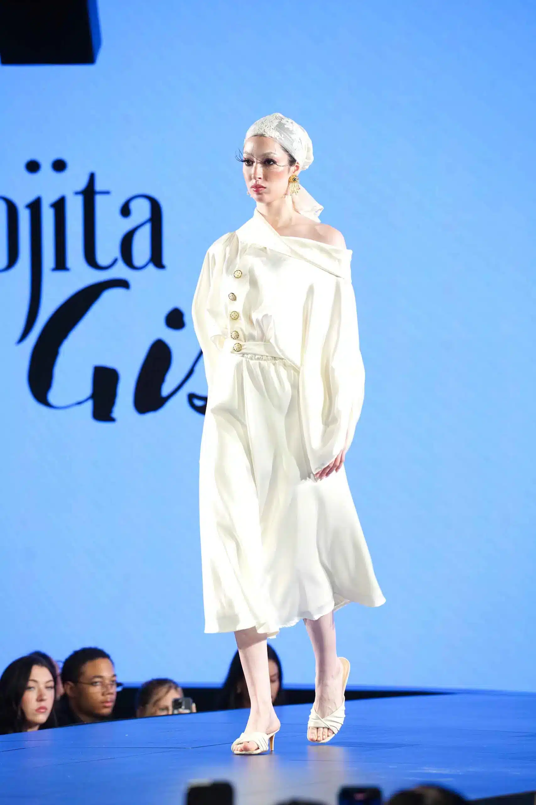 Rojita Gis tapped into one of the trends at the September shows of NYFW (New York Fashion Week)… a runway full of white garments. The small collection was presented at Runway 7 at Sony Hall on Sept. 11.