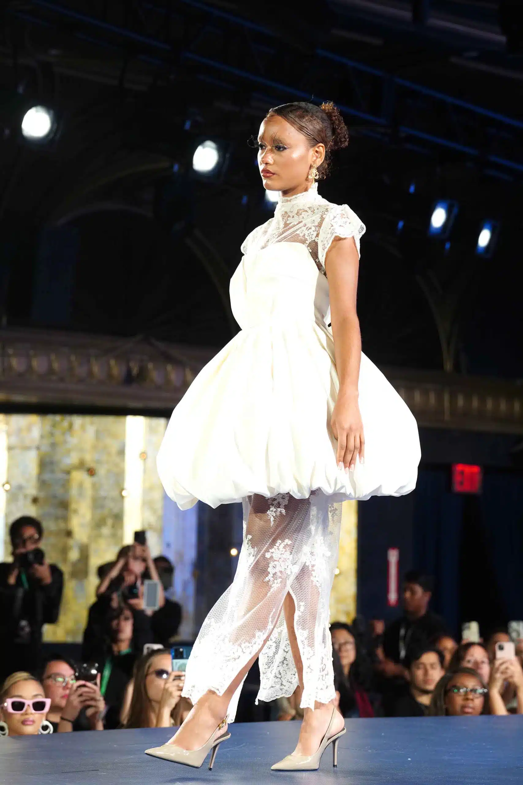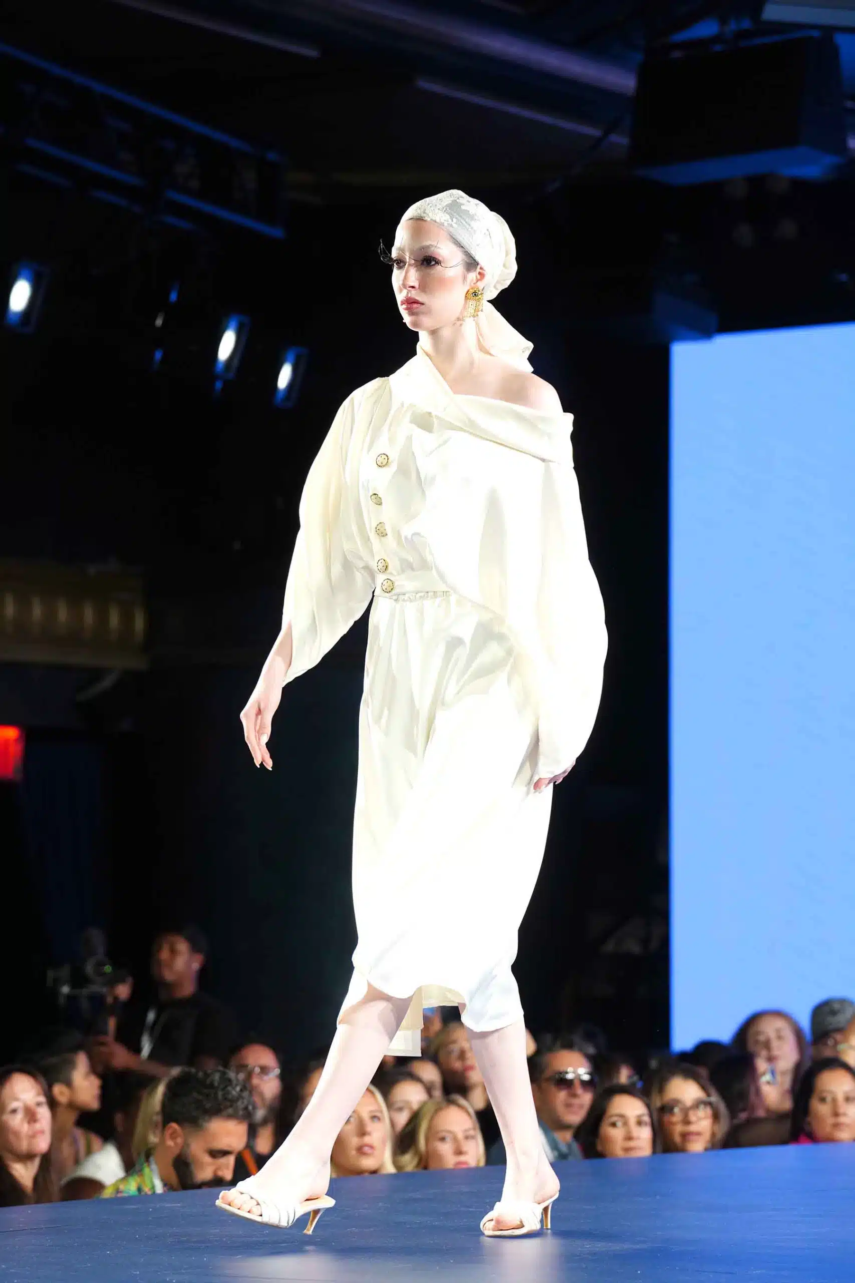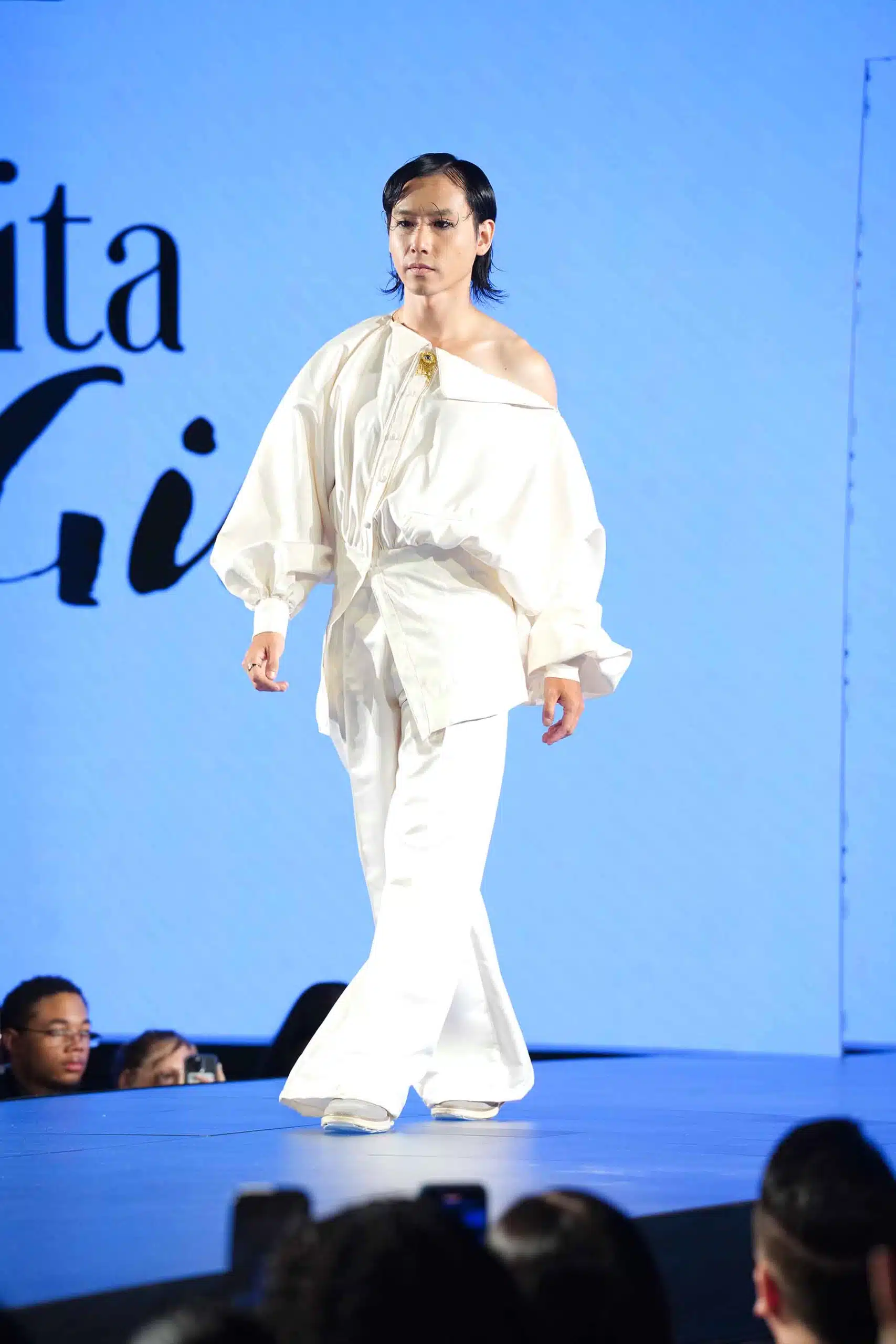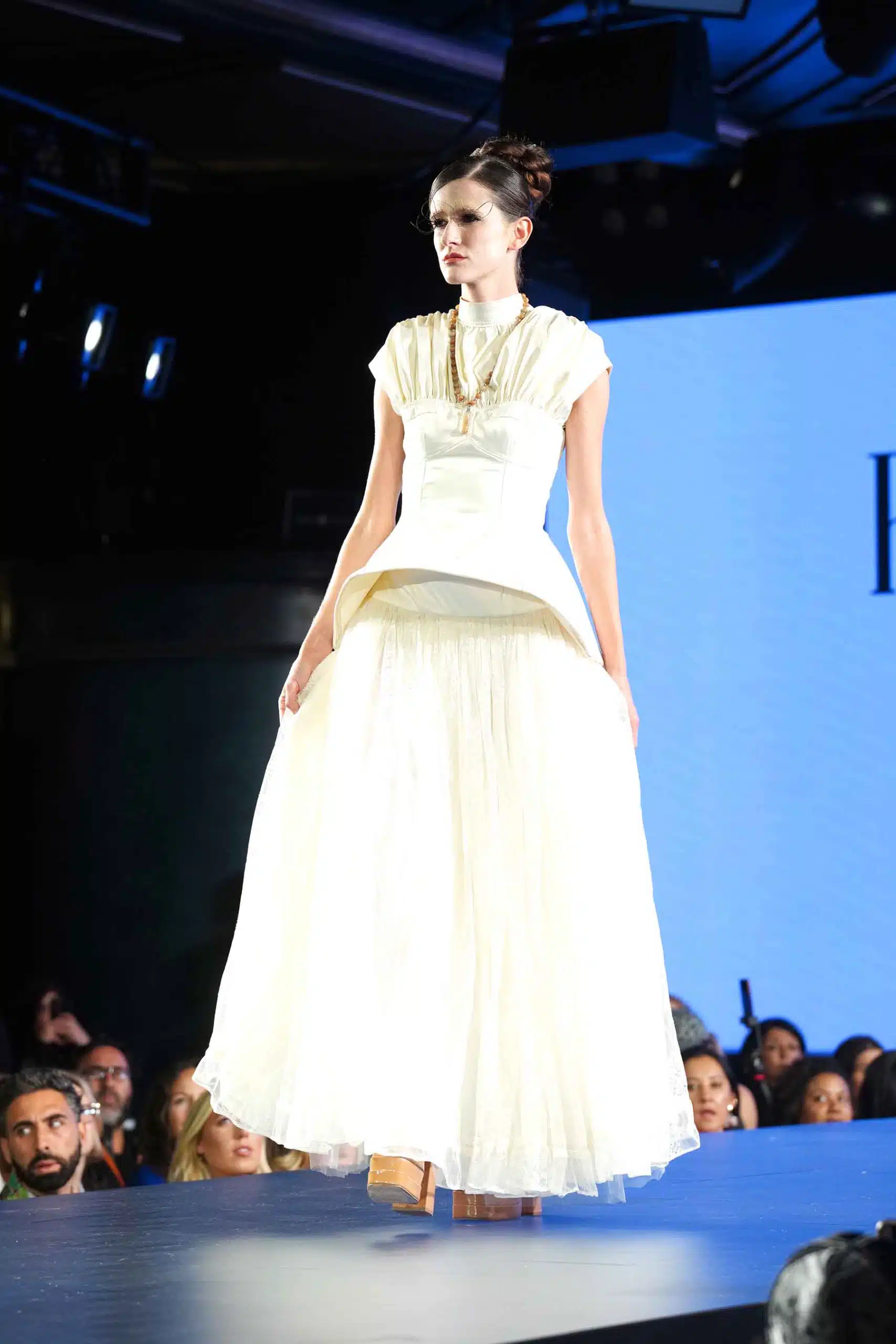 Rojita Gis tapped into one of the trends at the September shows of NYFW (New York Fashion Week)… a runway full of white garments. The small collection was presented at Runway 7 at Sony Hall on Sept. 11.