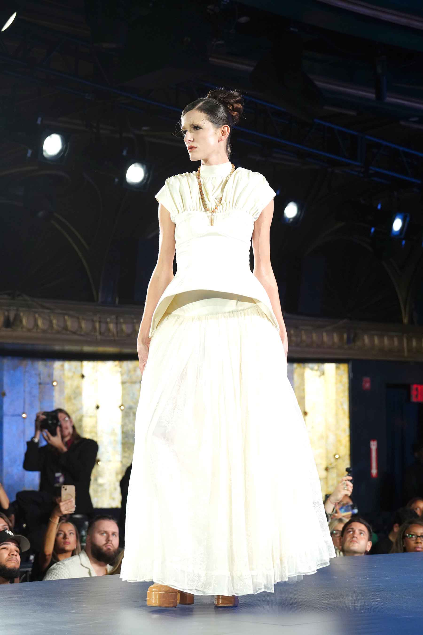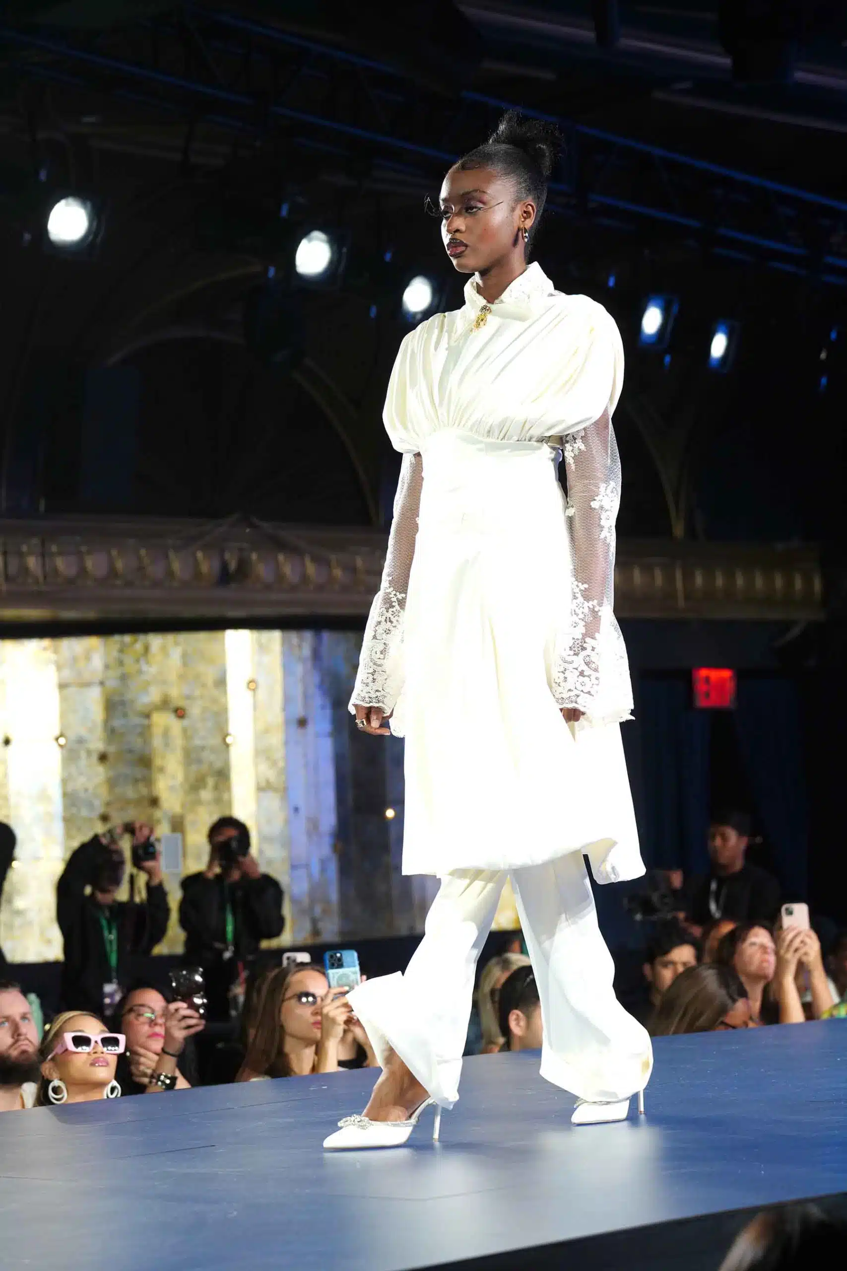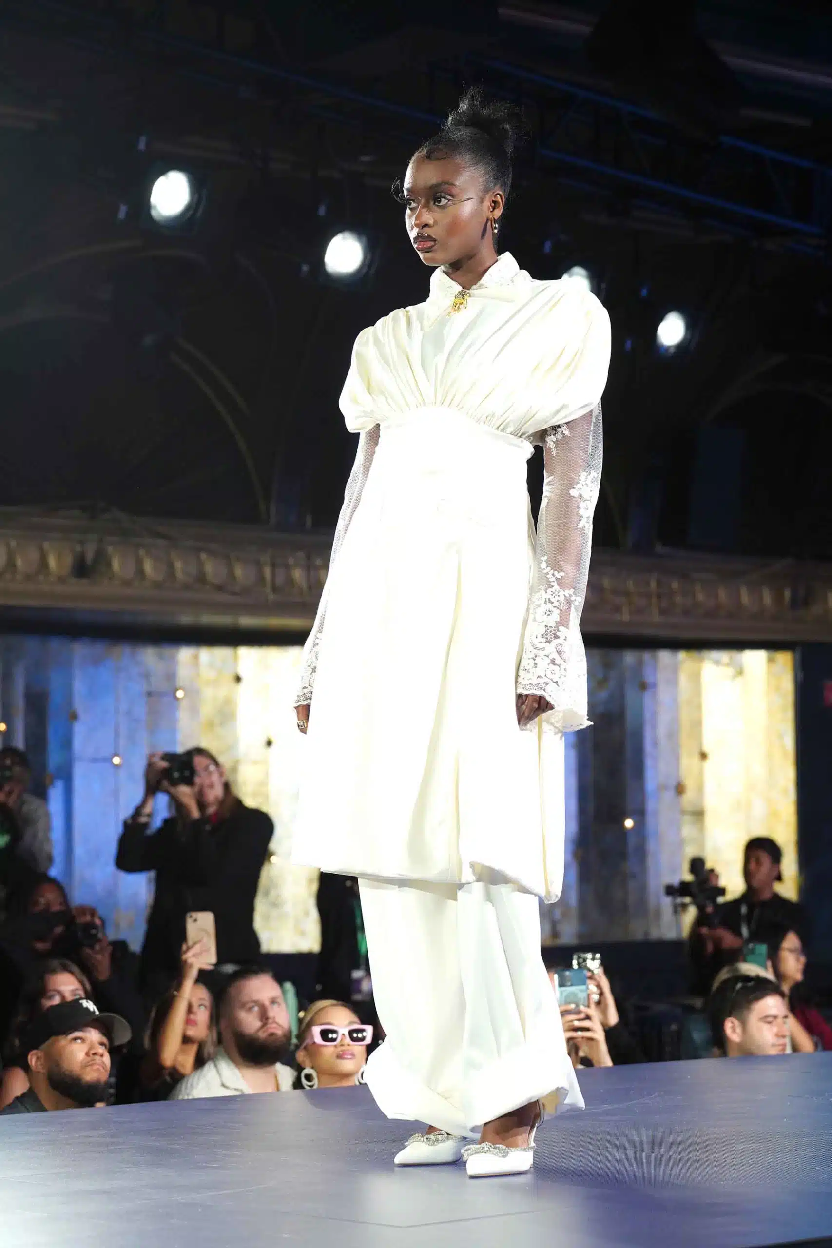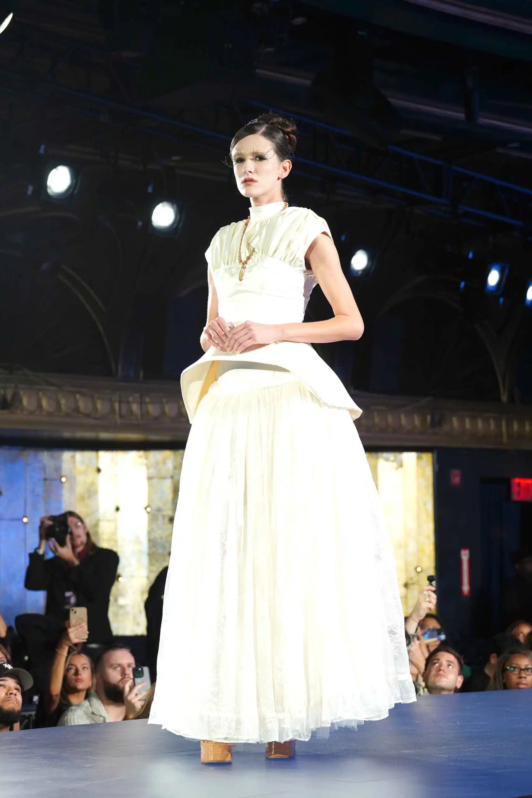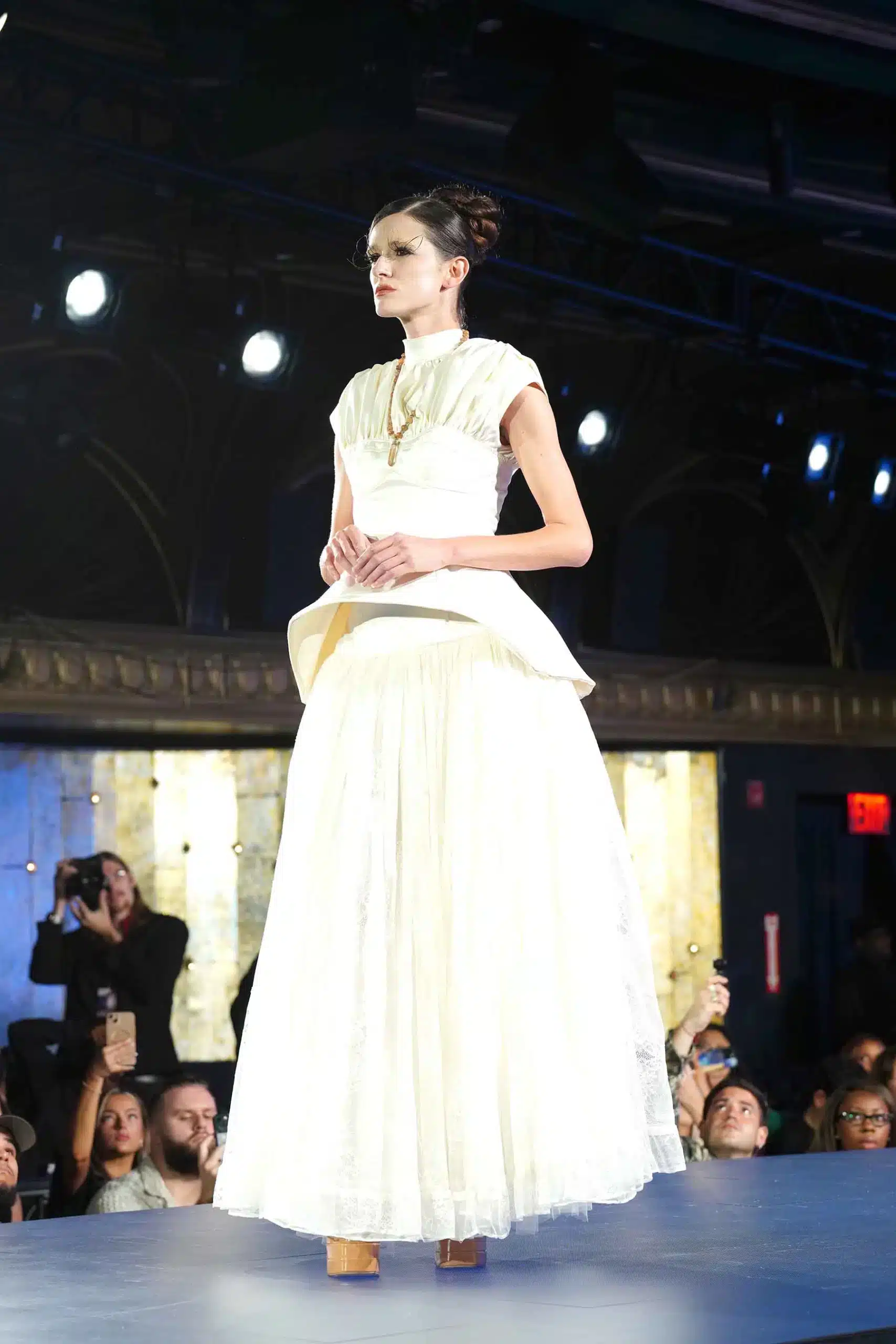 Rojita Gis tapped into one of the trends at the September shows of NYFW (New York Fashion Week)… a runway full of white garments. The small collection was presented at Runway 7 at Sony Hall on Sept. 11.