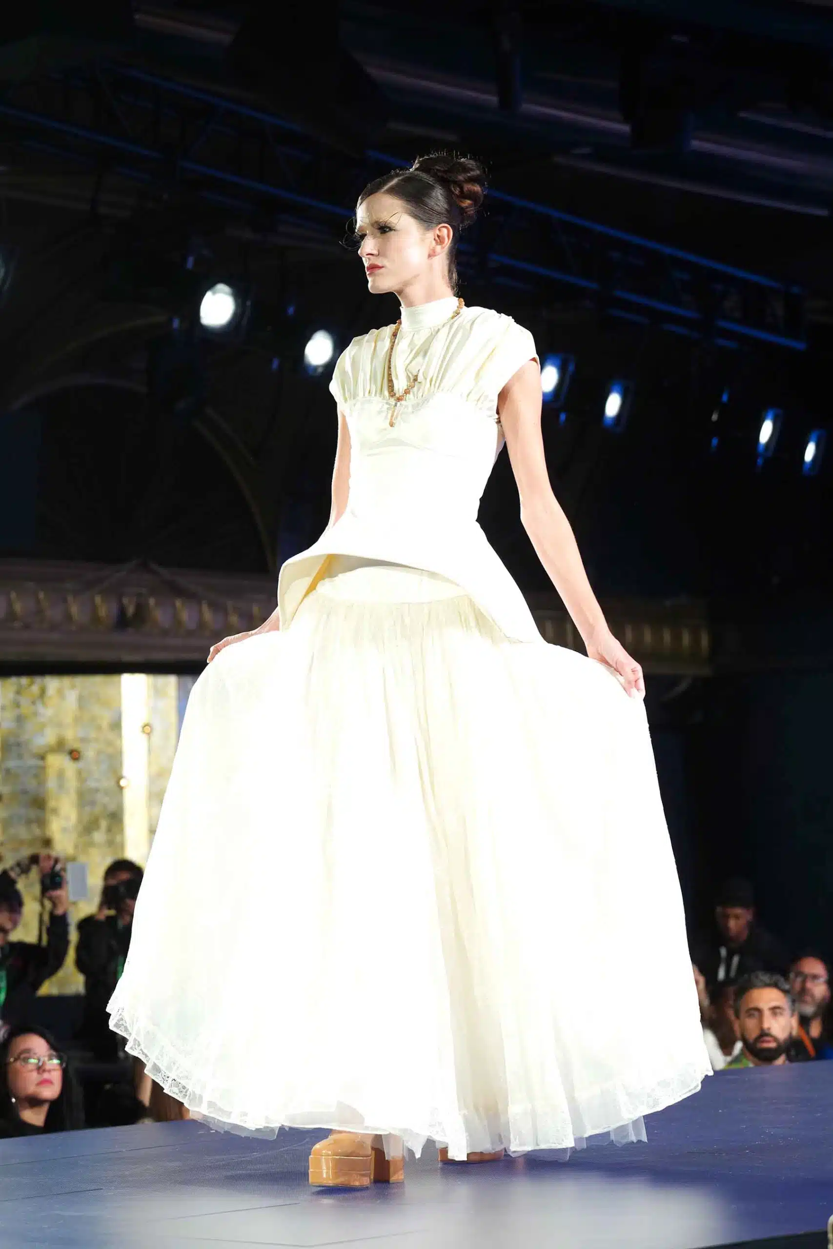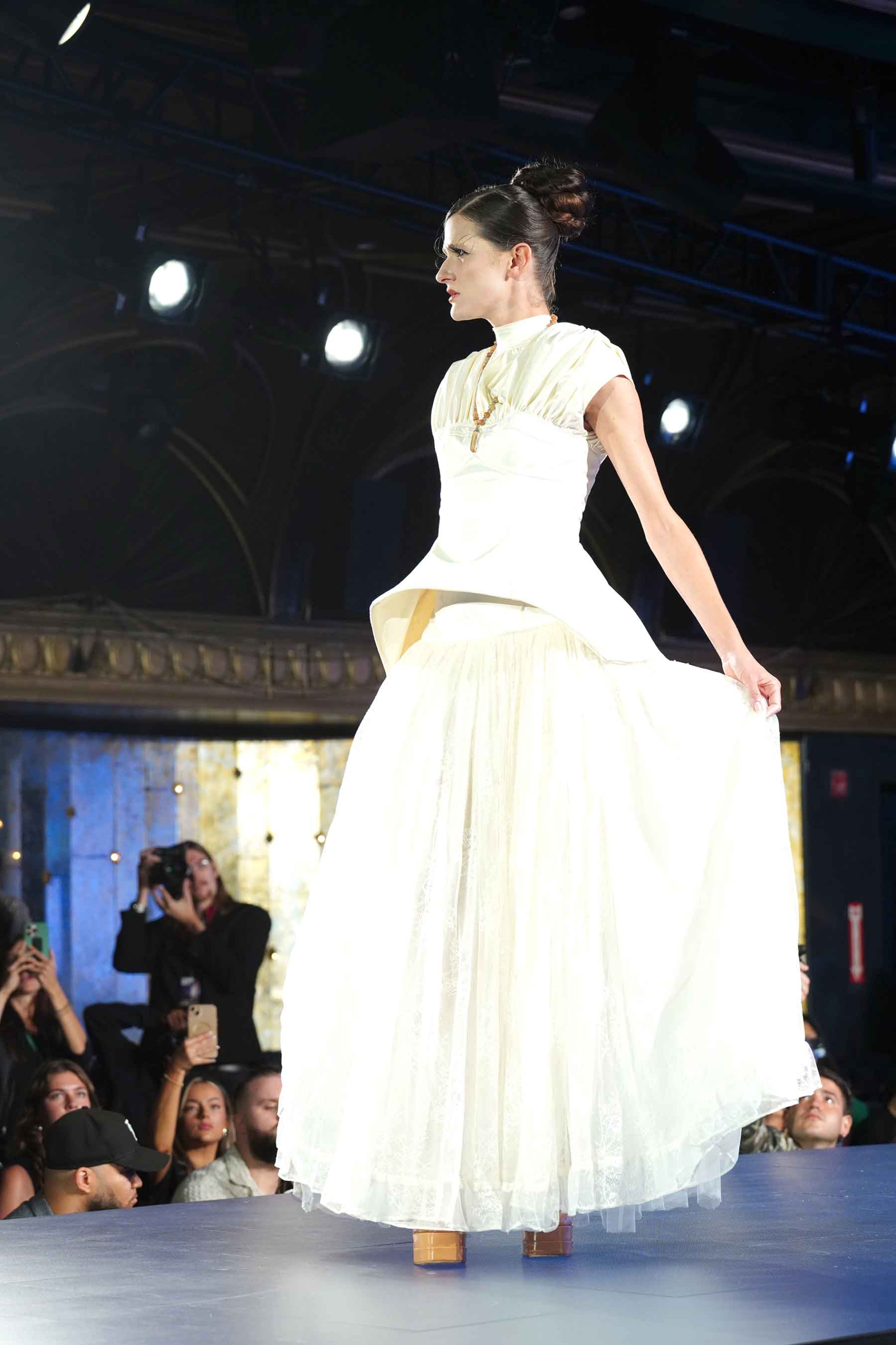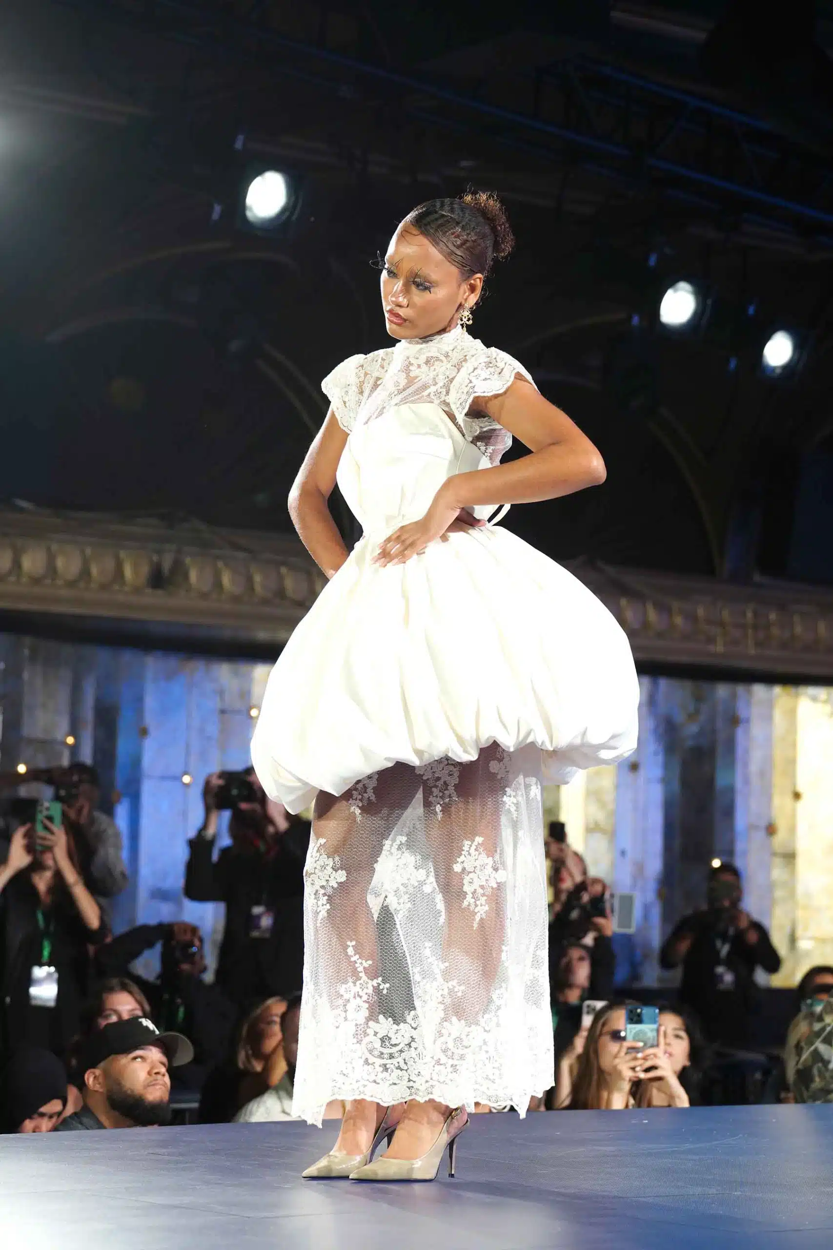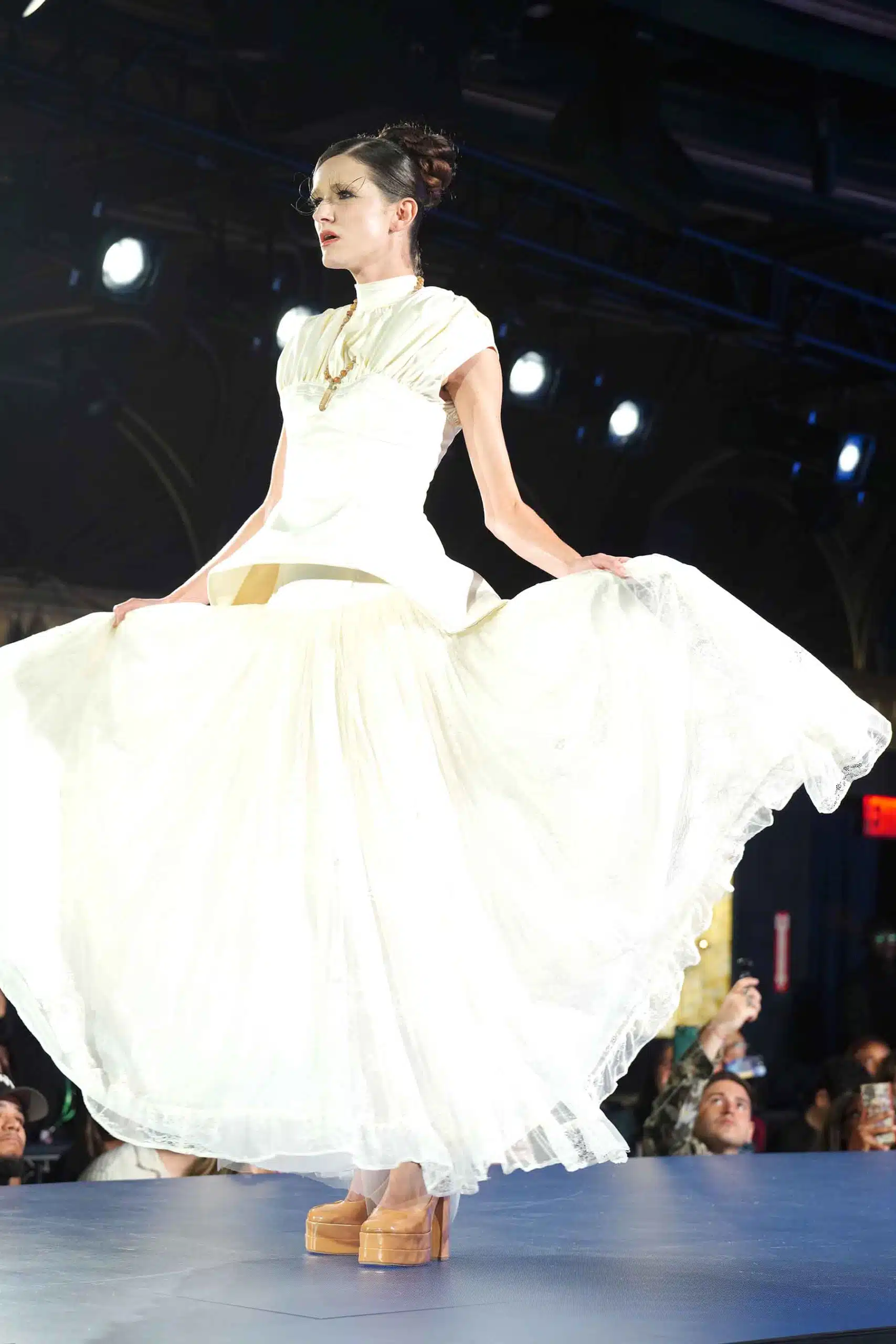 Rojita Gis tapped into one of the trends at the September shows of NYFW (New York Fashion Week)… a runway full of white garments. The small collection was presented at Runway 7 at Sony Hall on Sept. 11.