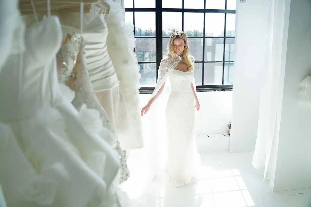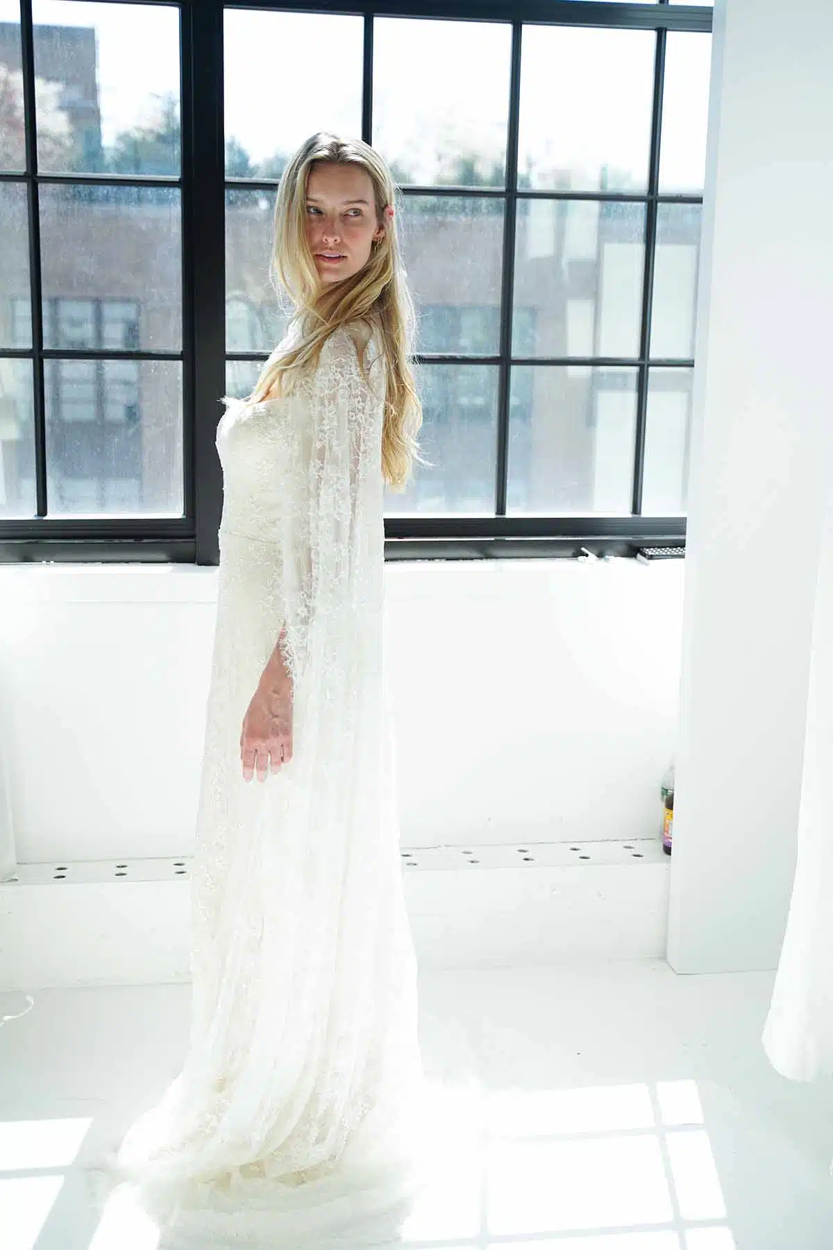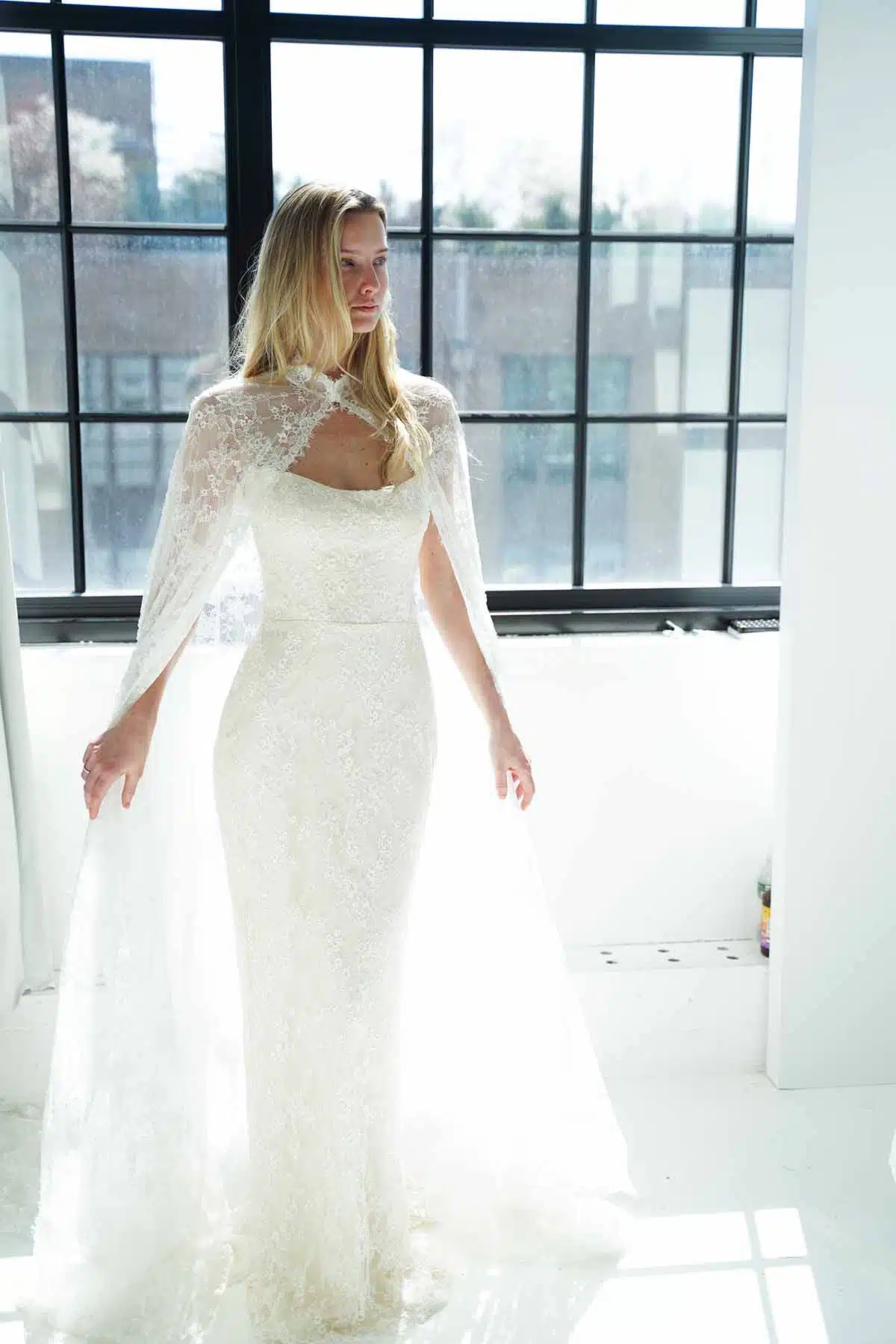 Avari Bridal (https://www.avaribridal.com/) made its debut at New York Bridal Fashion Week with a booth at One Fine Day bridal market. A model takes advantage of the sun to pose in one of the brand’s latest creations.
