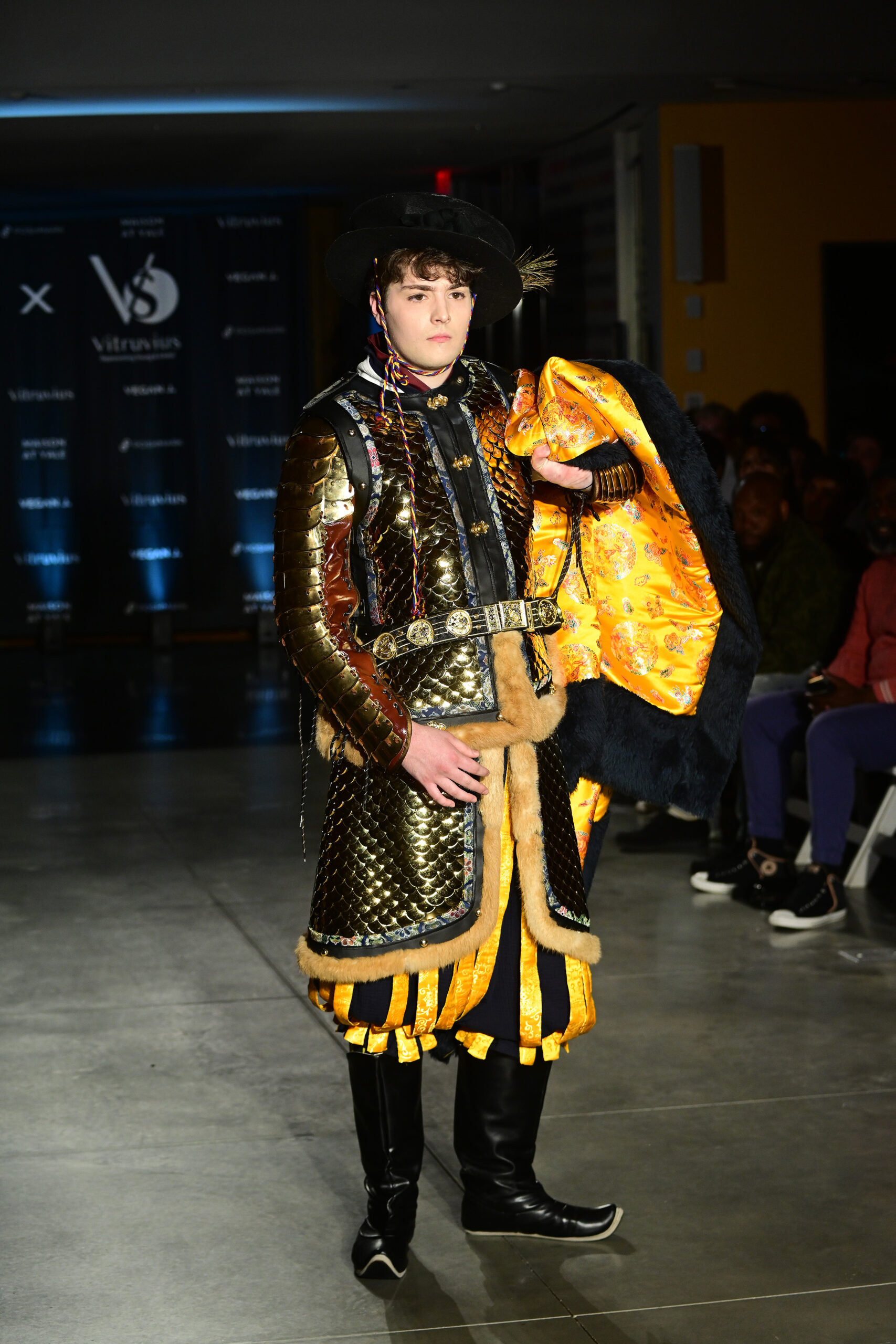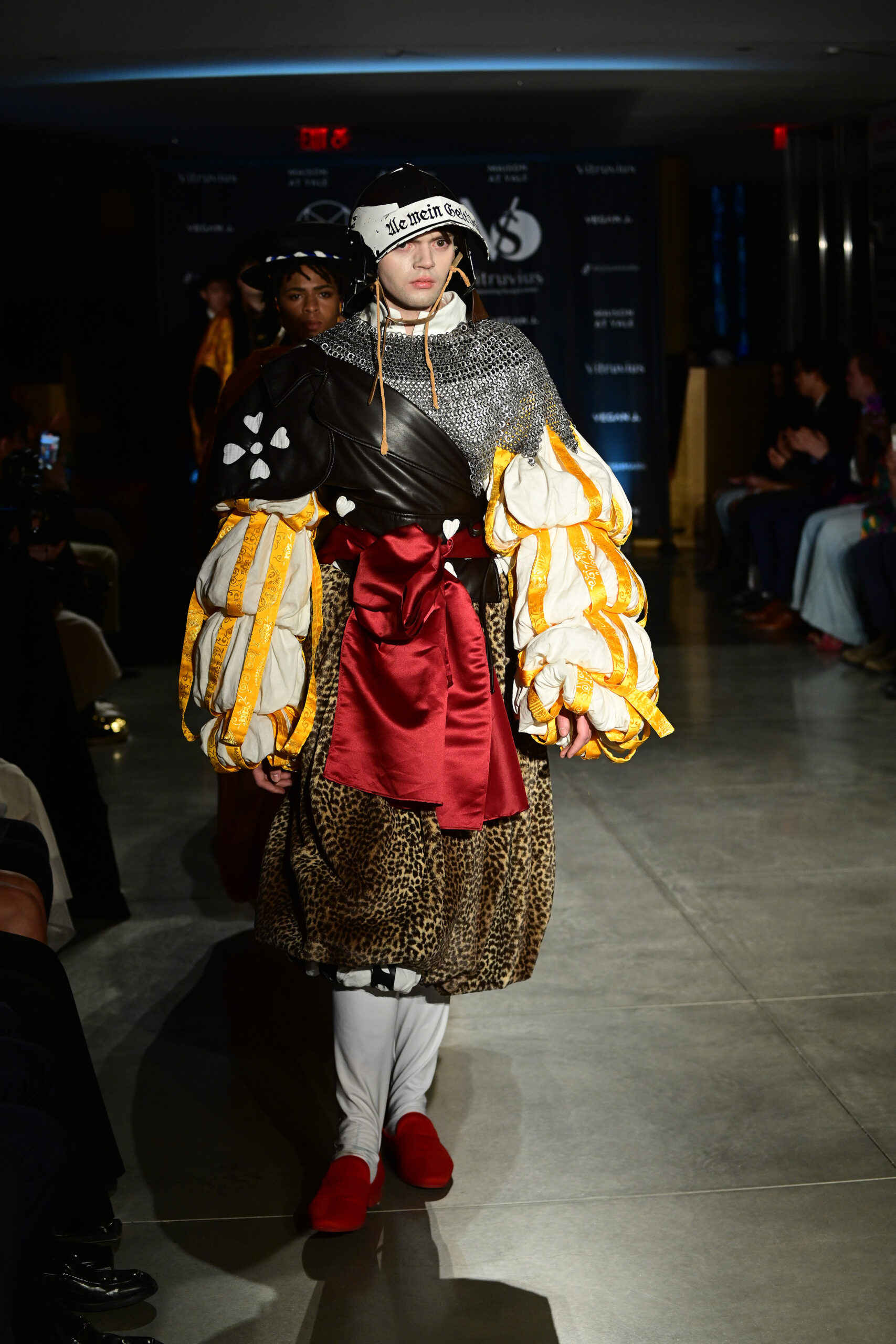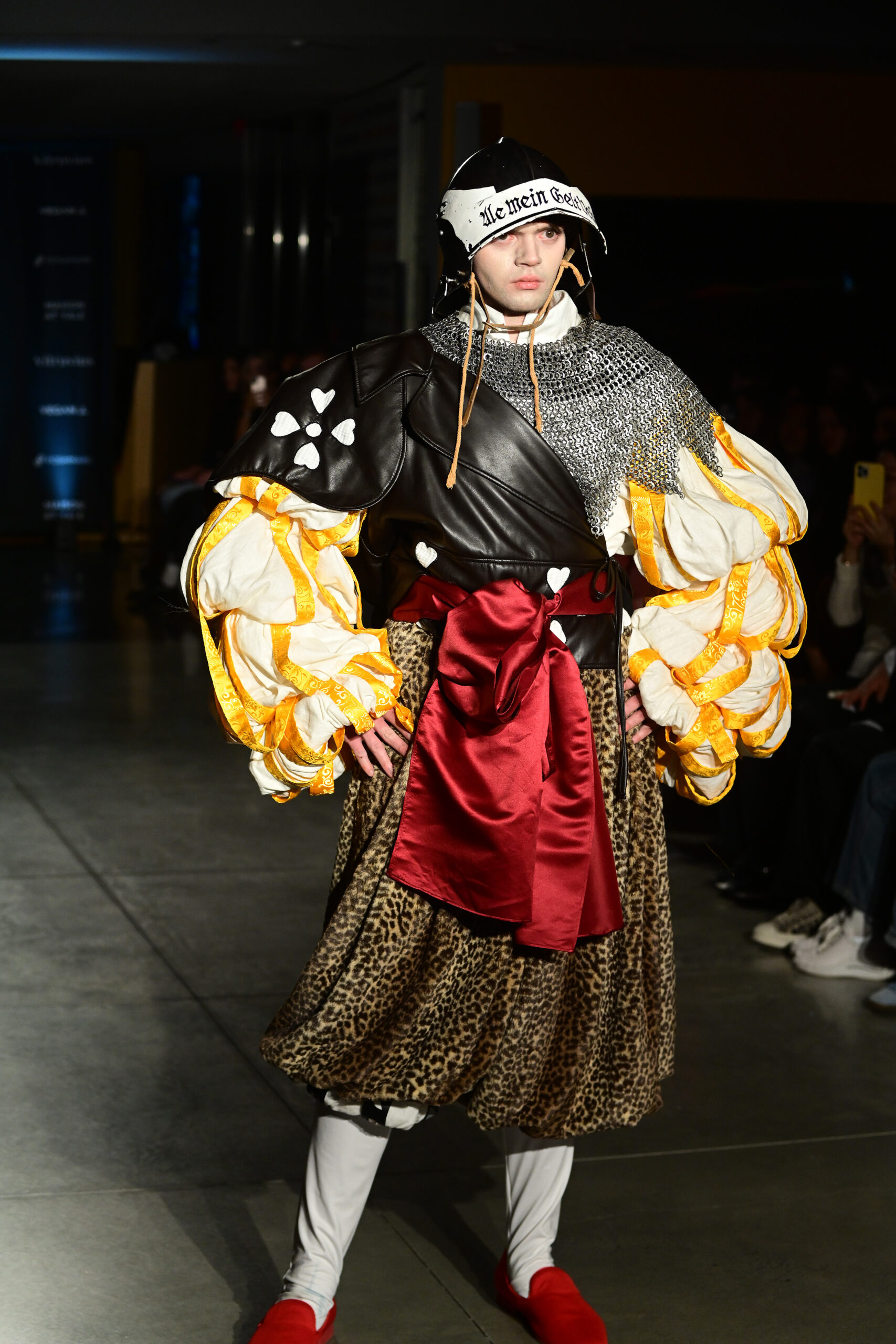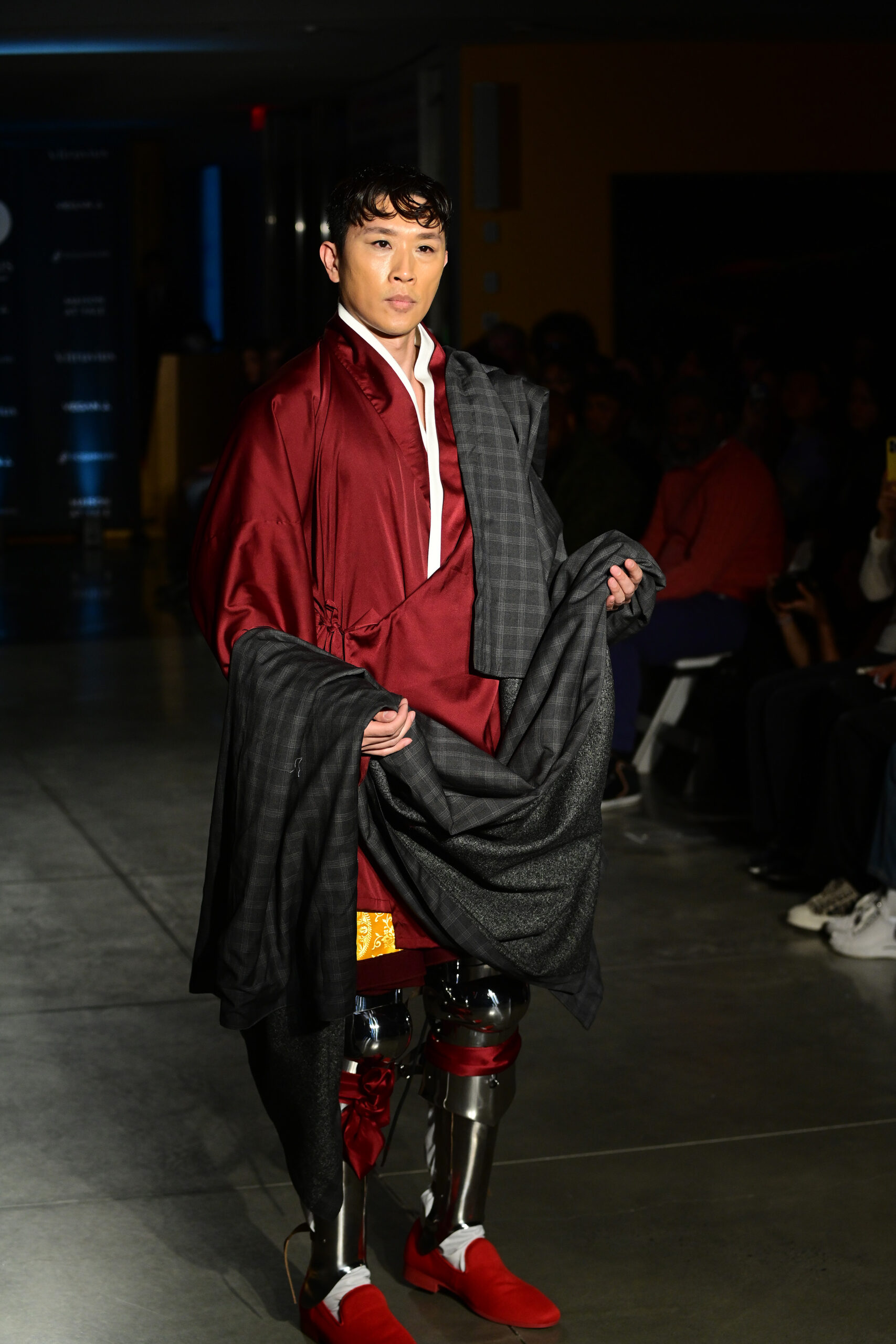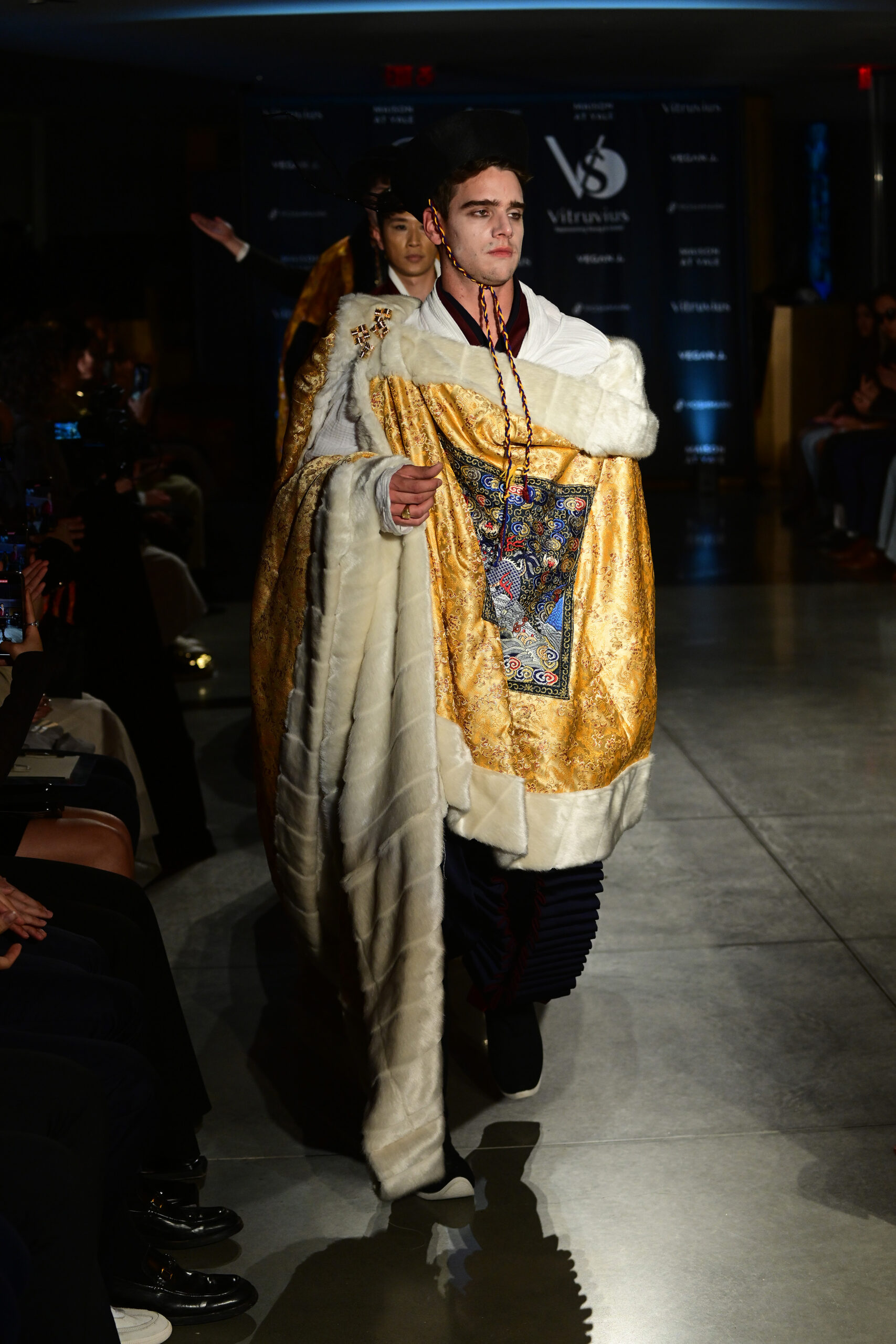 Prior to his models taking to the catwalk, Fu said he took inspiration for his looks from military and court costumes used in “pre-modern states” in Rome, China, Japan and Greece. He said his approach to style was similar in the way J.R.R. Tolkien (“Lord of the Rings”) or George R.R. Martin (“Game of Thrones”) imagined the costumes of their characters in their fantasy works.