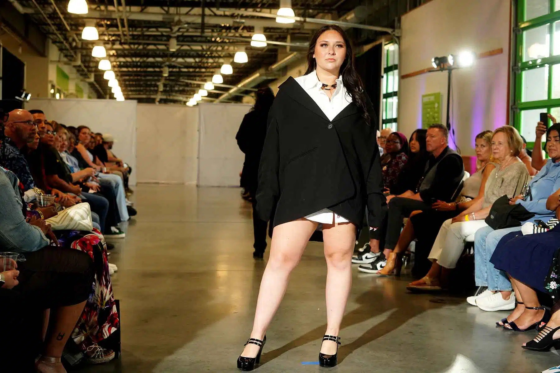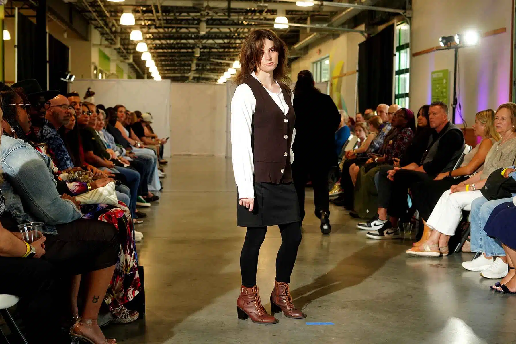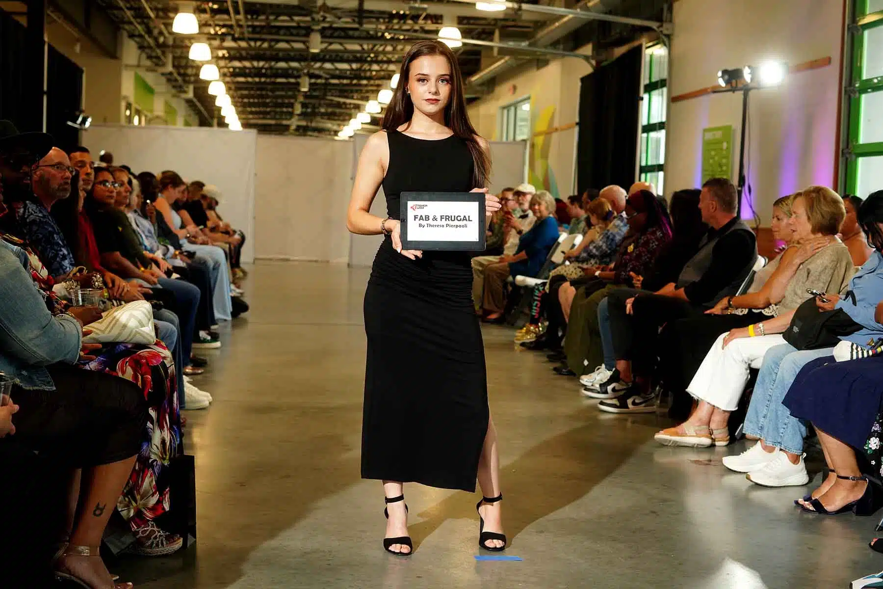 Representatives from RIFW (Rhode Island Fashion Week) went thrifting and shared their finds — and the price tags — on the catwalk at Farm Fresh, RI in Providence, R.I. on Sept. 27. The segment was called “Fun and Frugal.”