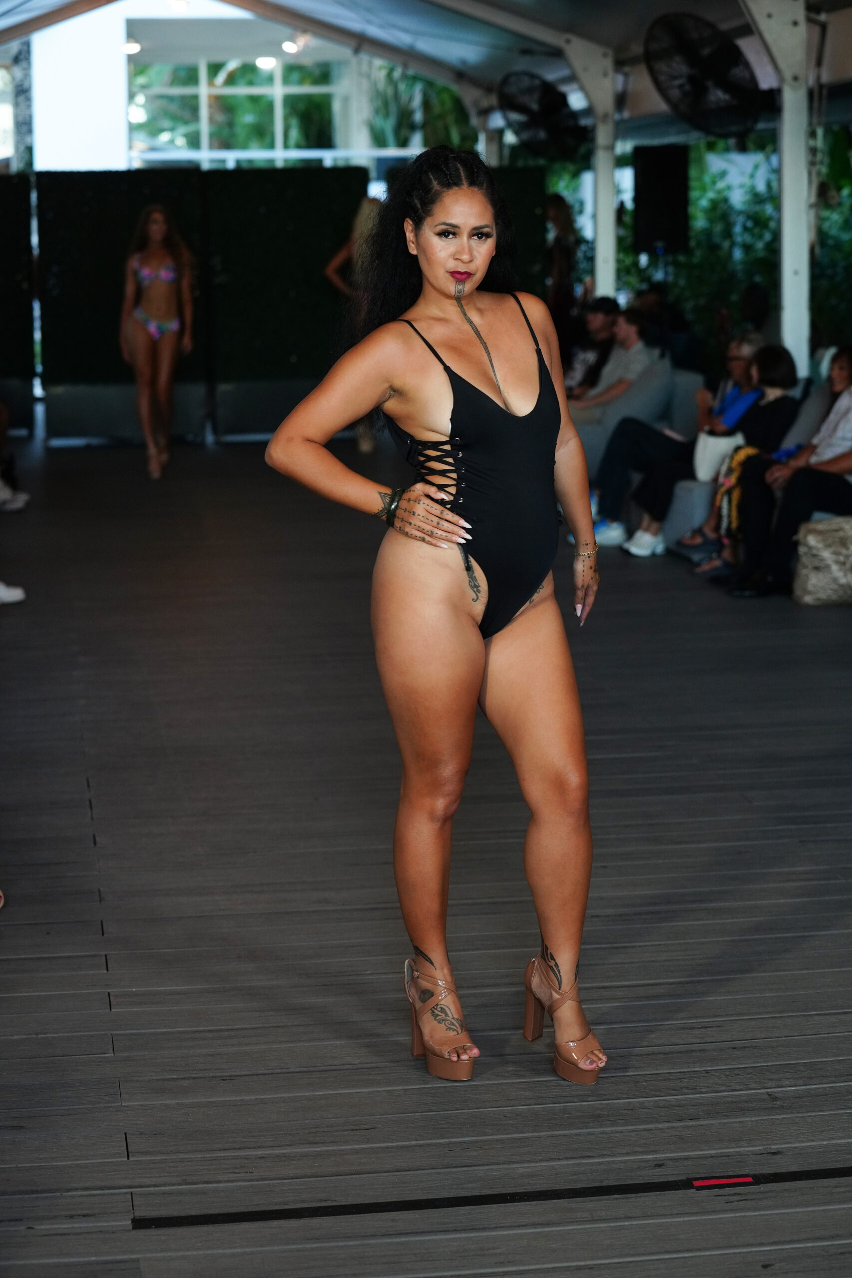 During a runway show preceding the Miss Bikini US competition, the contestants walked wearing Berry Beachy swimwear.