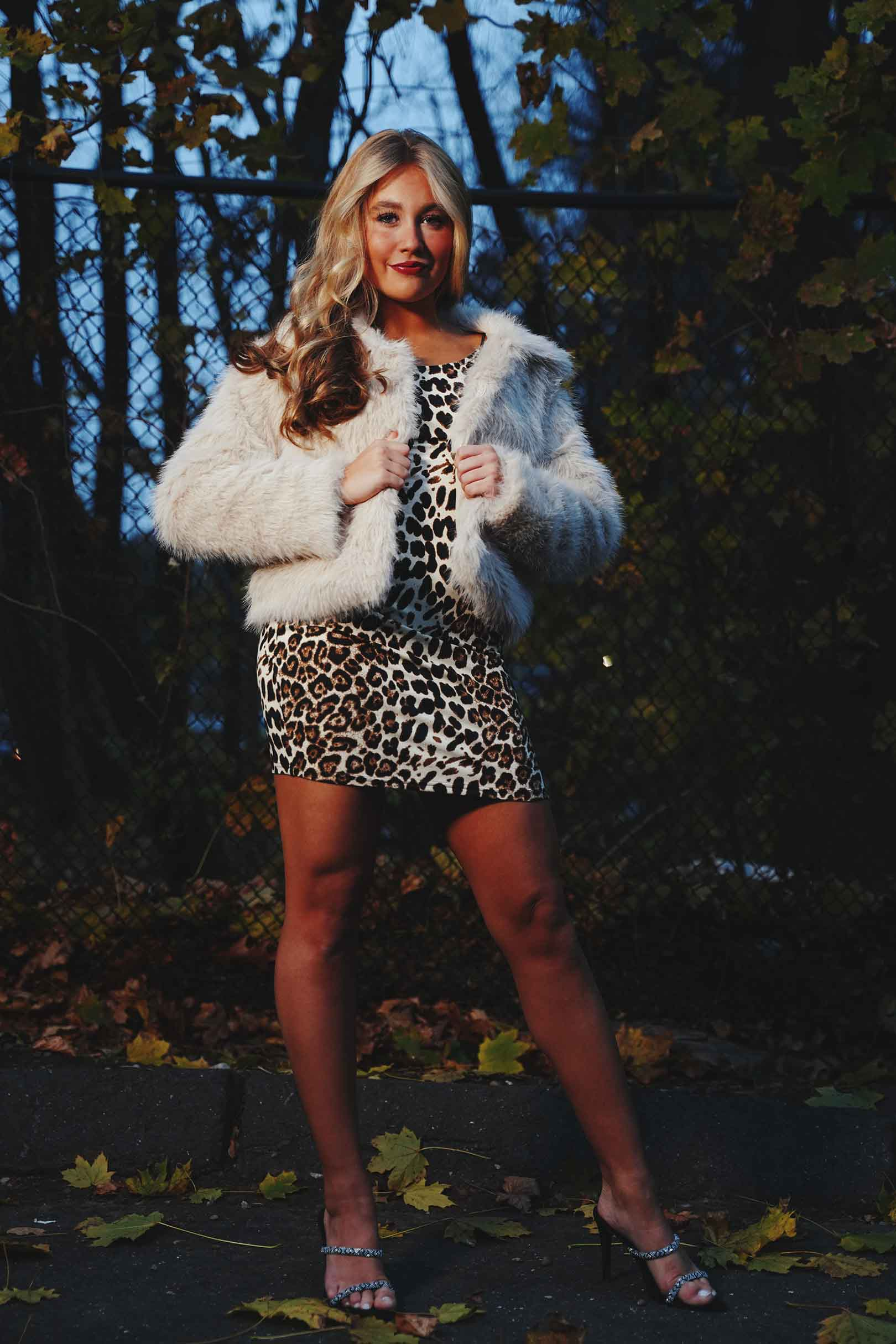 Model Manette Masse shows the style that can be bought without even visiting a brick and mortar retailer in this fashion editorial. She wears a faux fur coat bought online at Walmart. Check it out for your own at this compensated link… https://walmrt.us/49ytnE6. And she wears an animal print dress available via Amazon. Make it your own at this compensated link… https://amzn.to/4abPJvf