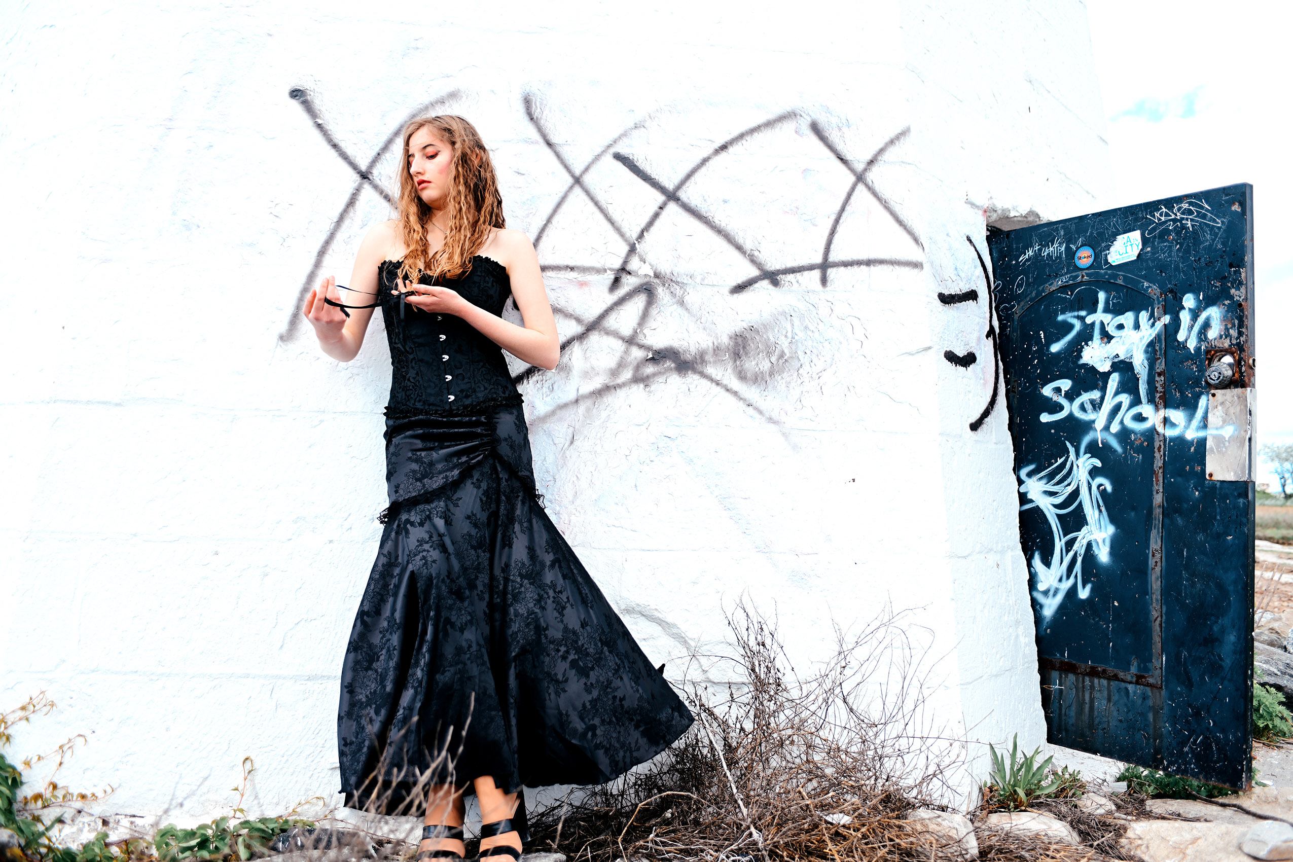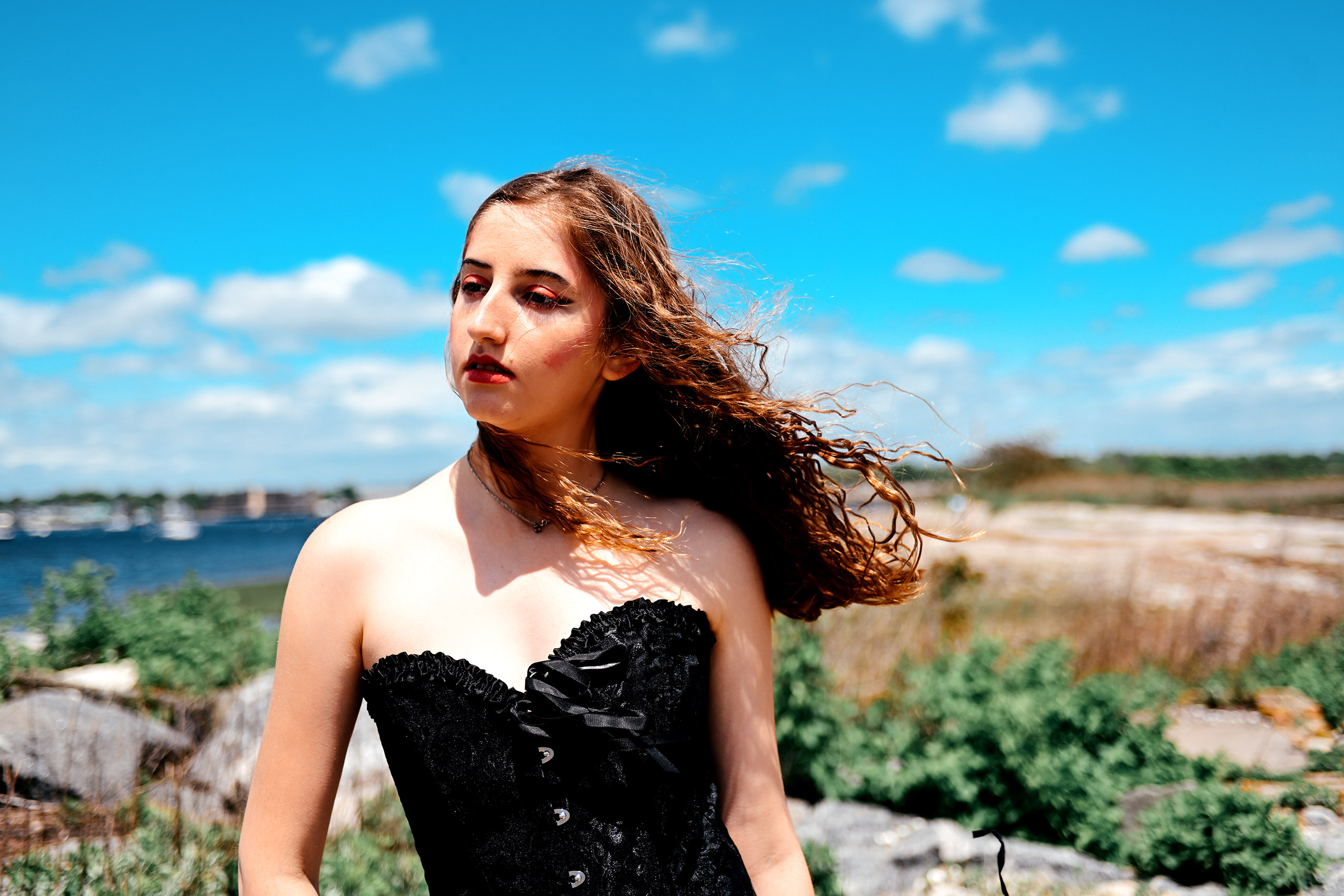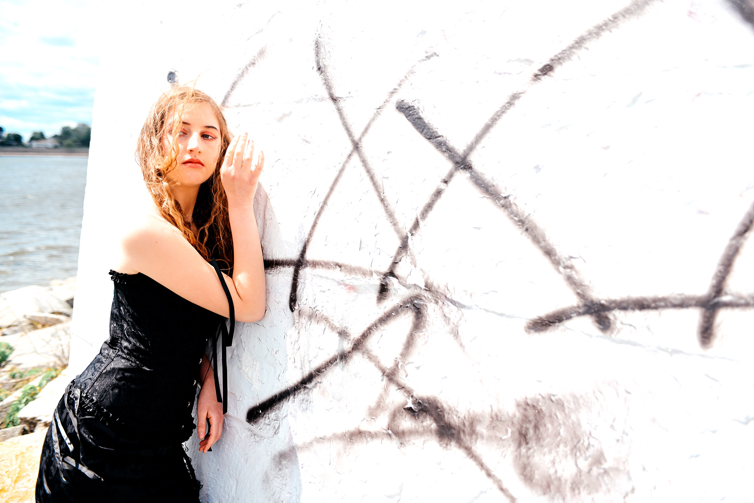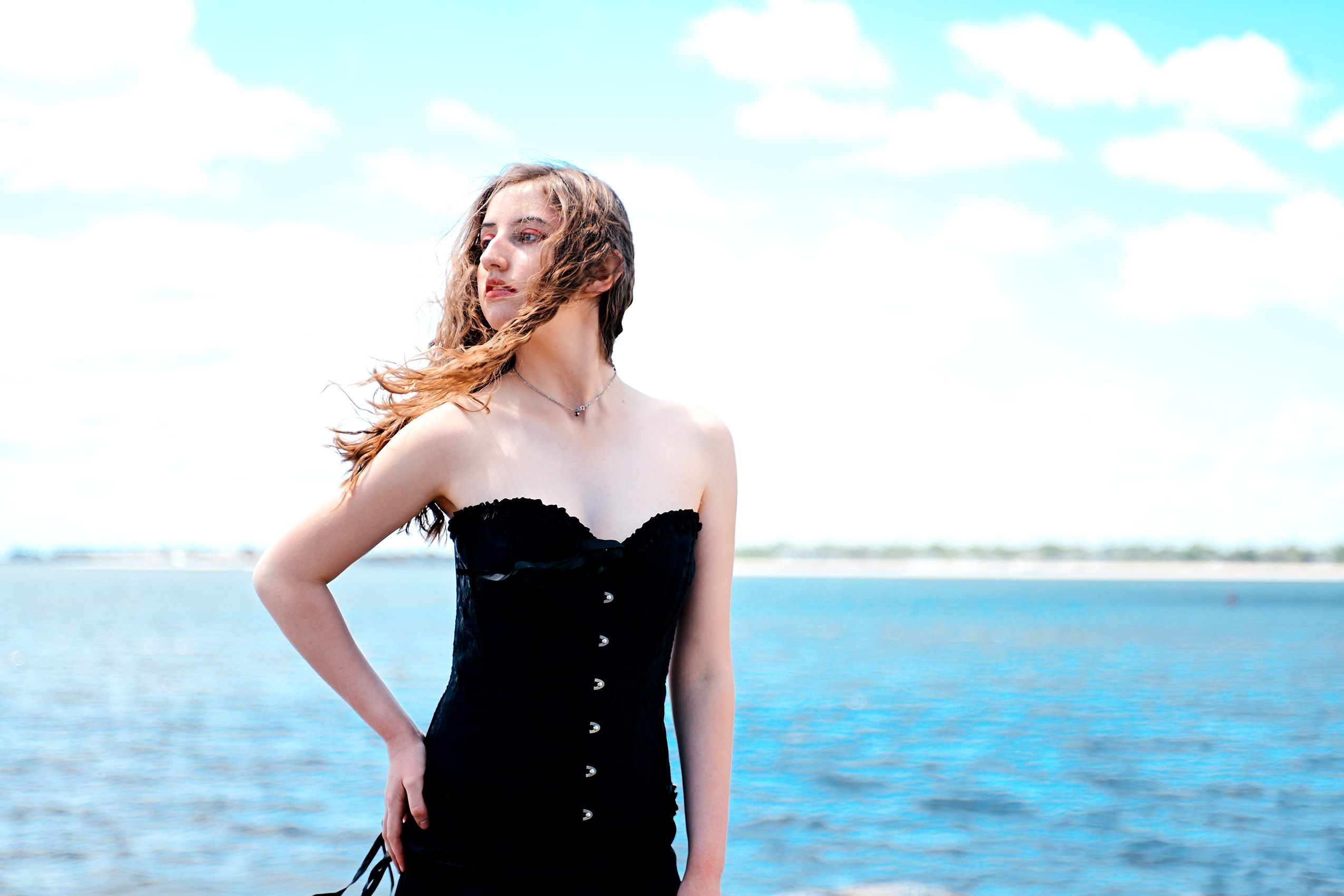 Fashion model Anna Heqimi cuts a darker silhouette in a dress from Kultuur during filming of a promotional video for “Siren: Echoes of the Deep,” a fashion show to be presented by Chasity Aniece Productions in the Bond Ballroom in Hartford on July 27.