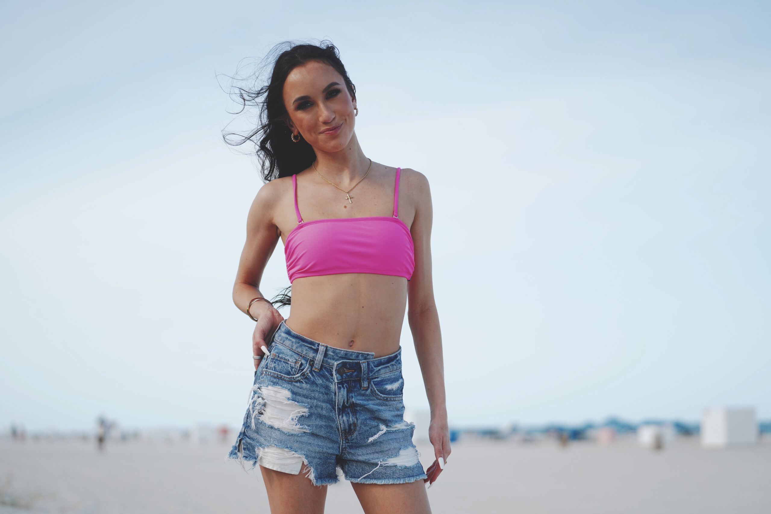 Although teen social influencer Katie Davis just designed her own line of luxury swimwear for her brand Charjean Couture, the Tennessee-based fashion designers knows the value of a good belly-baring tank top and cut-off jeans when you hit the beach.