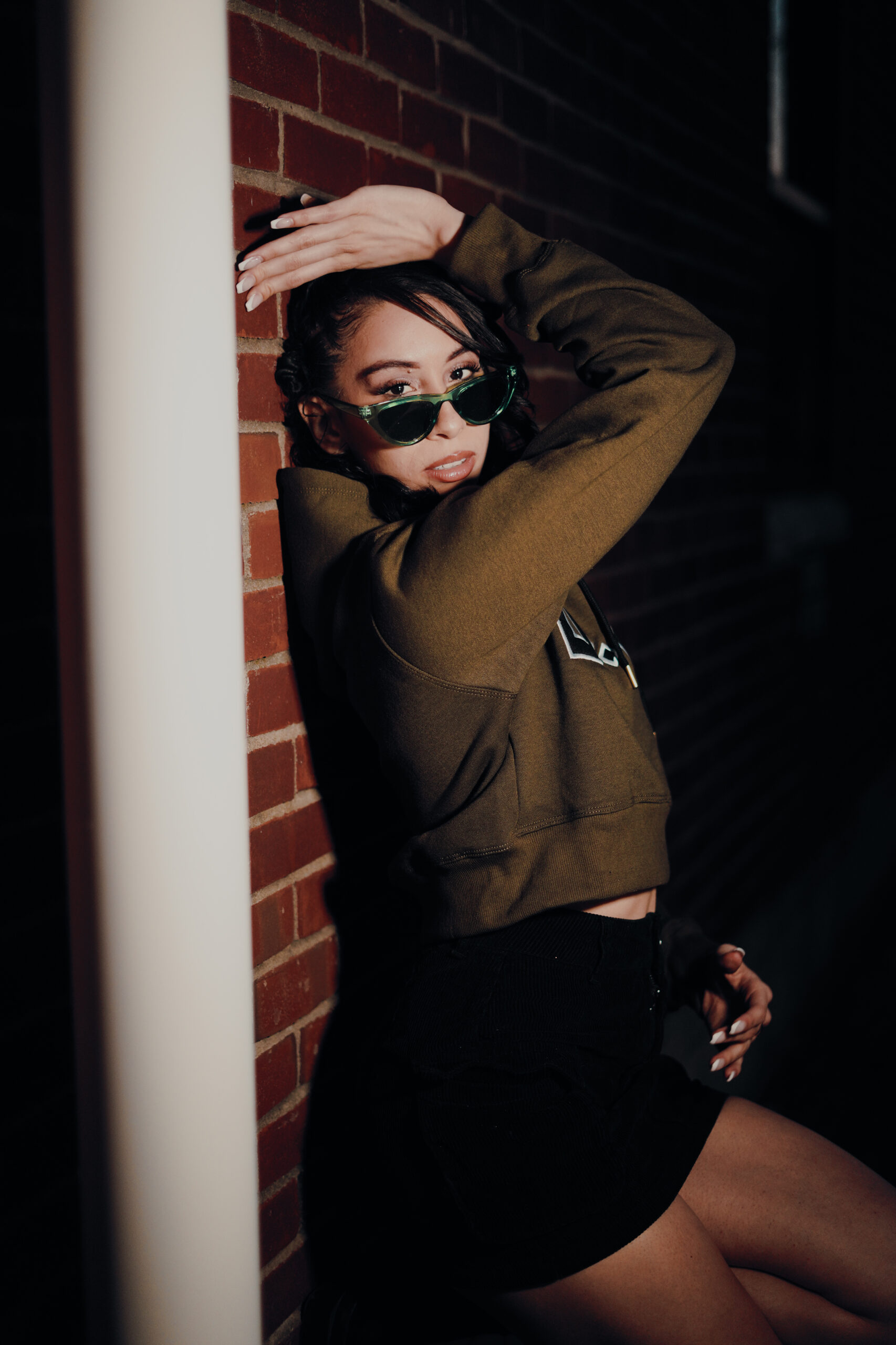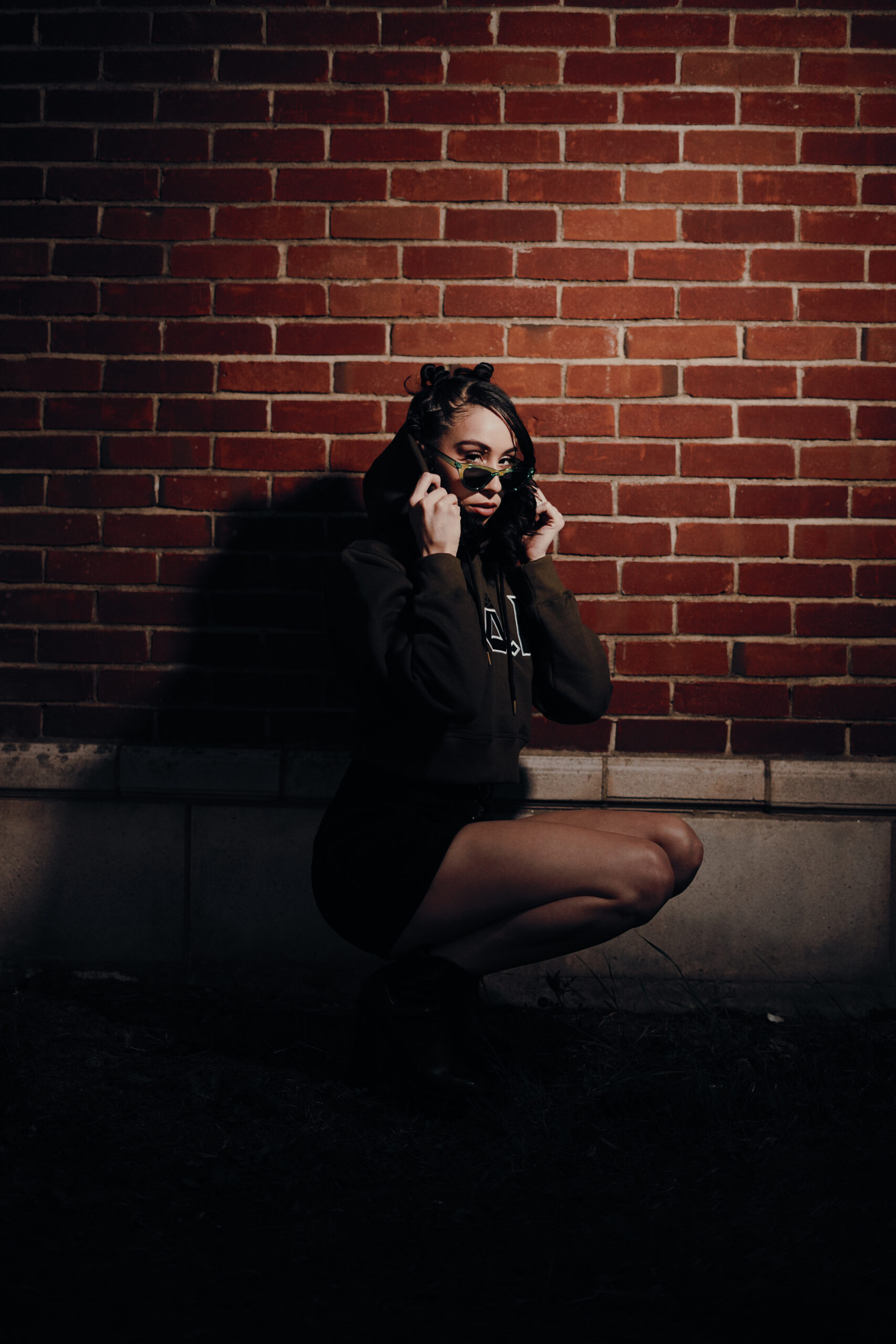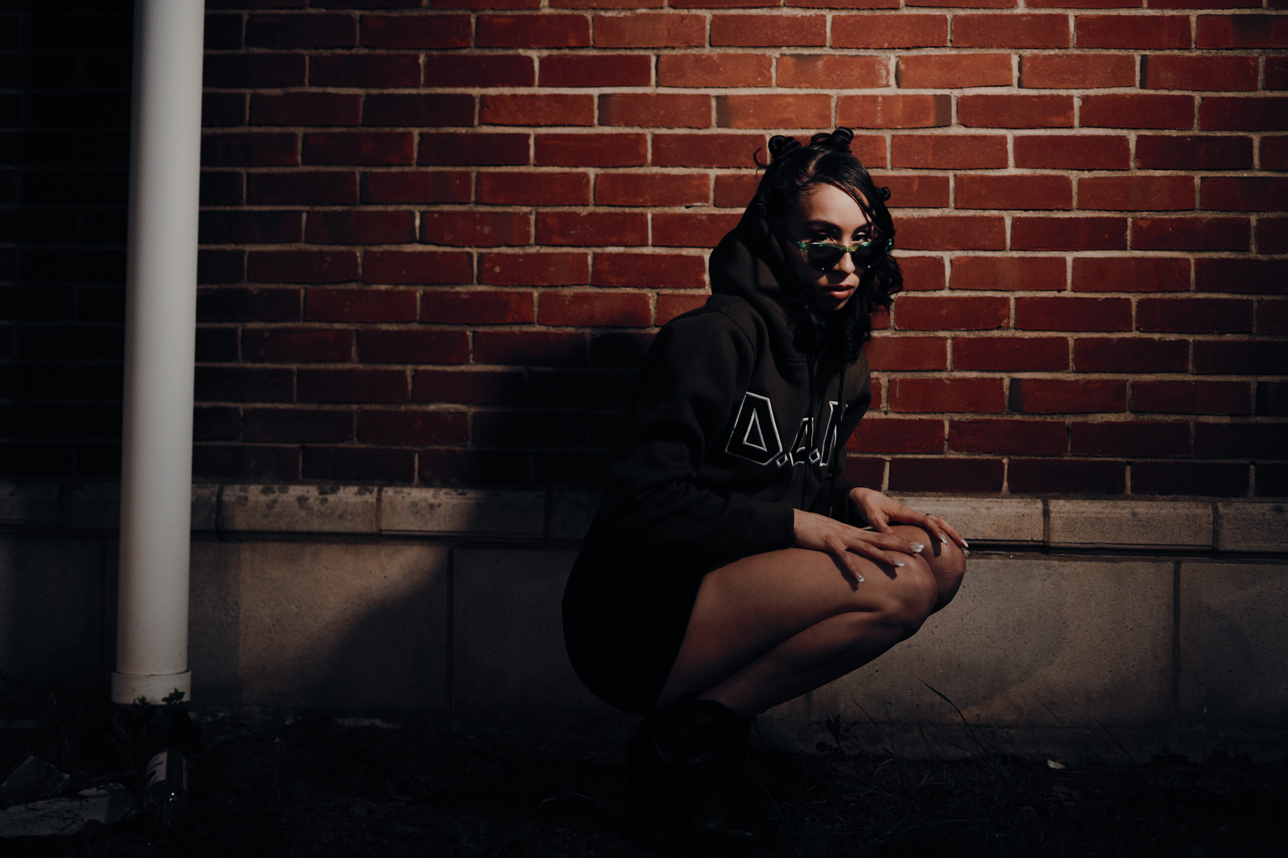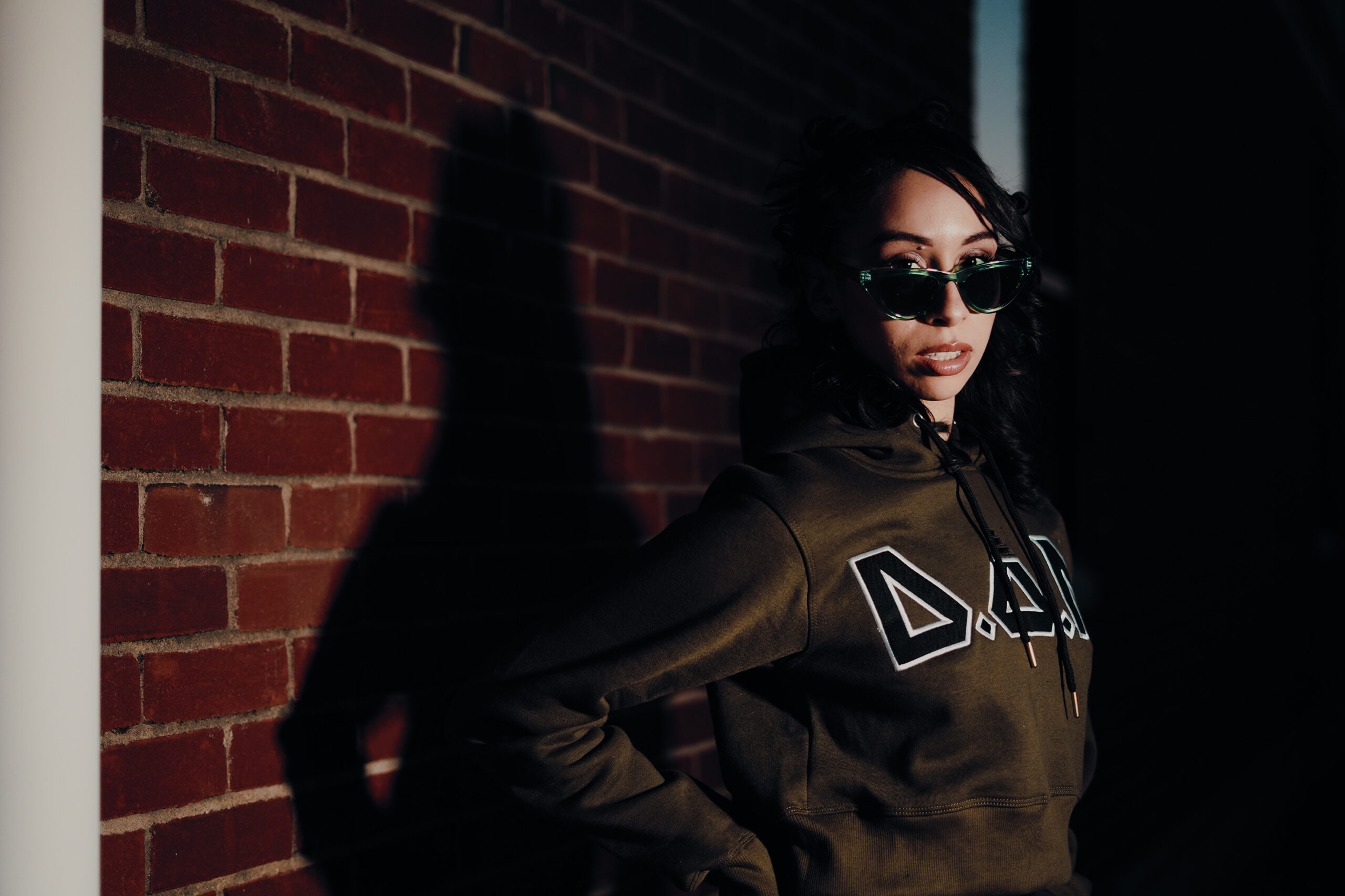 Model Lex Marie Dones moves to the beat of her own rhythm in the warmth of a spring evening while wearing Double of Nothing Apparel (https://doubleornothing20.com/).