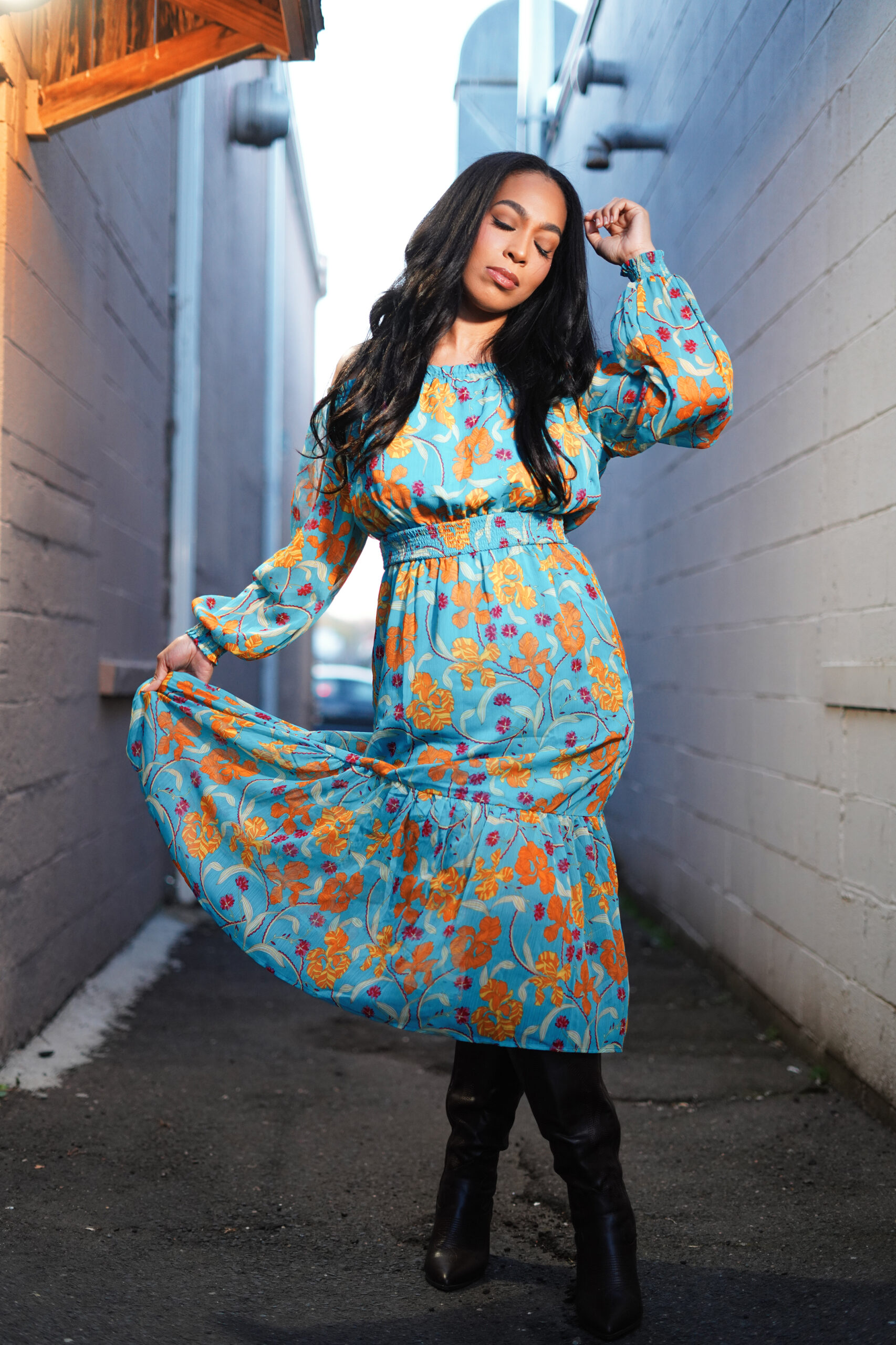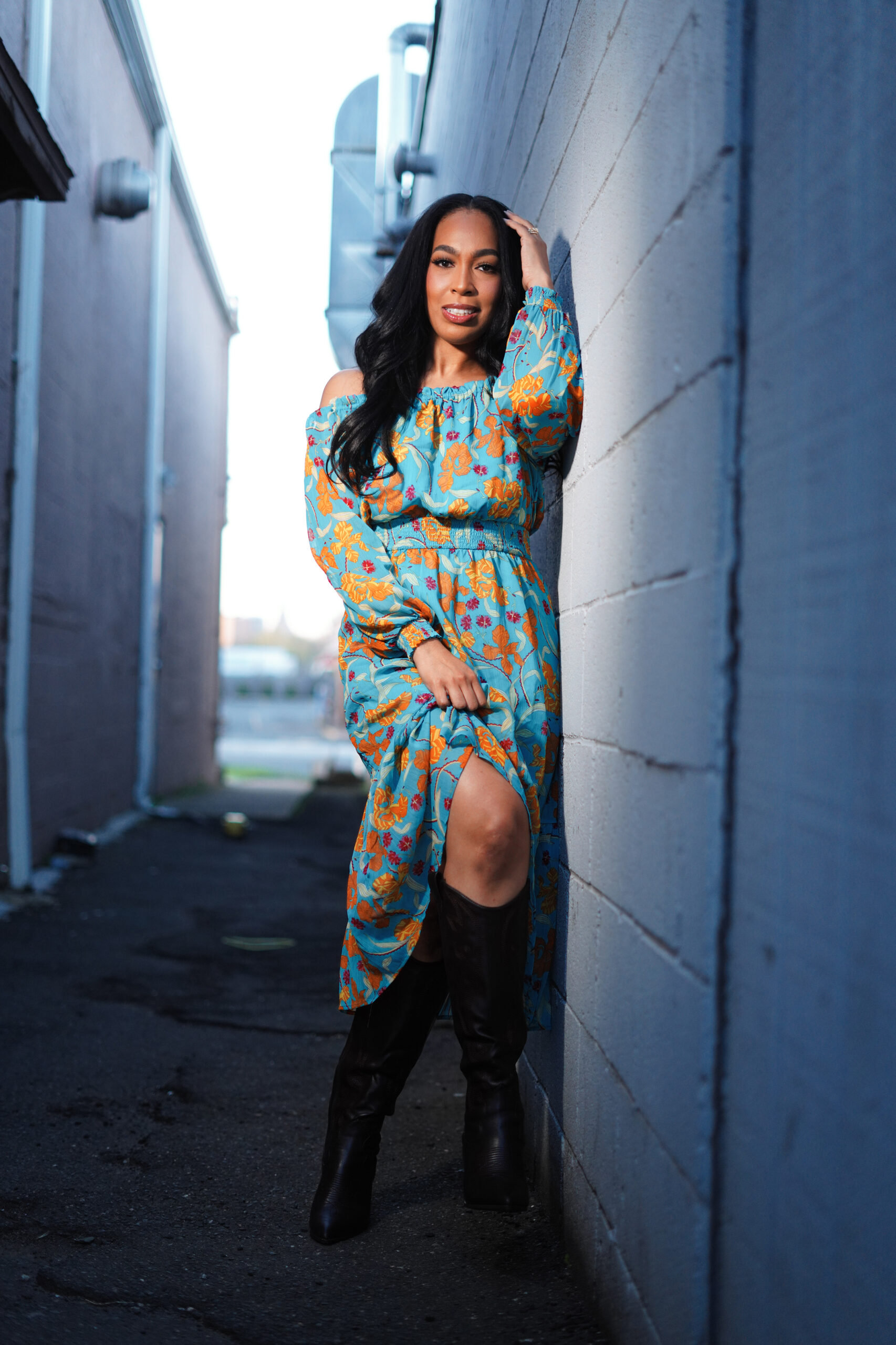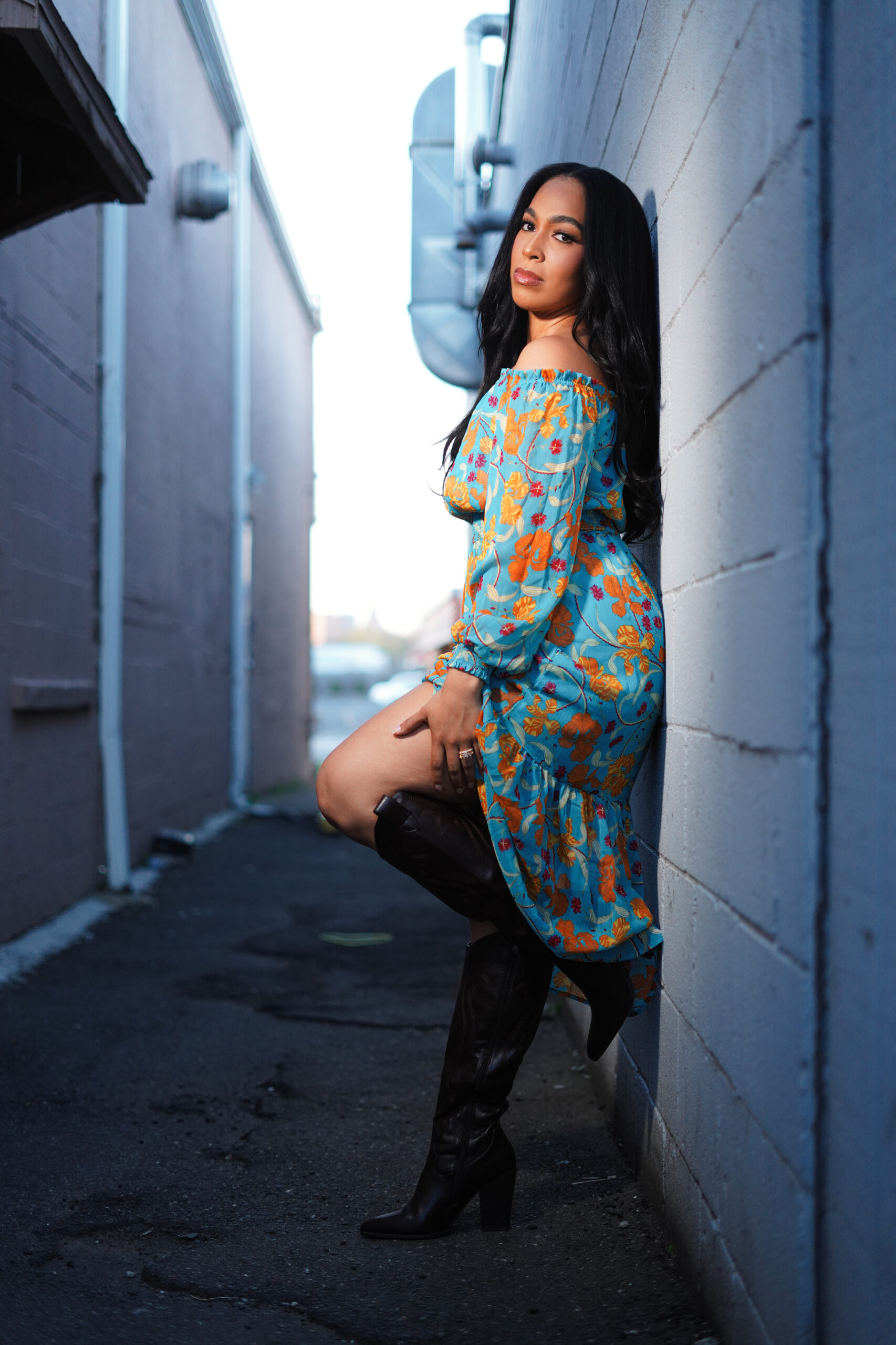 Genesis Paternina finds the creative possibilities of an alleyway at sunset during the Infinity Project in Hartford.