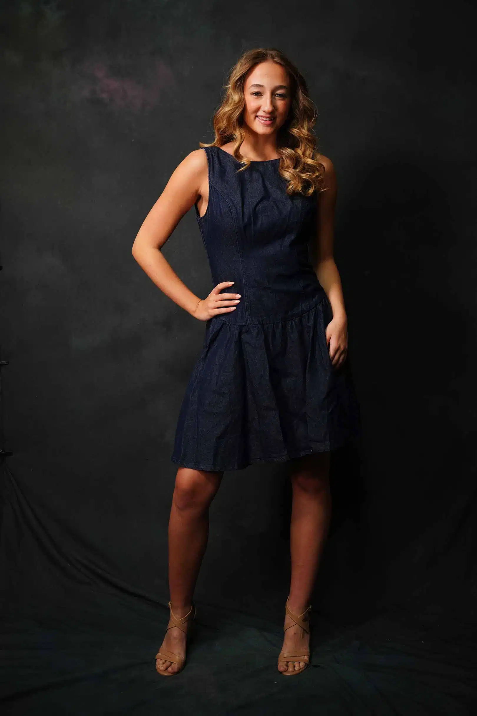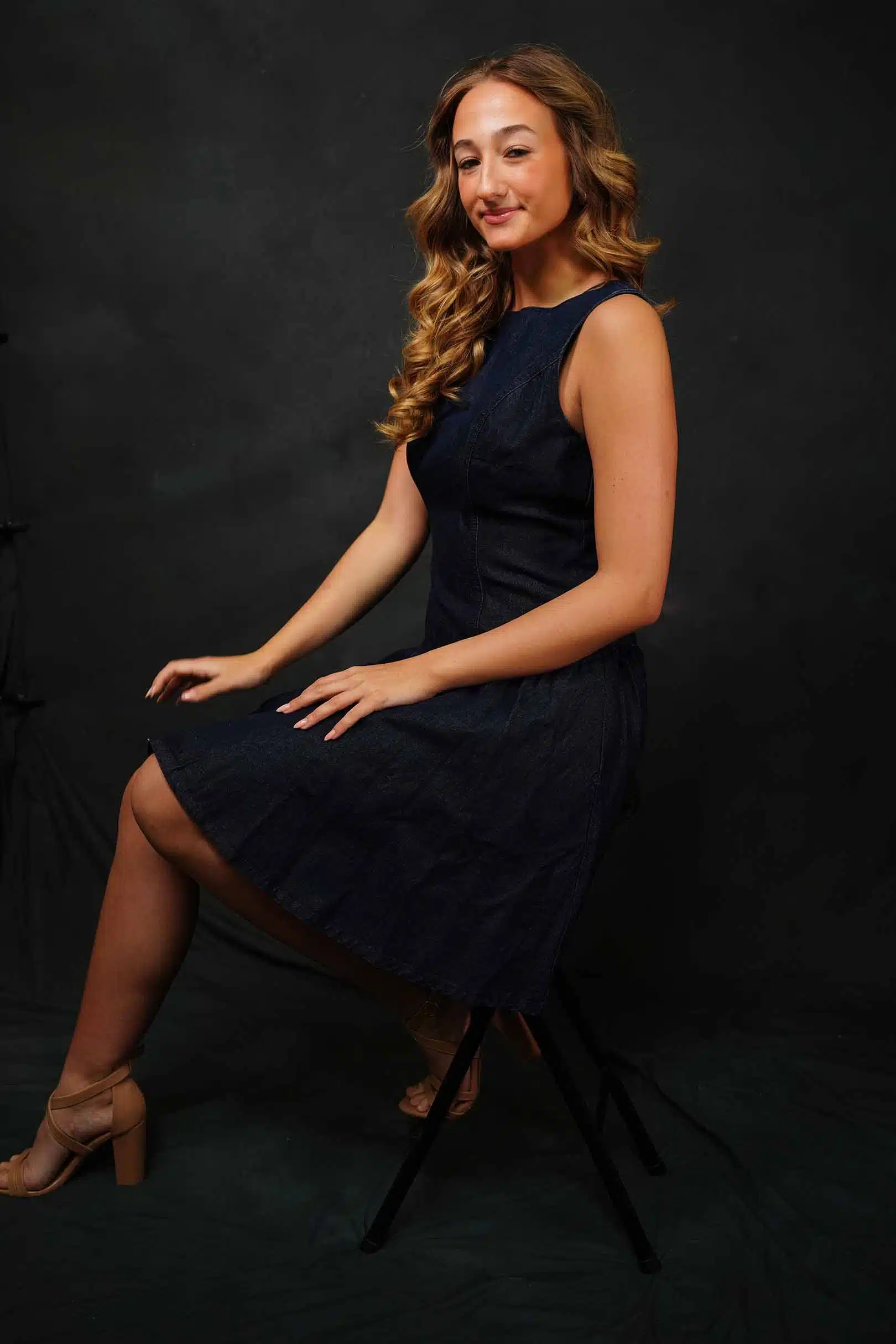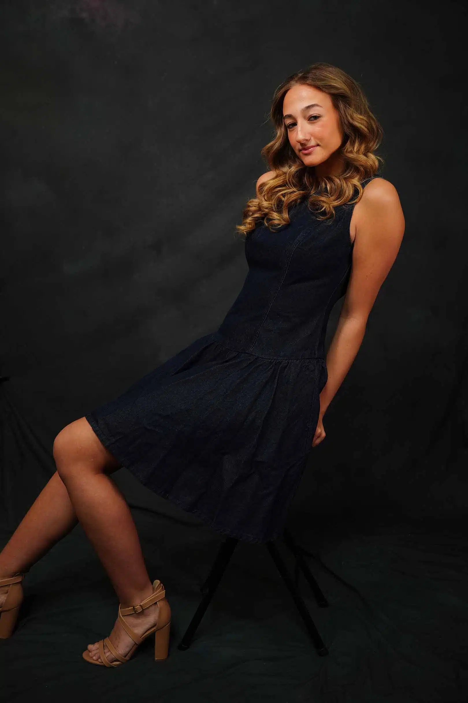 In this #walmartcreator sponsored fashion editorial, model Madison LaMarre wears a denim dress from Walmart imprint Scoop, which is designed by celebrated designer Brandon Maxwell.