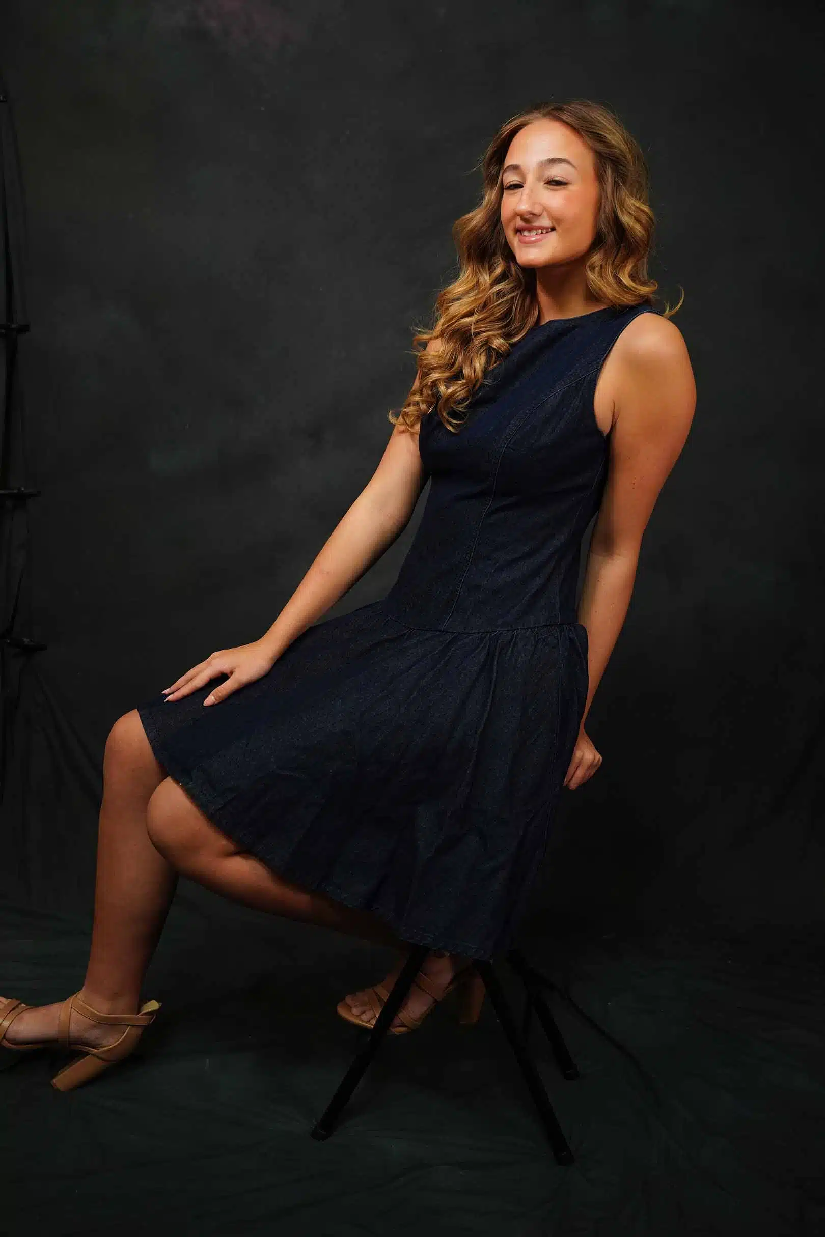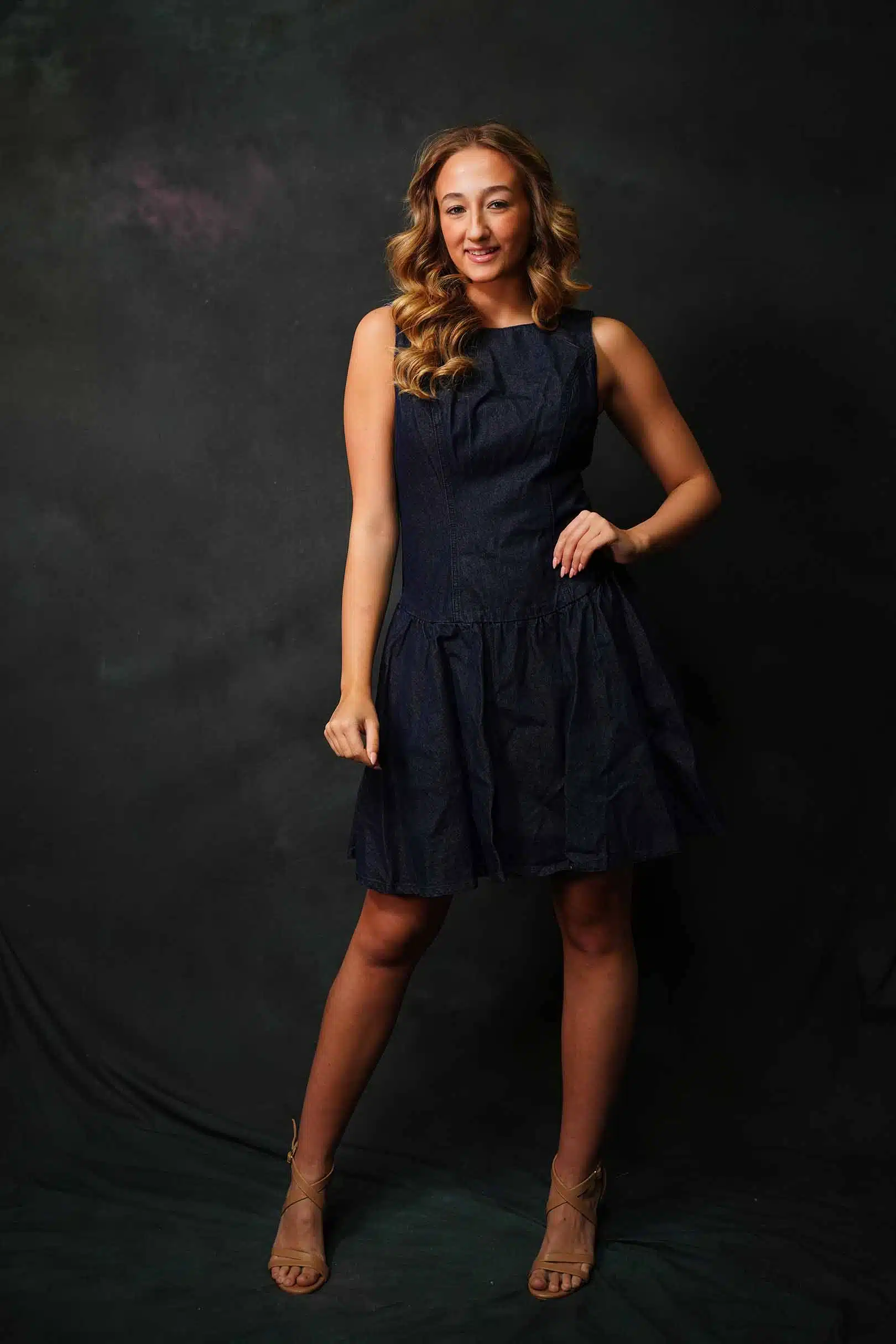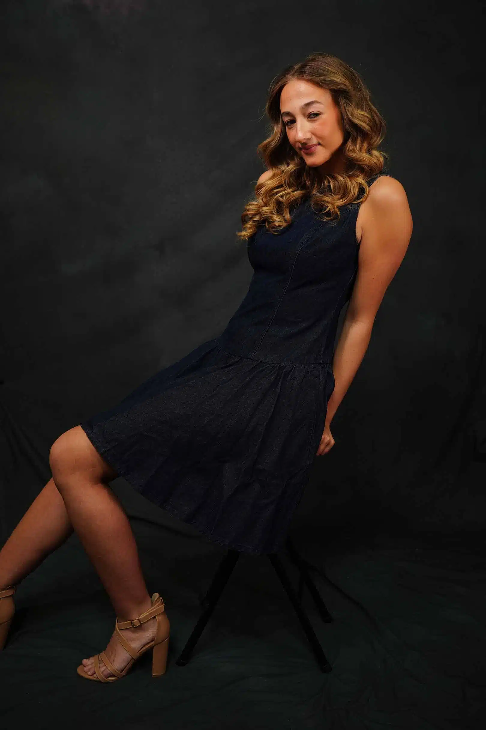 In this #walmartcreator sponsored fashion editorial, model Madison LaMarre wears a denim dress from Walmart imprint Scoop, which is designed by celebrated designer Brandon Maxwell.
